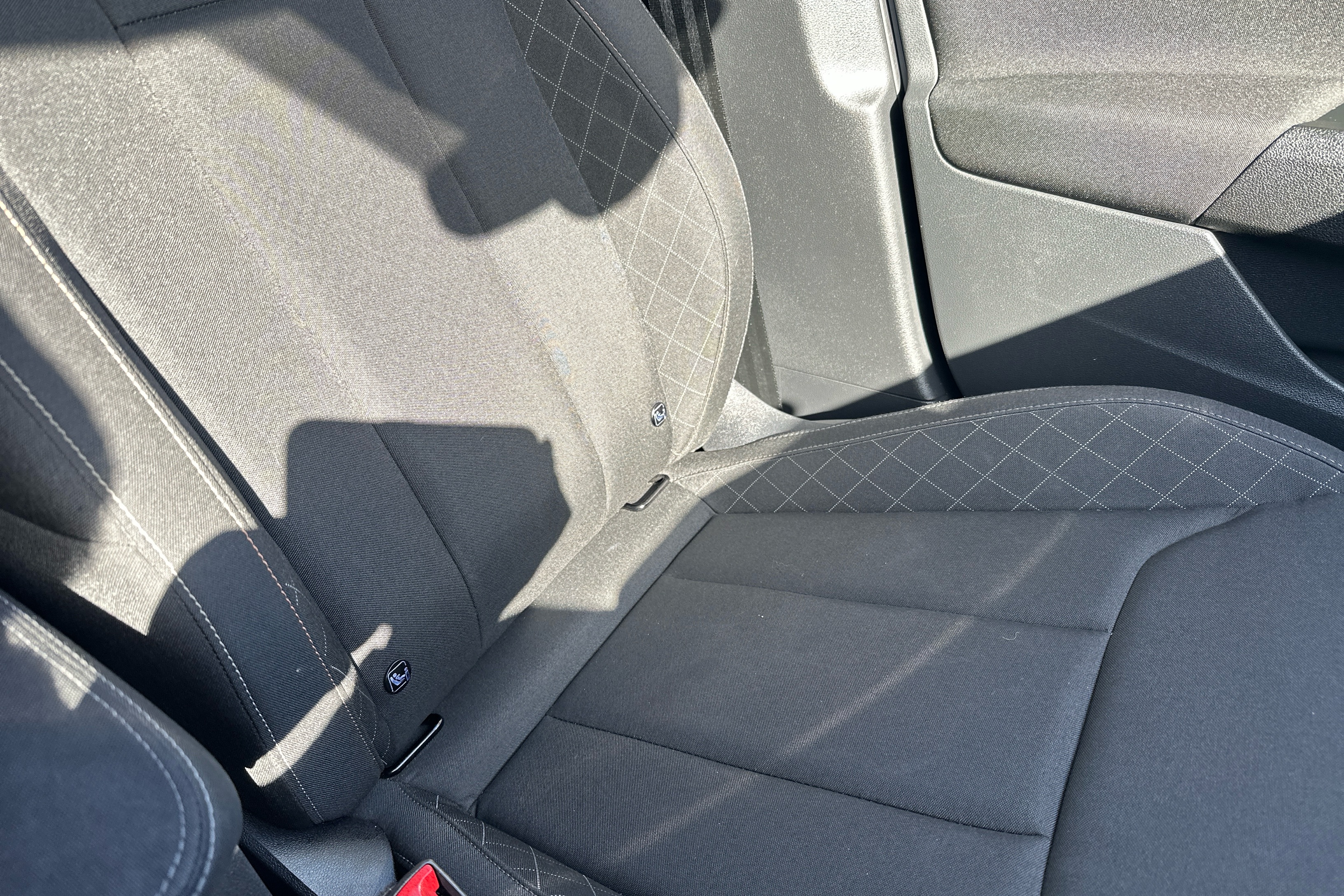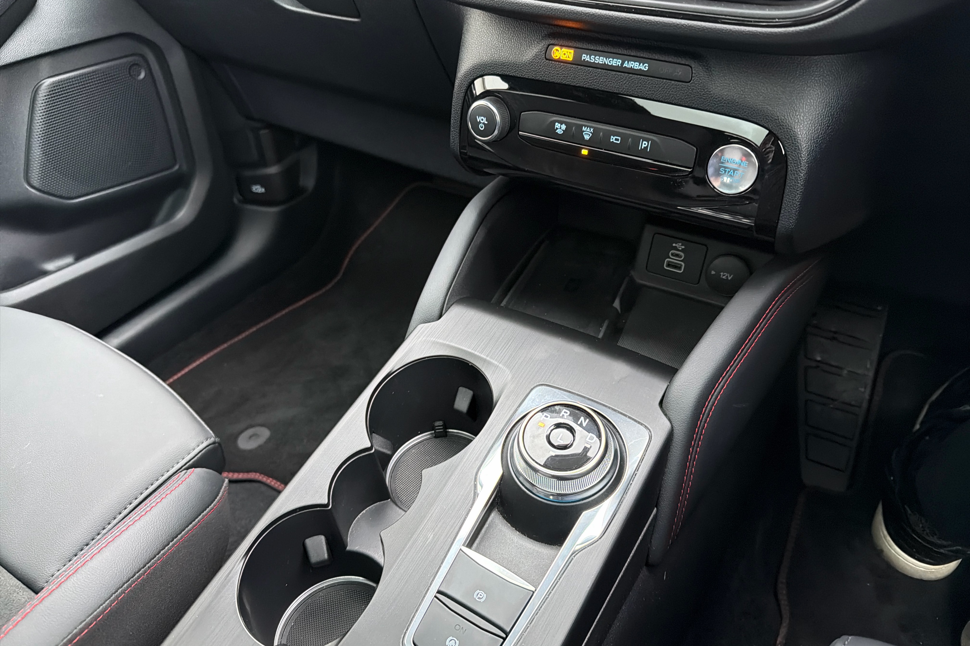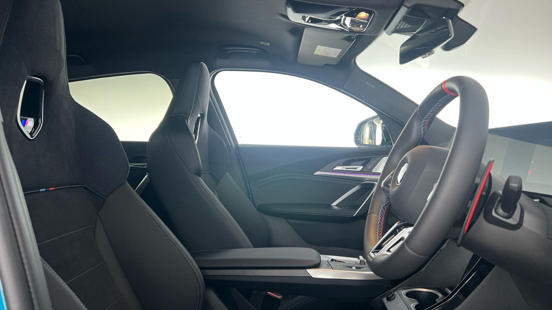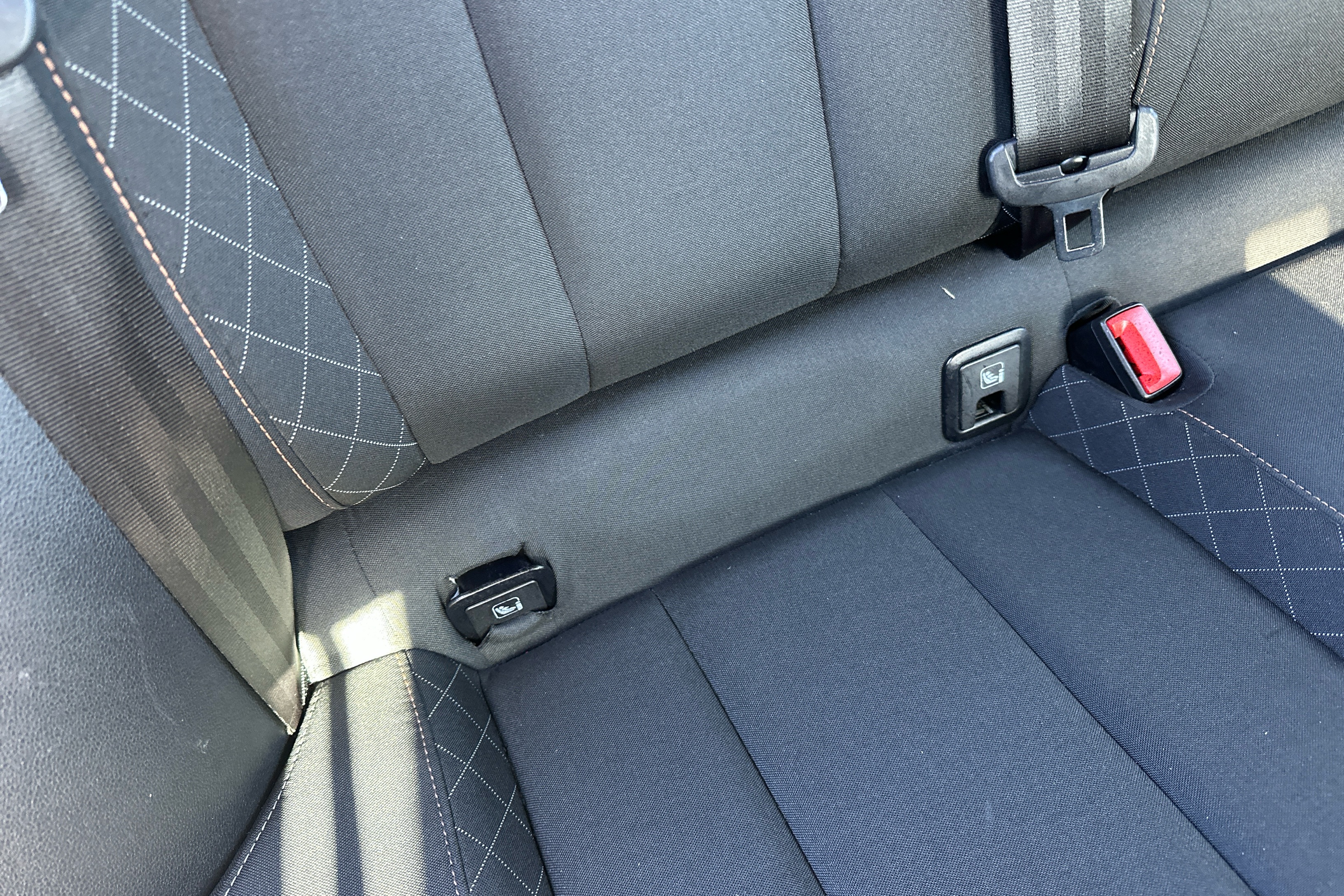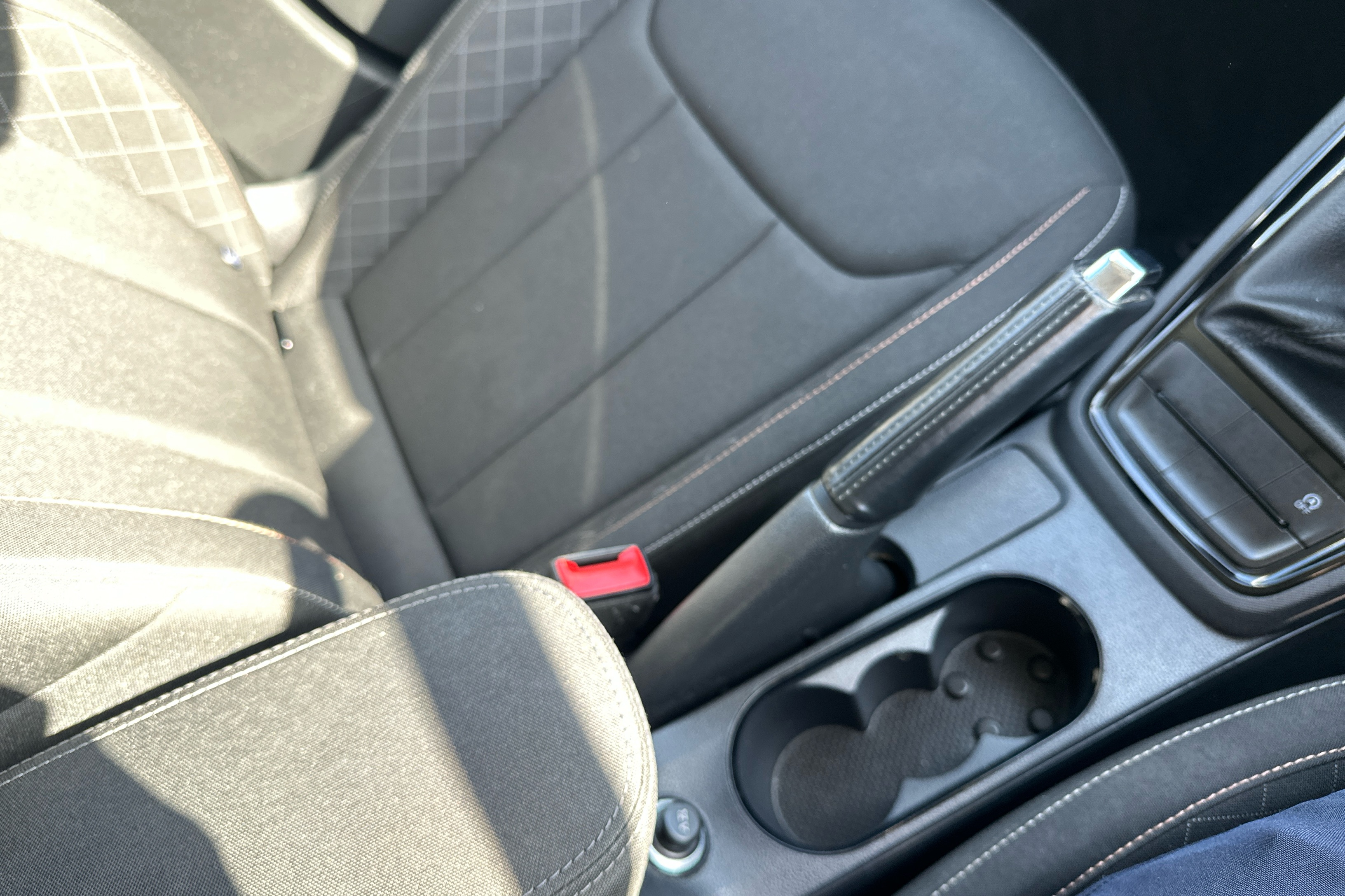 "Vescin/Cord combination JCW upholstery includes dash knit in black with red accents"