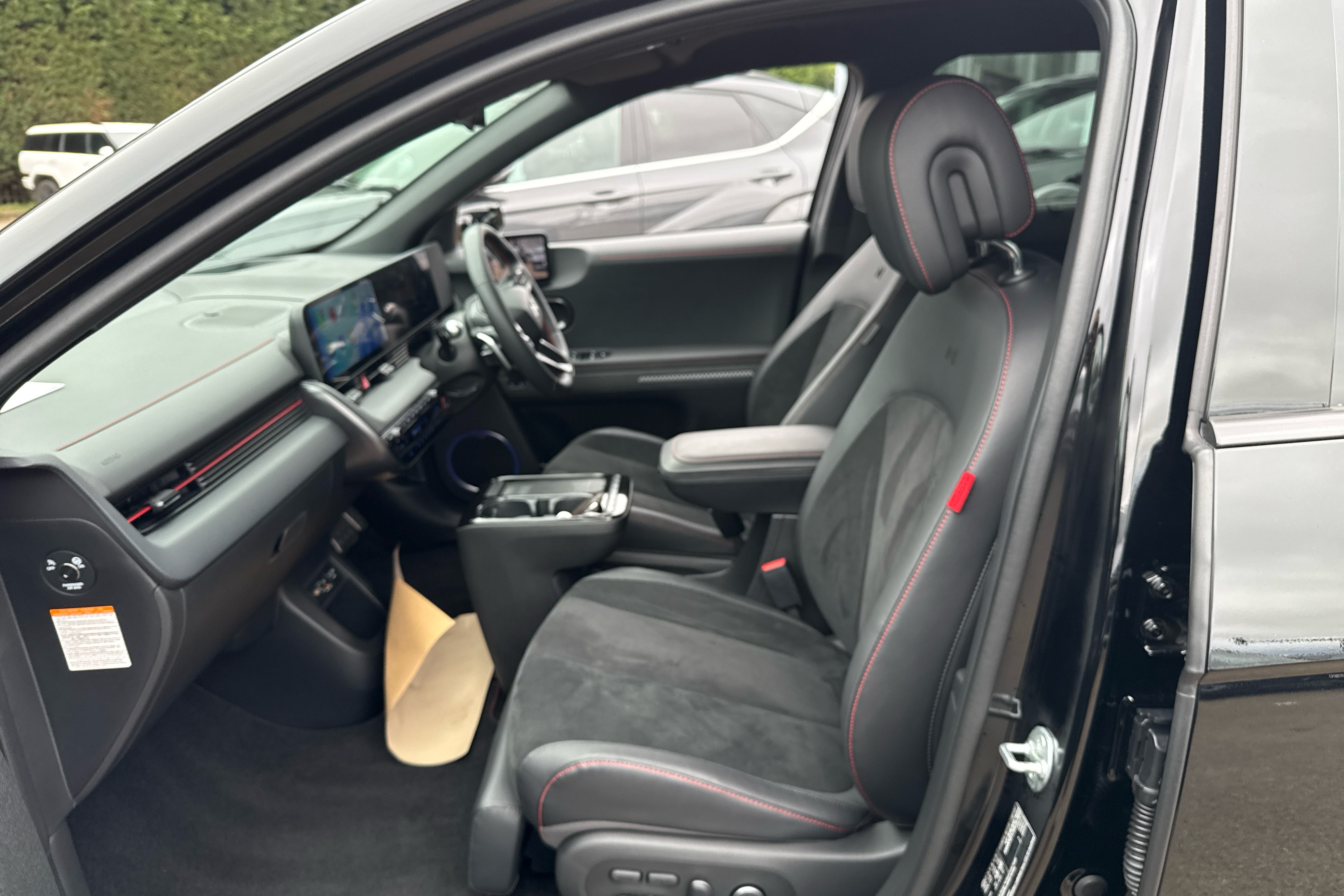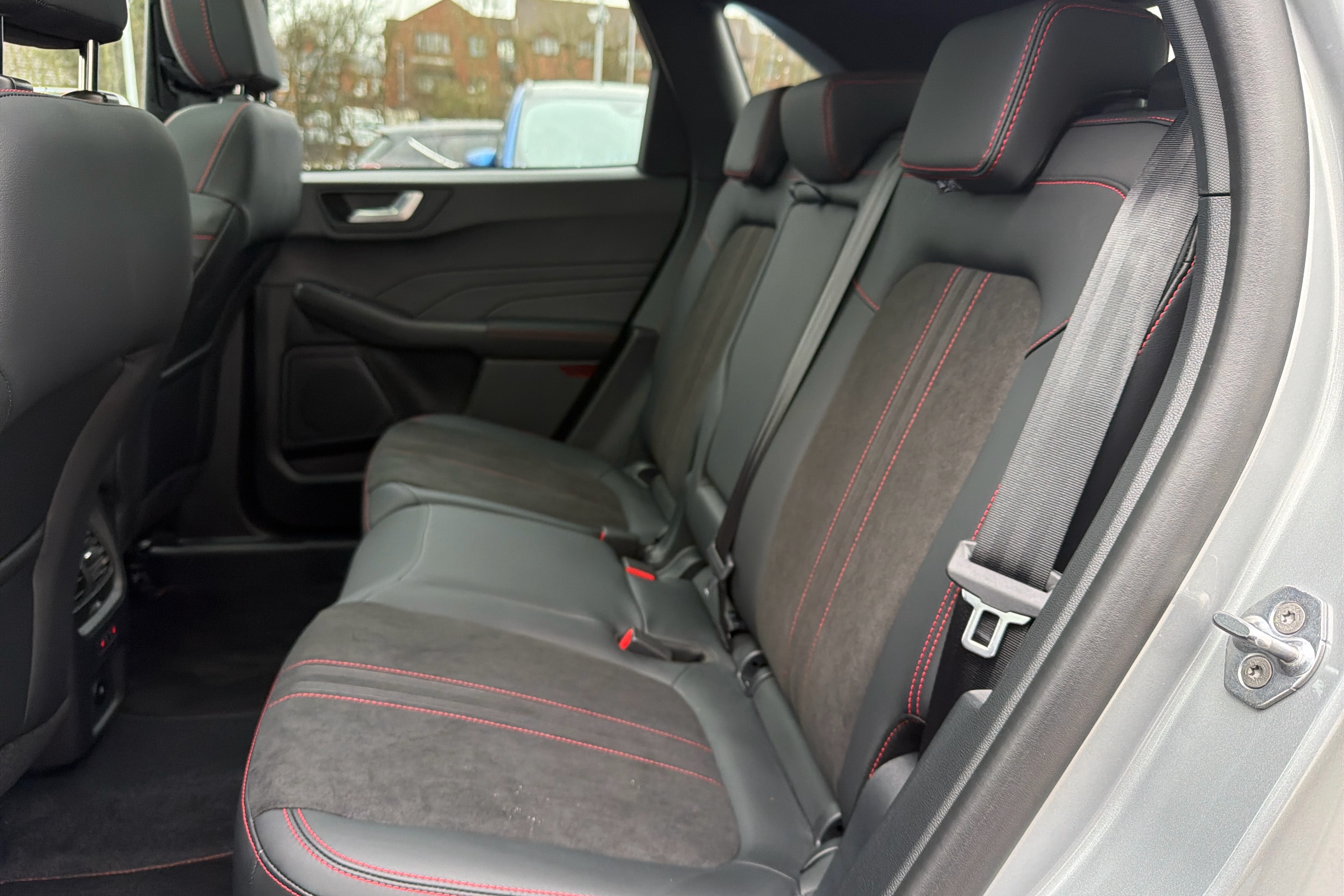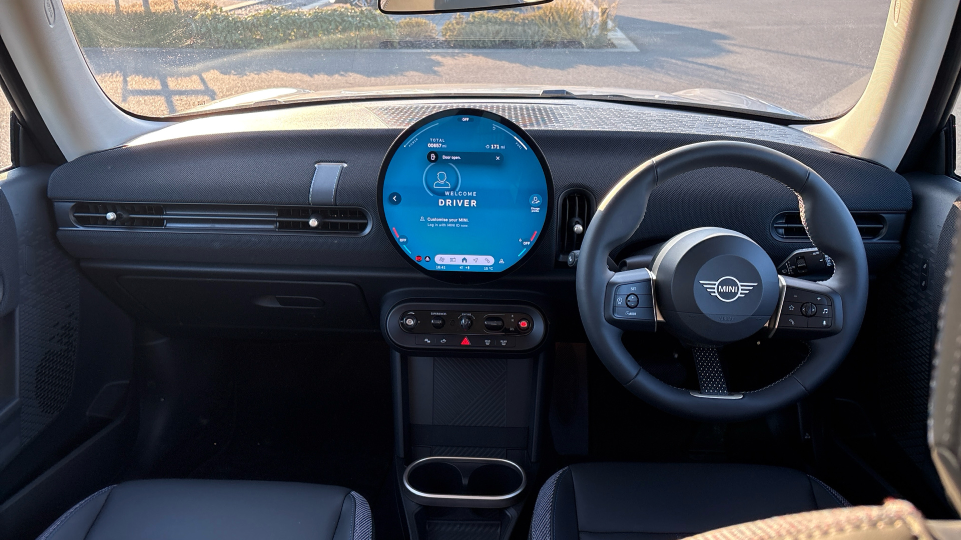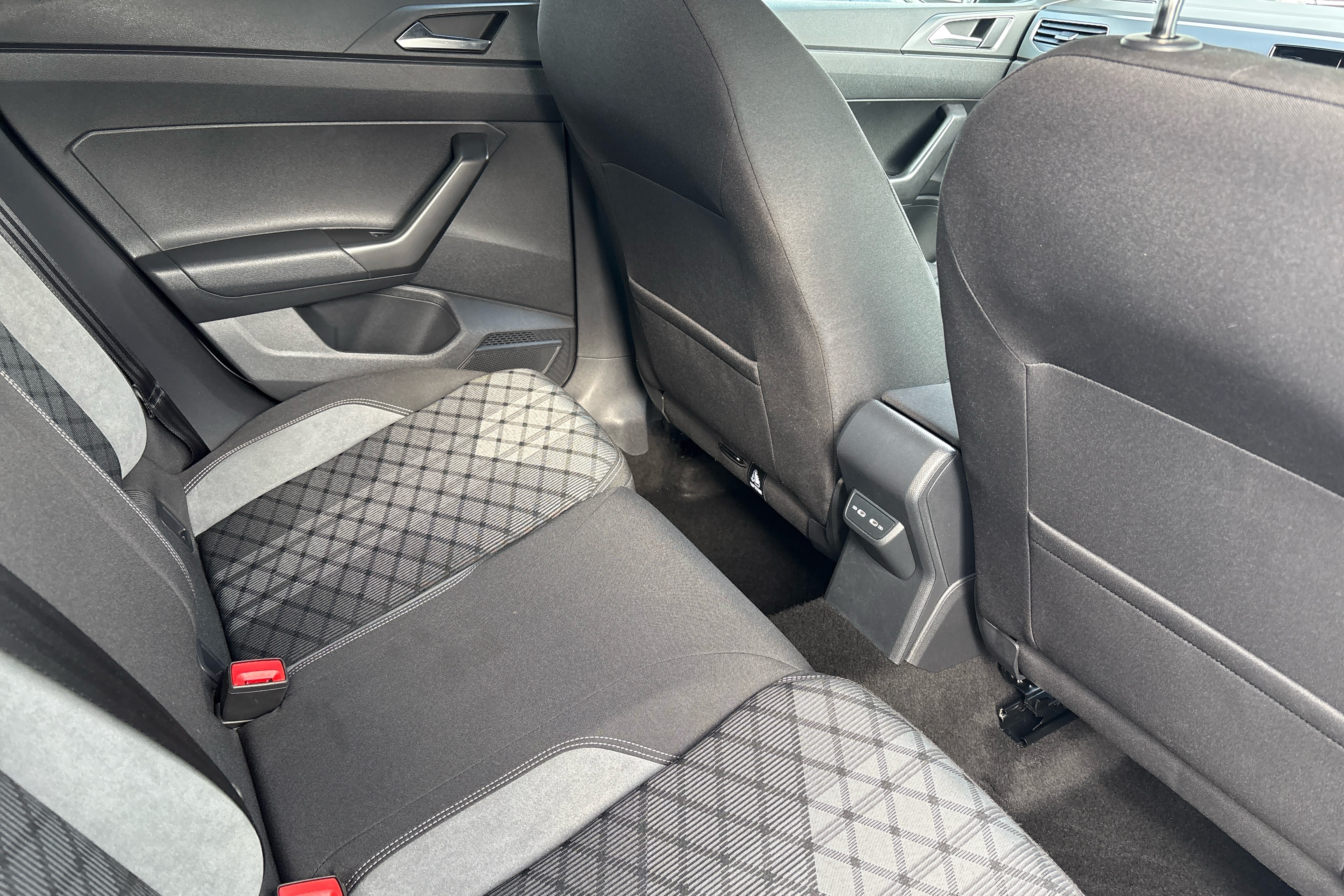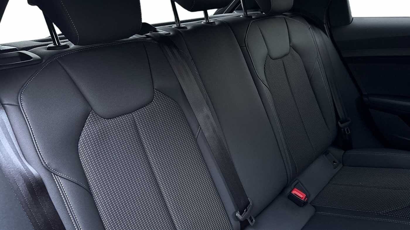 "Vescin/Cord combination JCW upholstery includes dash knit in black with red accents"