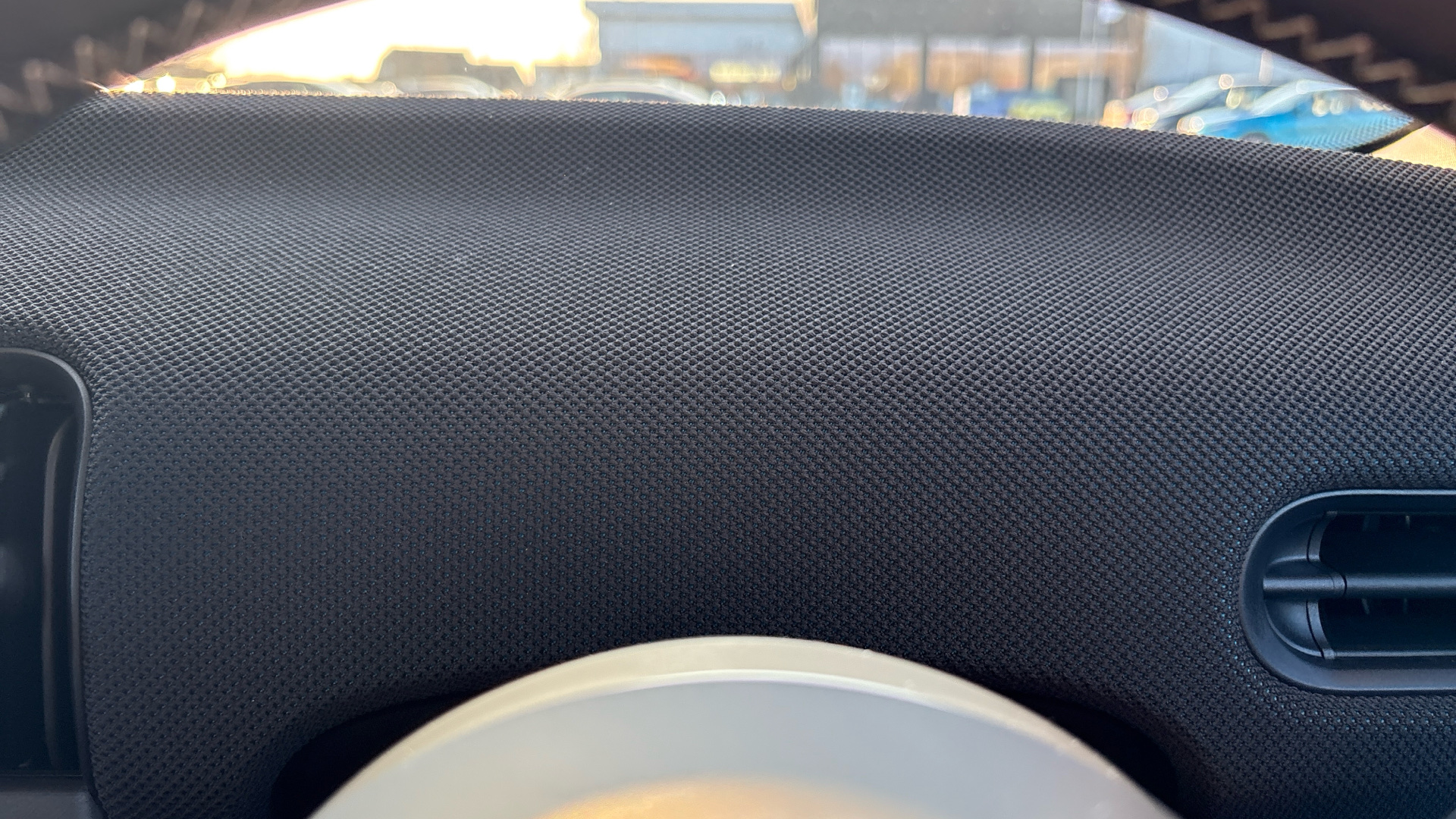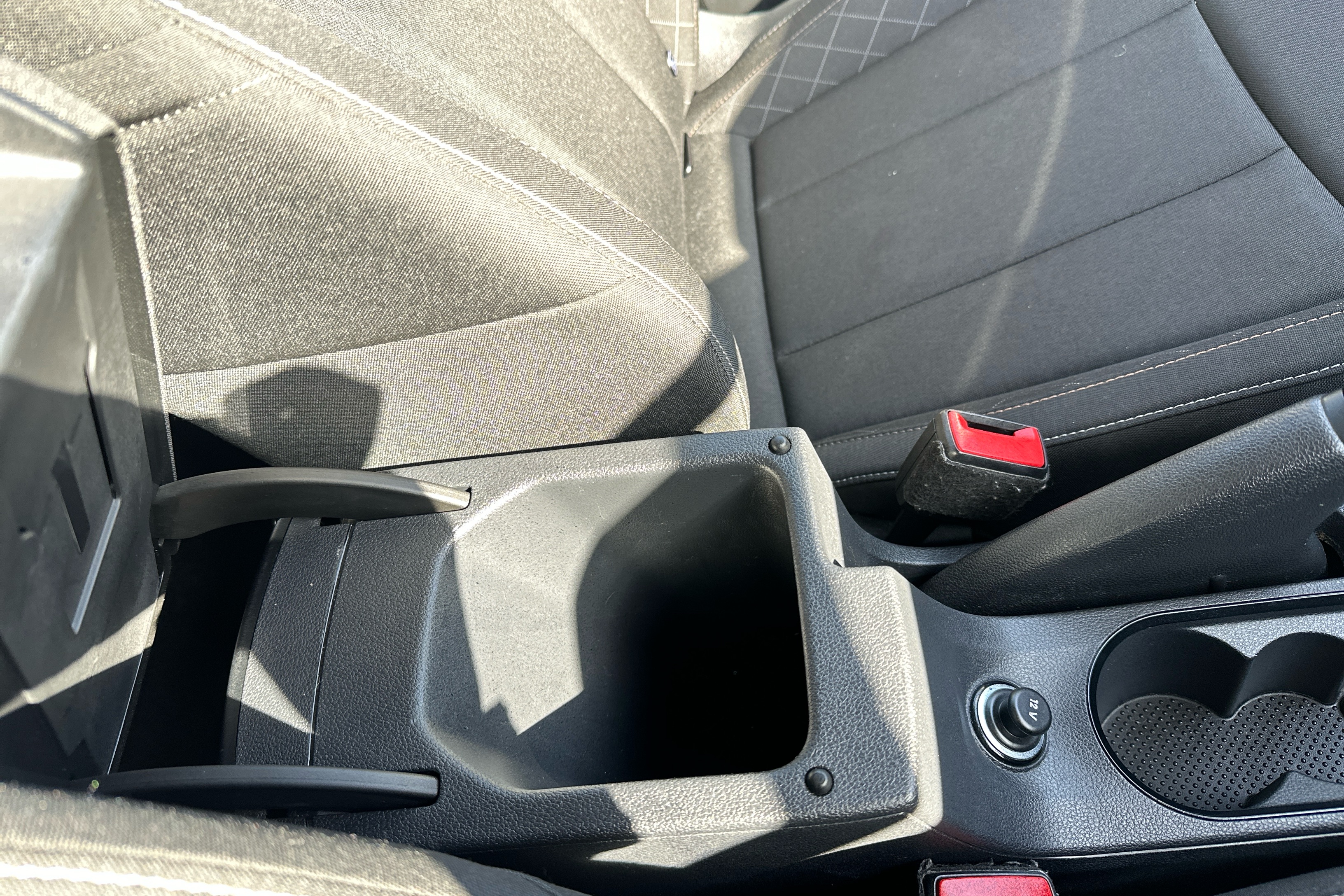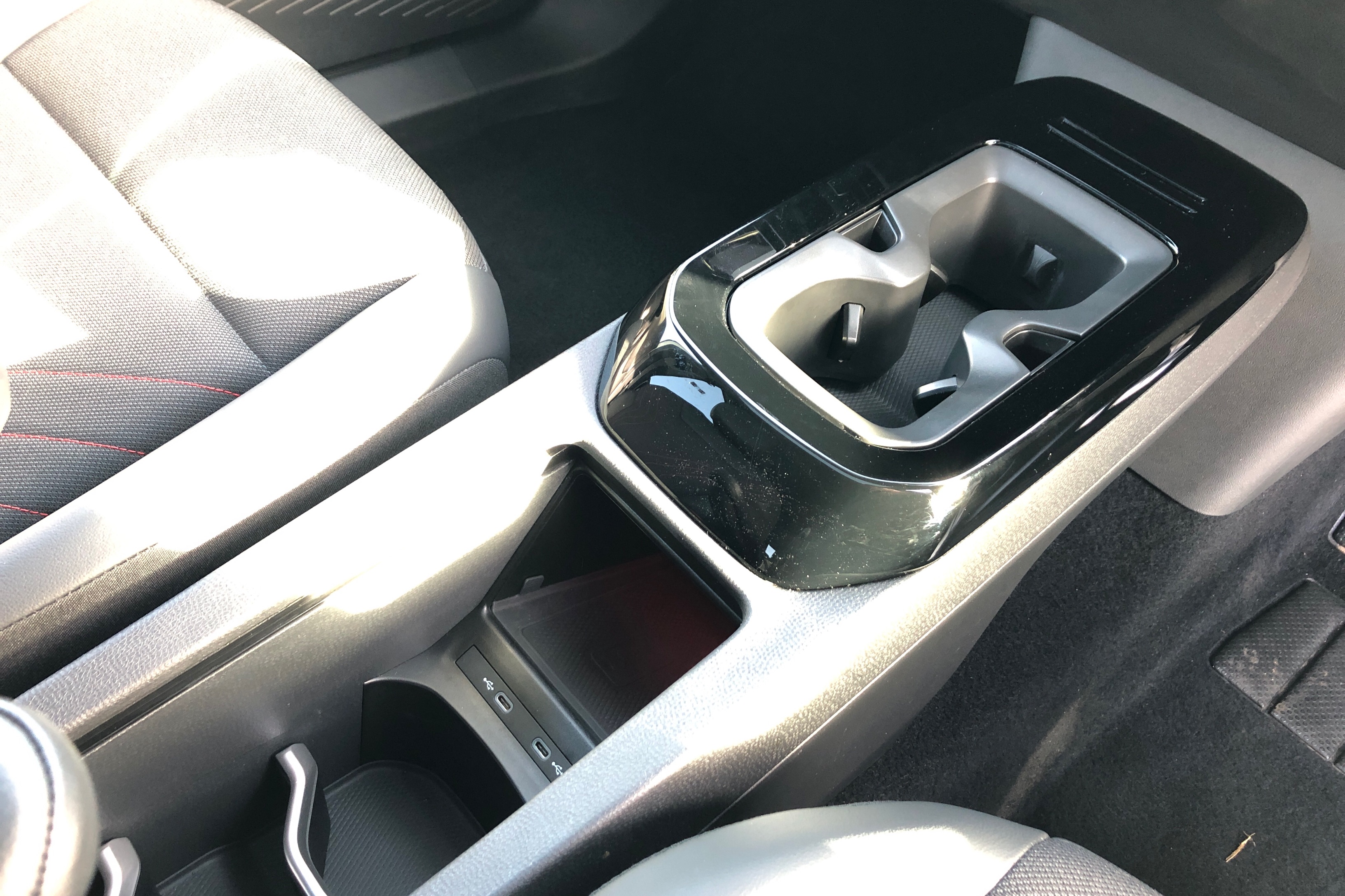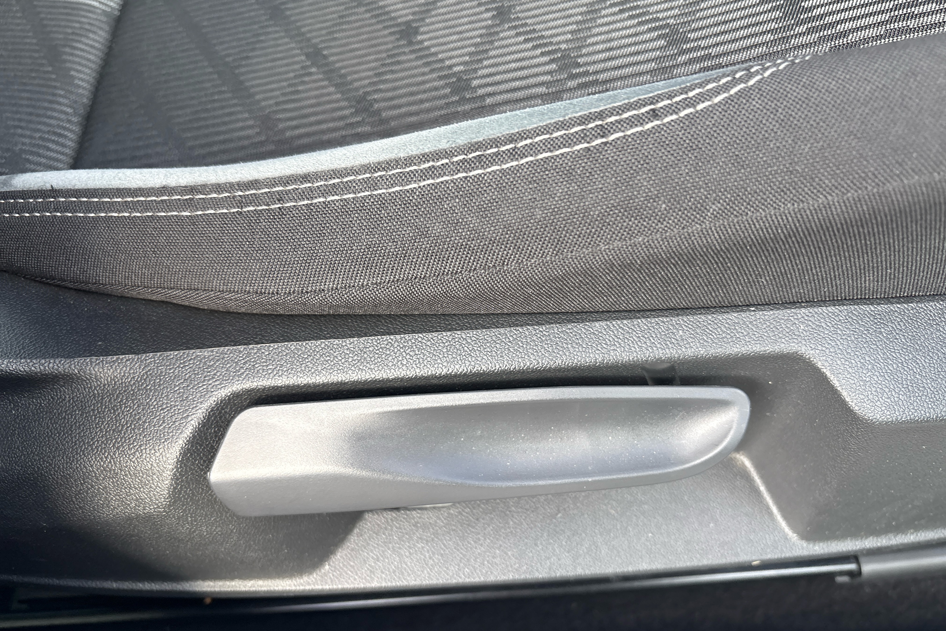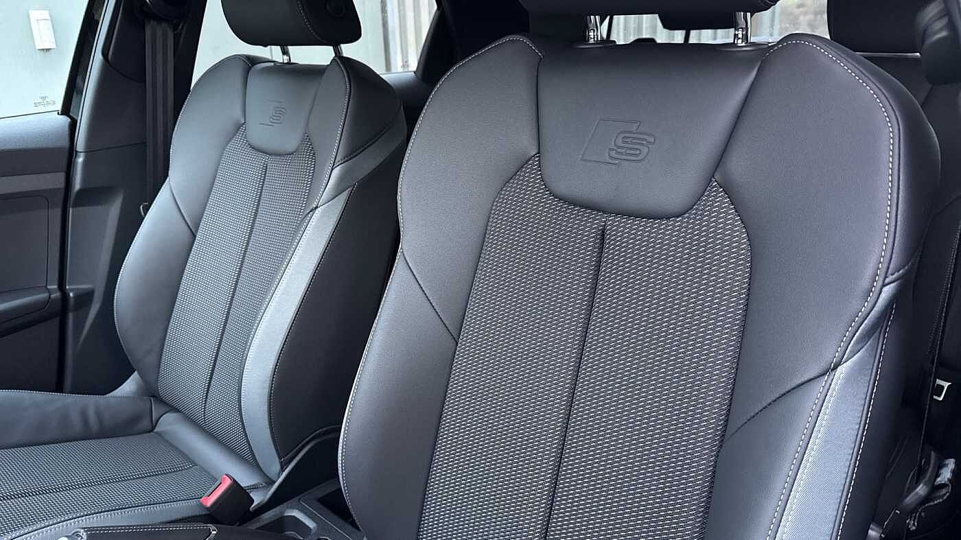 "Vescin/Cord combination JCW upholstery includes dash knit in black with red accents"