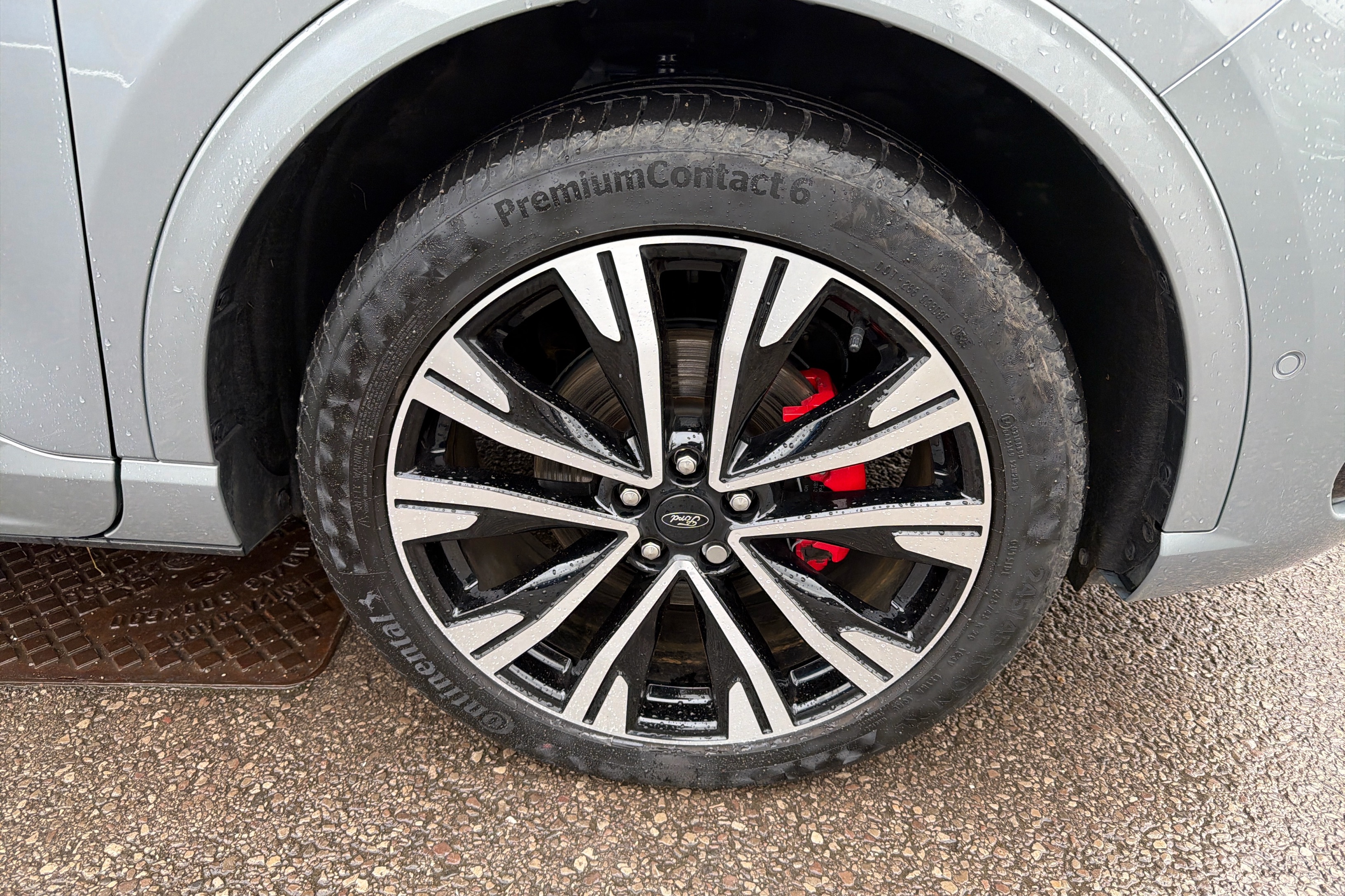 "Brake caliper in red with JCW badge",