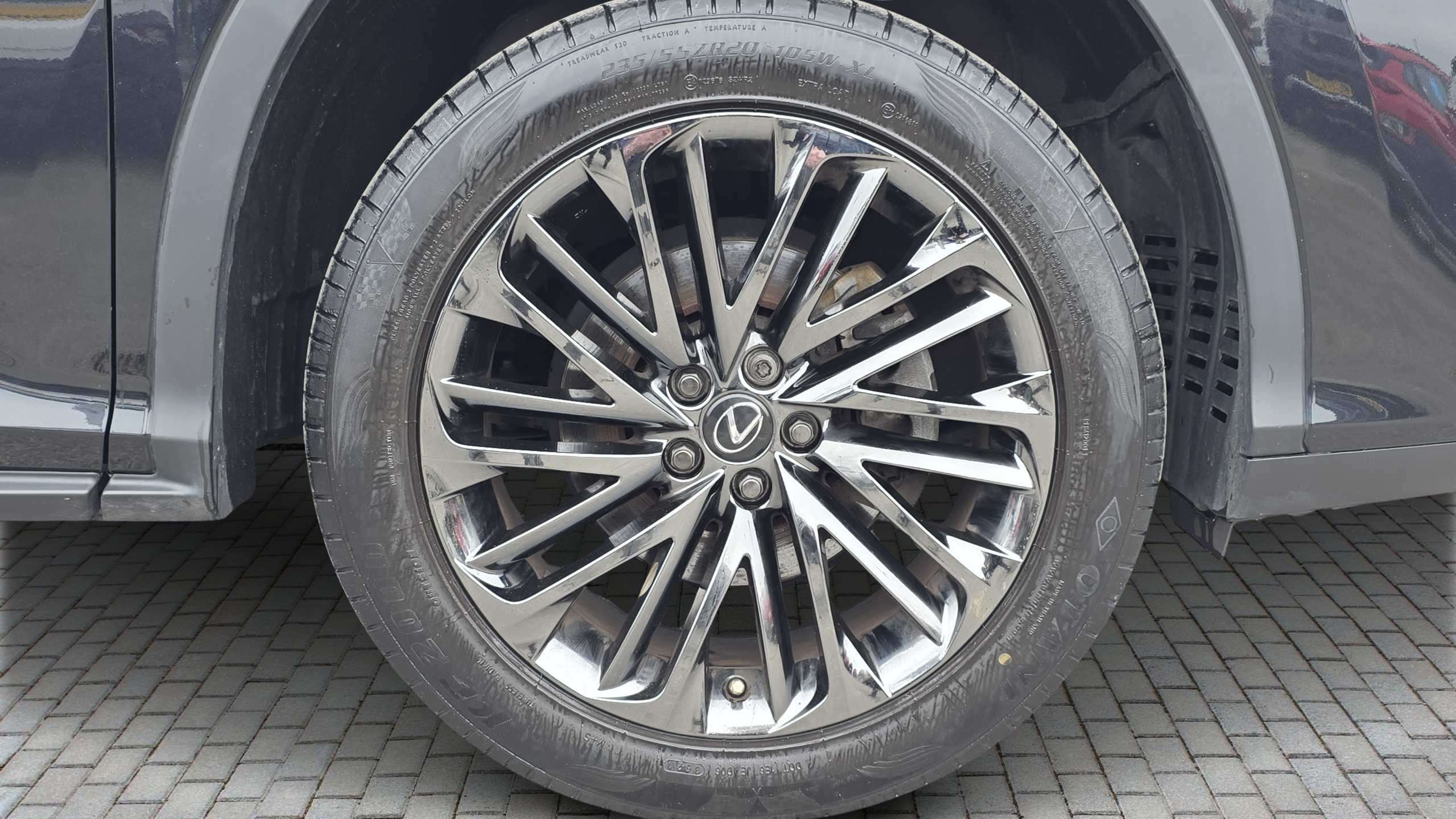 "18\" machined dark metallic alloy wheels",