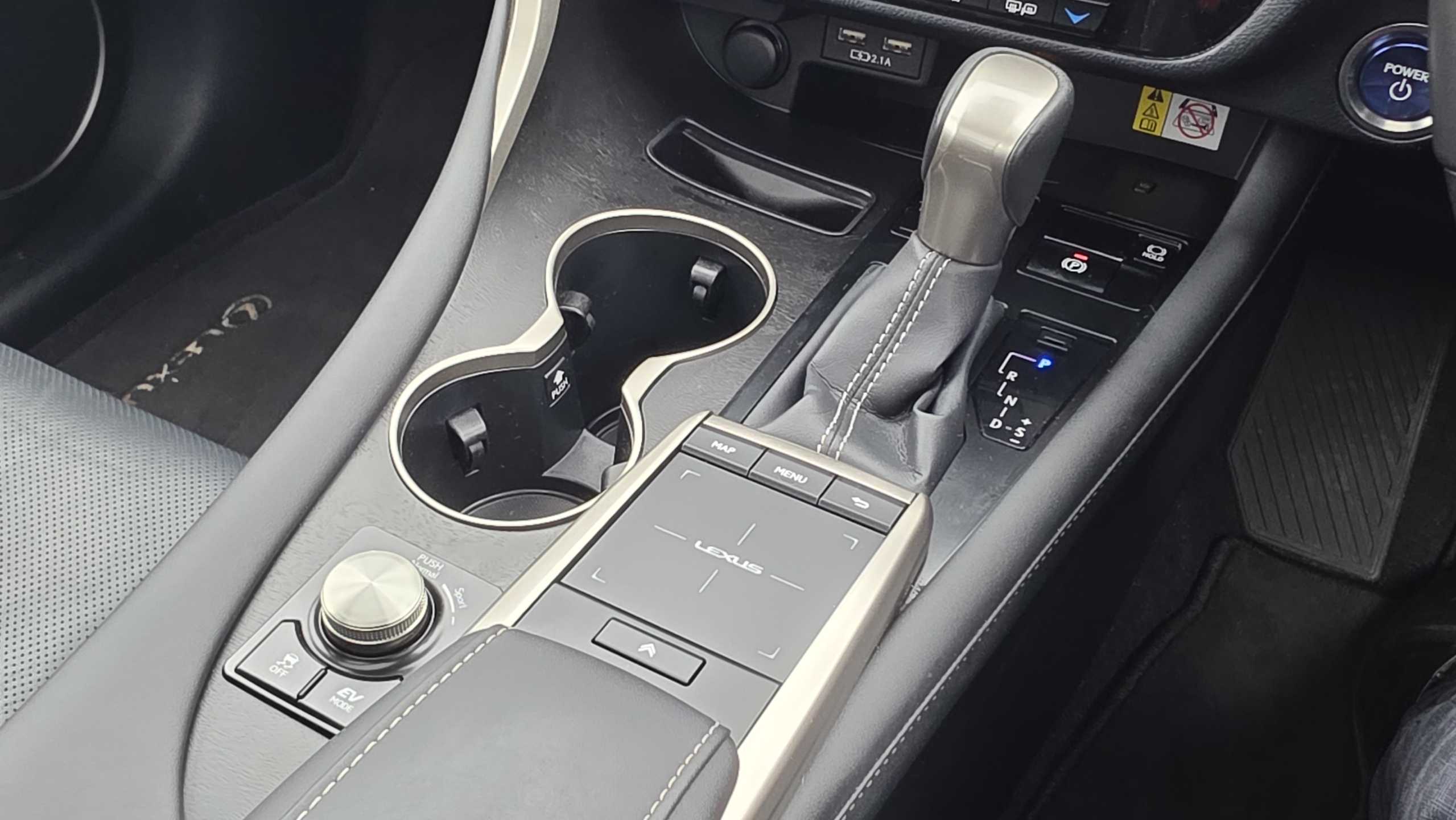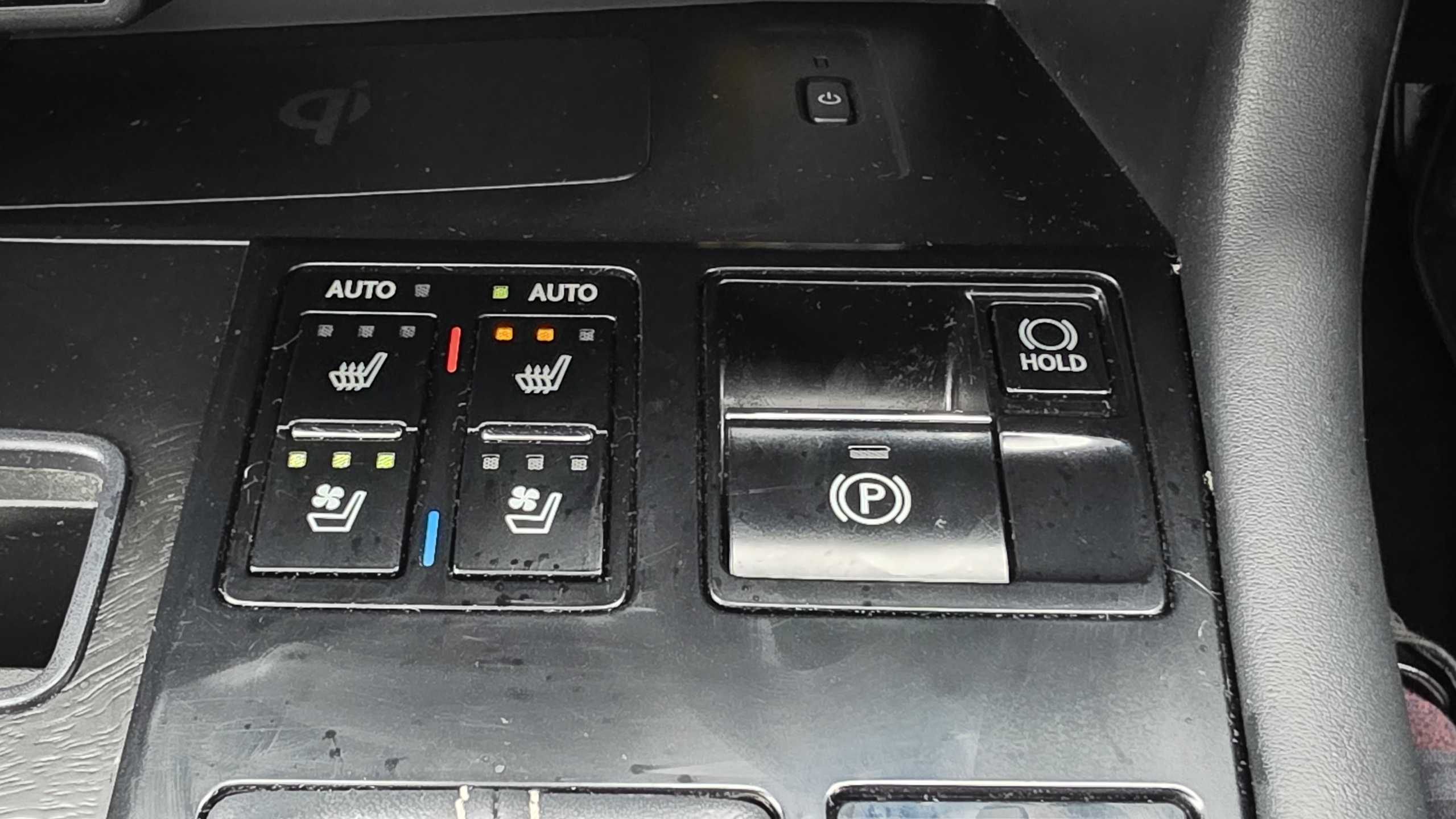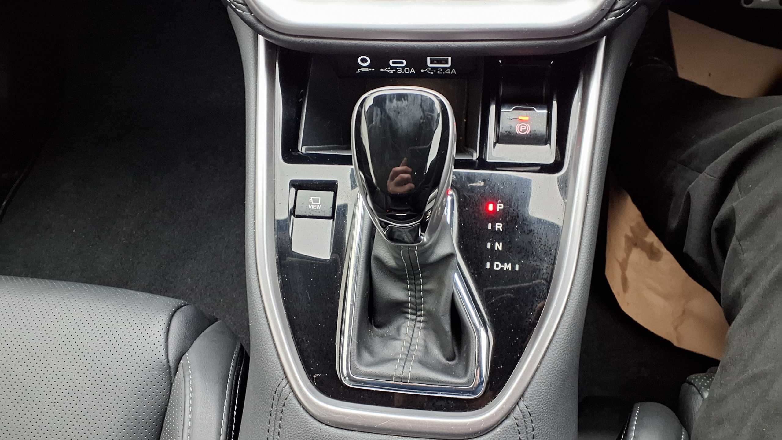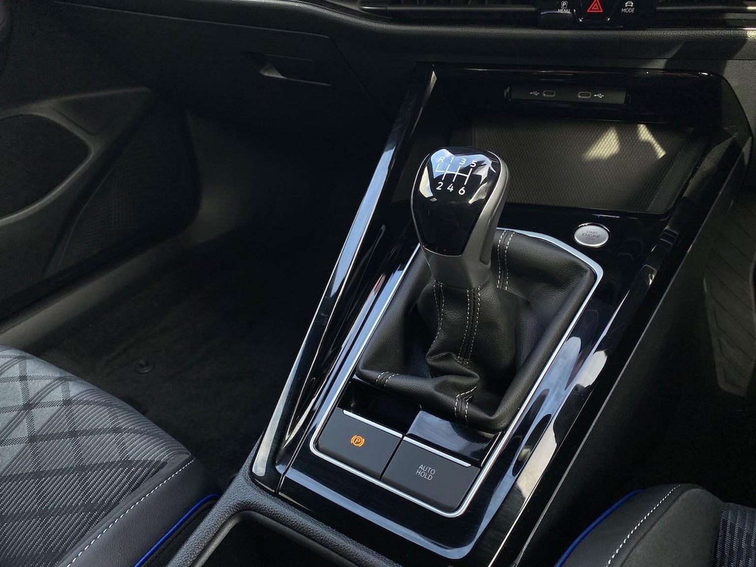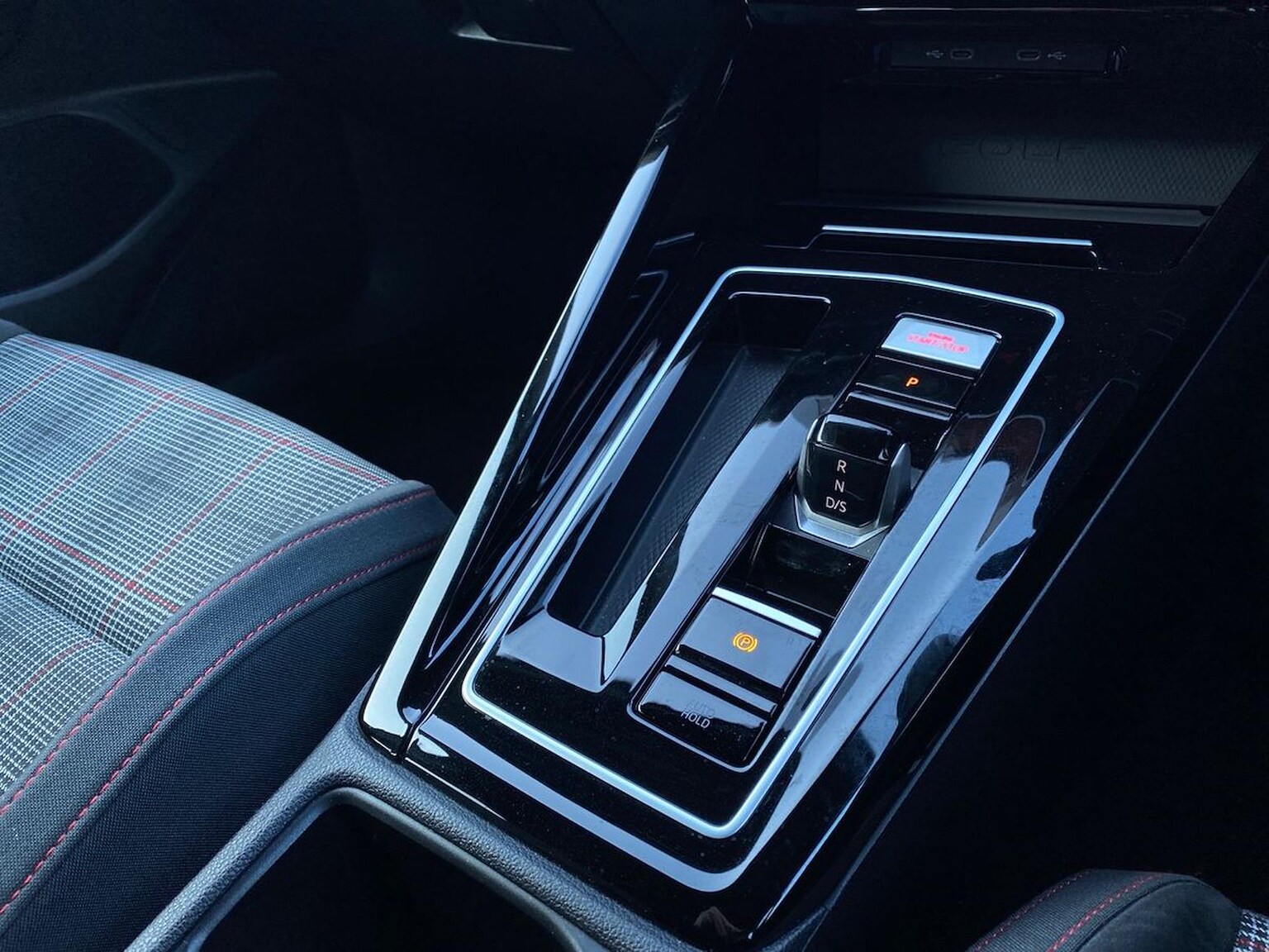 "Illuminated USB charging ports in lower dashboard area",