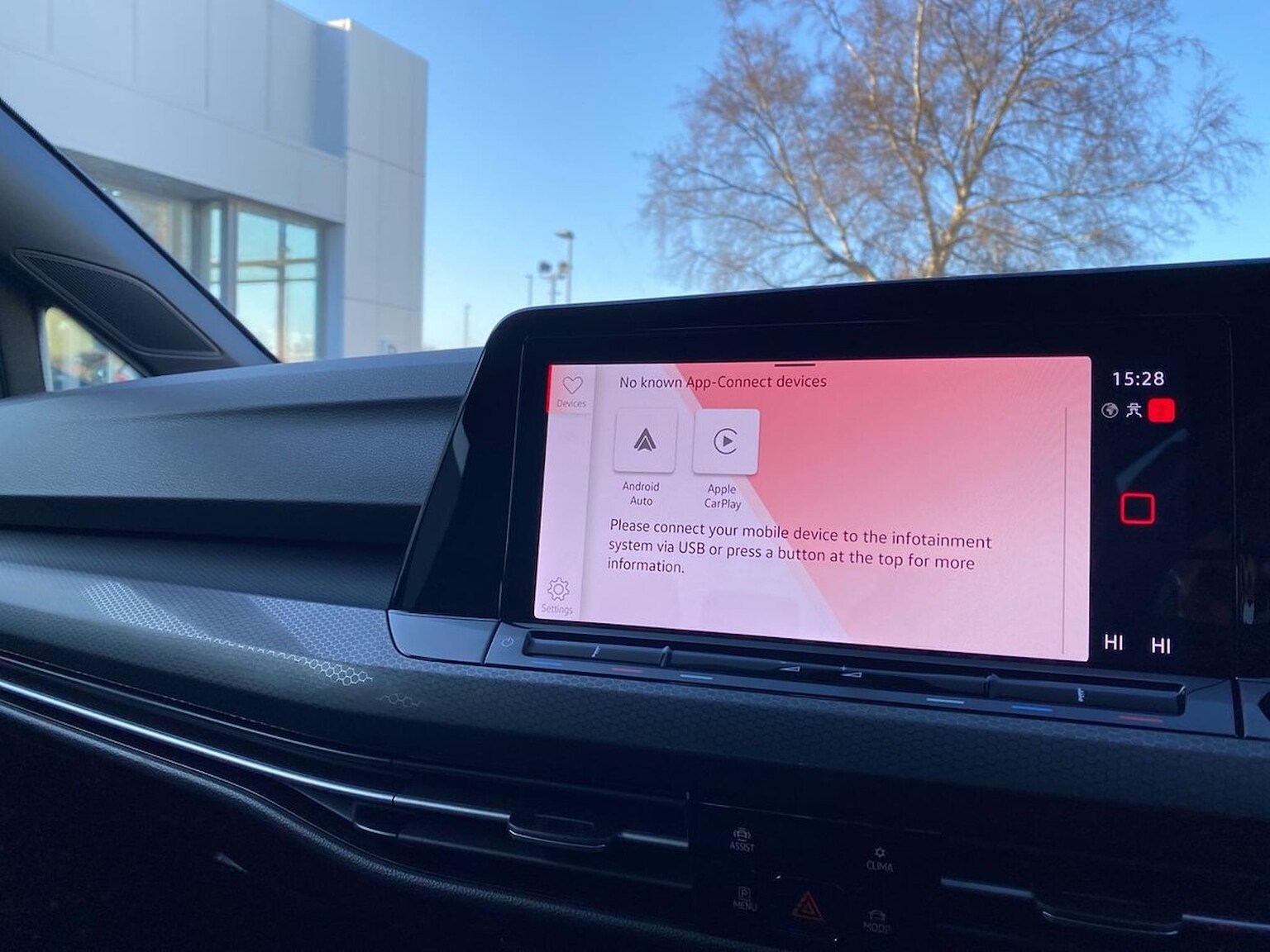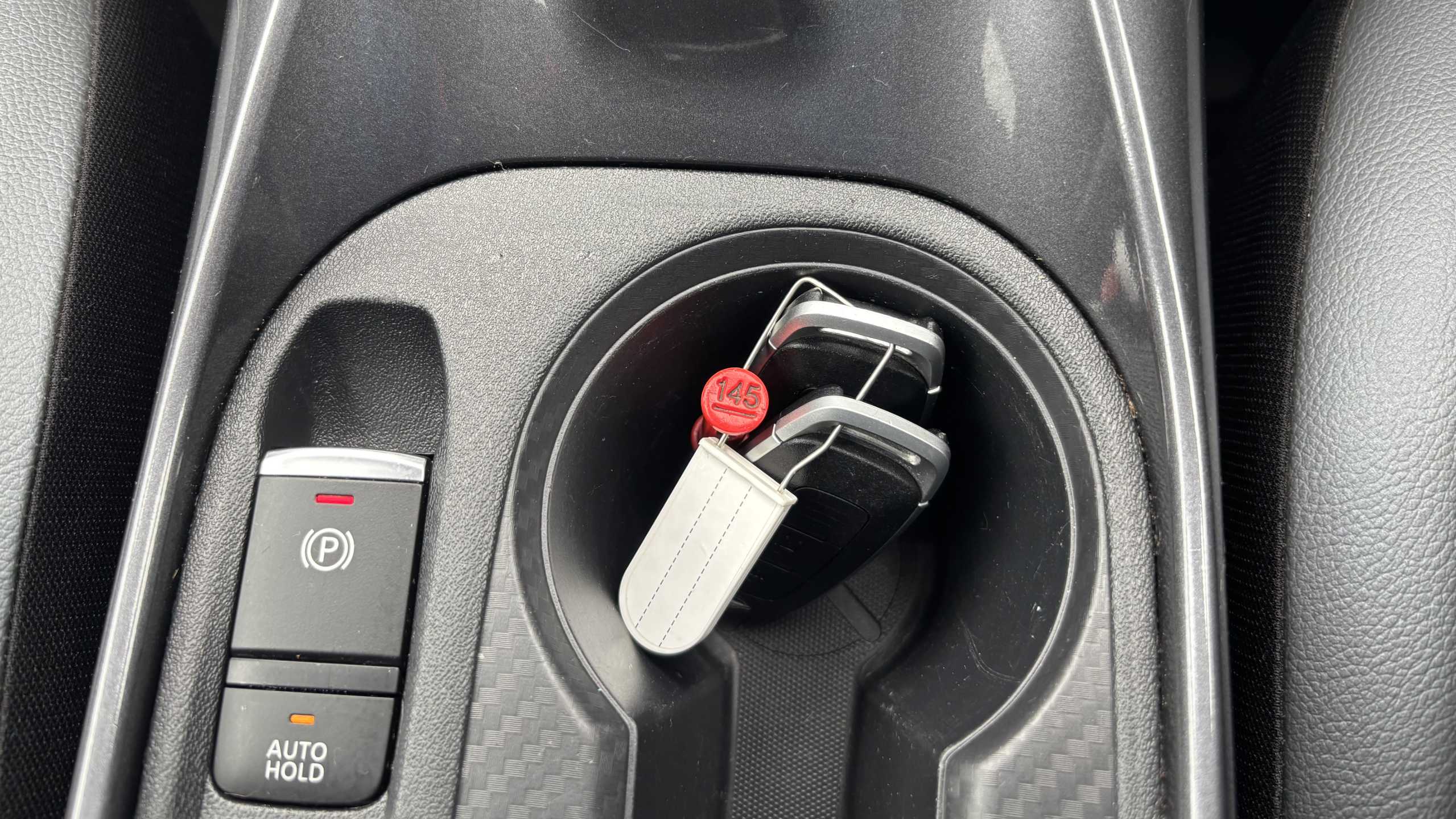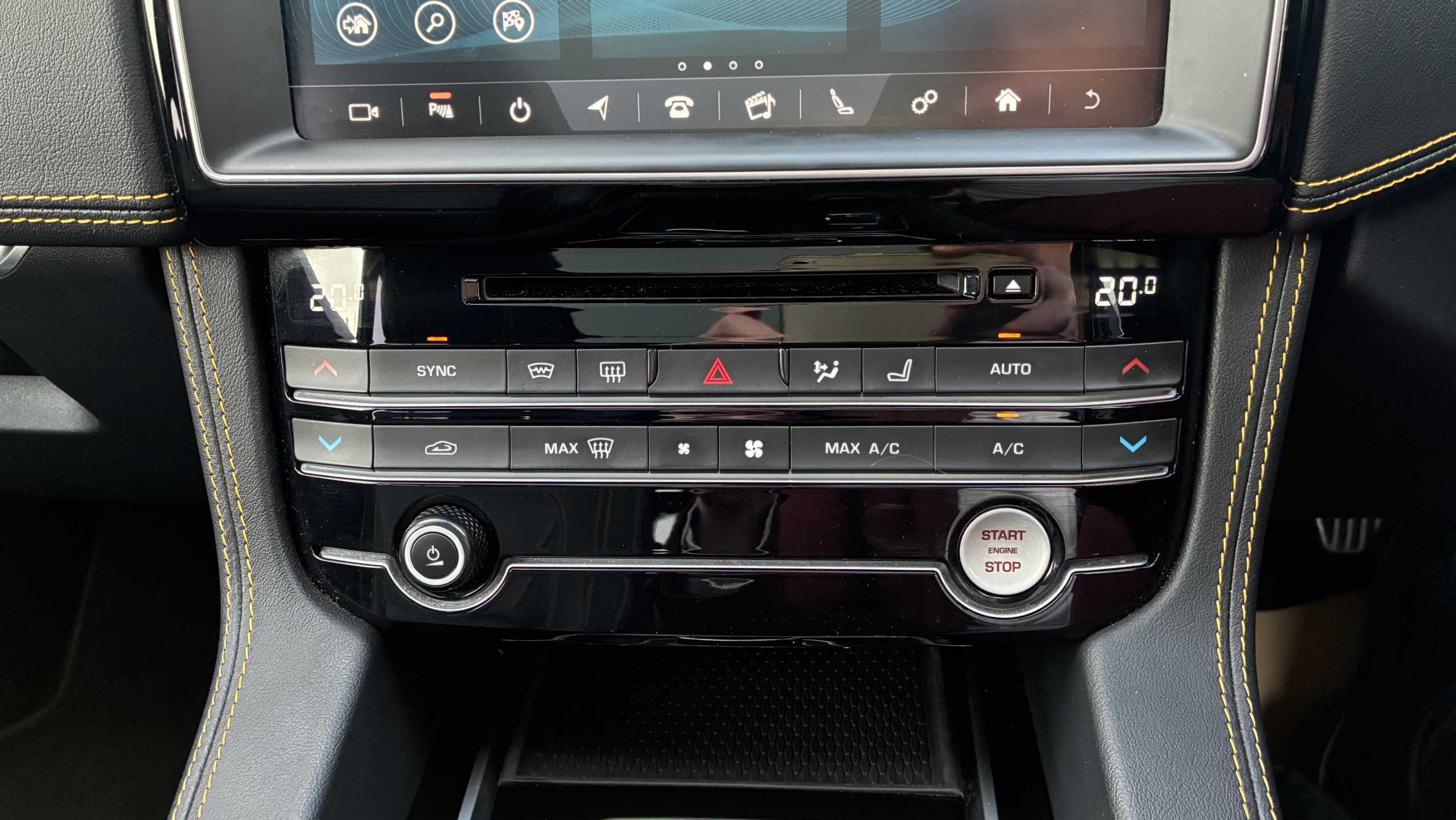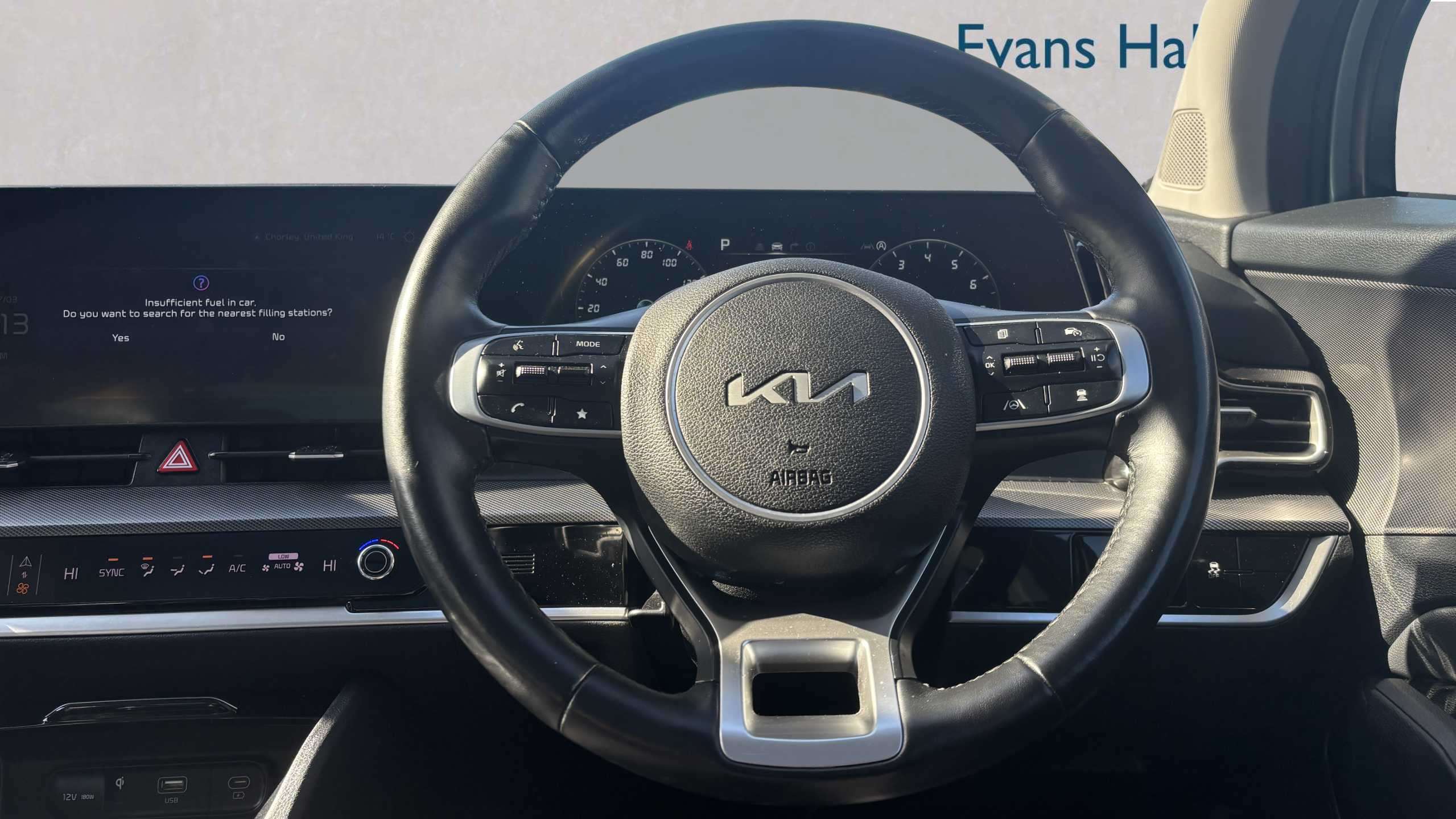"Illuminated USB charging ports in lower dashboard area",