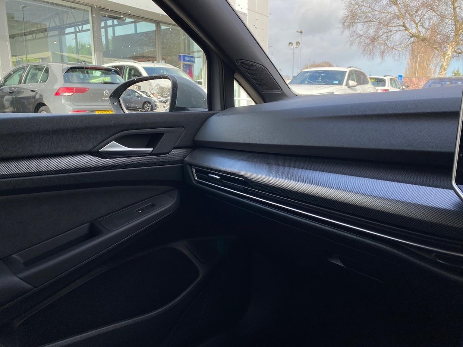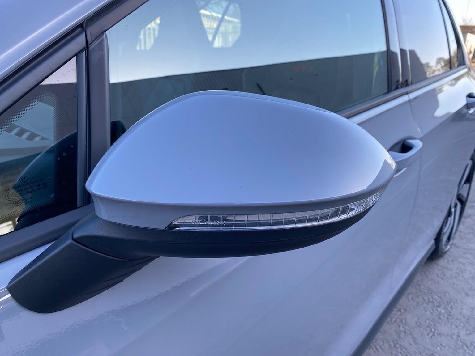 "Satin chrome door mirrors with built-in LED indicators",