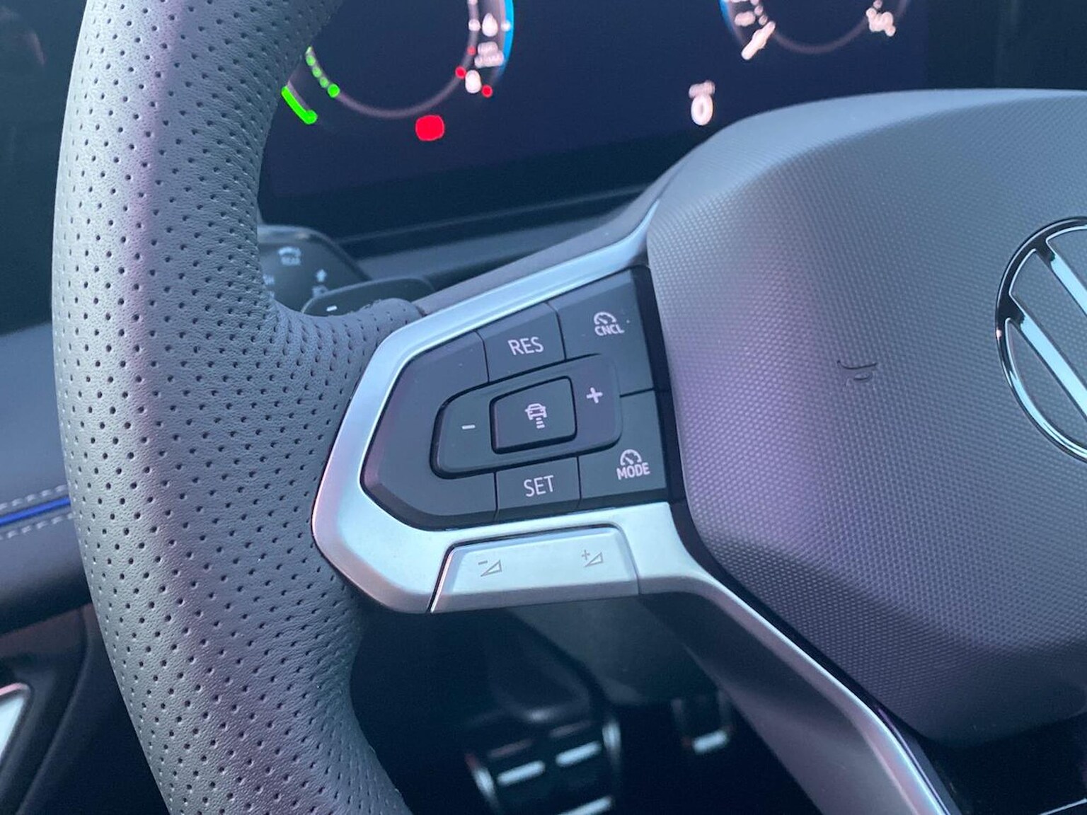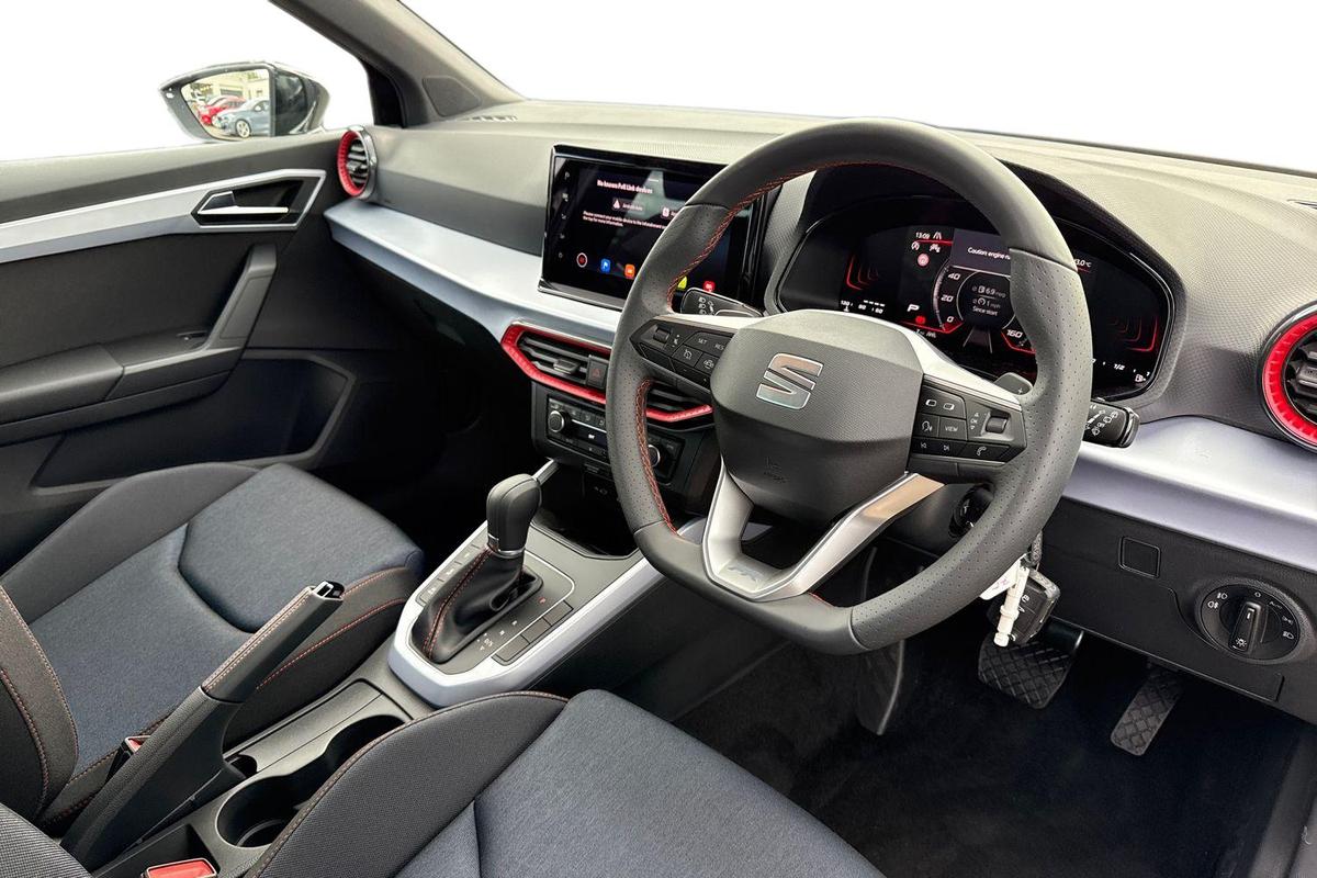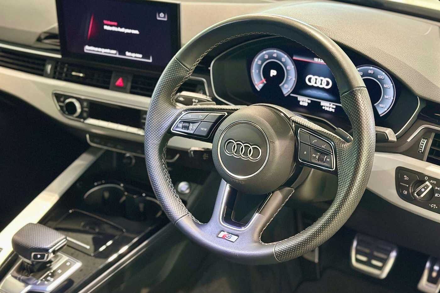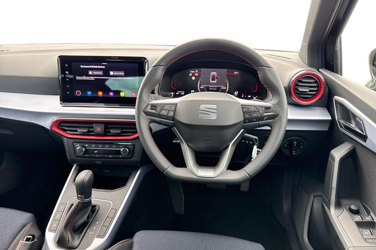 "3 spoke leather multi-function plus steering wheel features S badging and grips in perforated leather with contrast stitching",