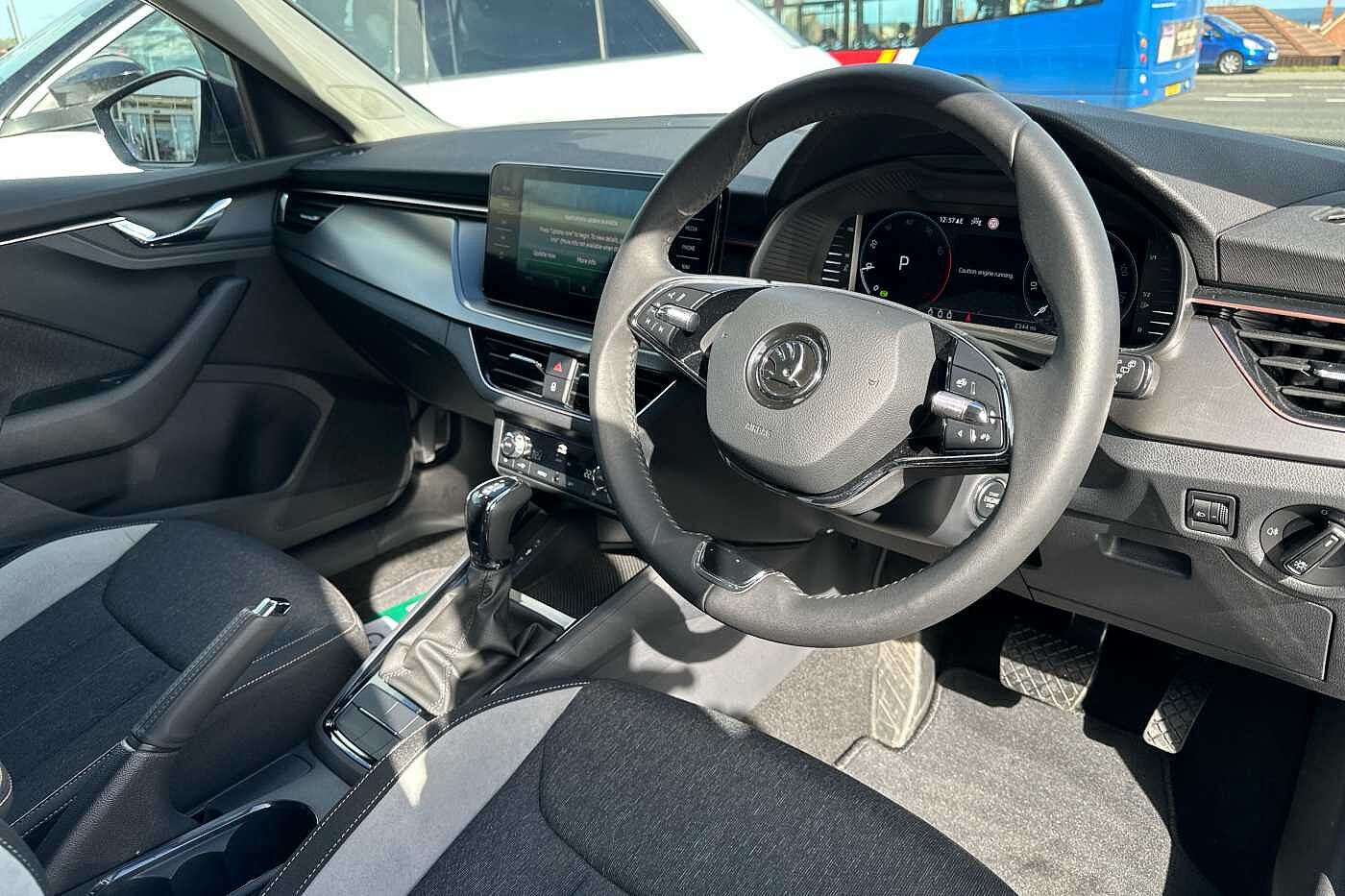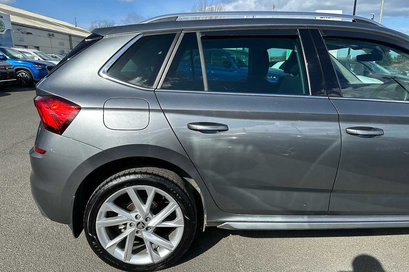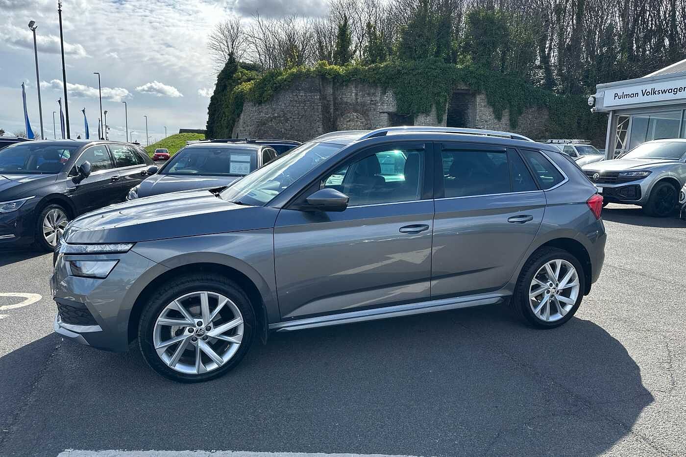 "features": "8\" Digital display, Care connect, Driver fatigue sensor, Emergency services call system, Outside temperature gauge, Service interval indicator, SmartLink wireless for Apple and wired for Android, Start/stop system with regenerative braking, USB C Port x 2 in front centre console, 8 Speakers, DAB radio with Bluetooth, USB connection, Acoustic glass, Aero front windscreen wipers with intermittent function, Auto dimming rear view mirror with light and rain sensors, Black electric window control buttons, Body colour door mirrors and handles, Dynamic headlight range control with cornering light function, Electric front and rear windows with child proof lock, Heated rear windscreen, LED daytime running lights, LED rear lights with high functionality welcome effect and dynamic indicators, Light assistant (coming/leaving home/tunnel light), Plastic scuff plates, Privacy glass, Rear side wing doors, Rear spoiler, Rear window wiper with washer system and intermittent control, Safety reflectors on front doors, 1.5 litre bottle holders in driver and front passenger door panels, 12V socket in boot, 12v socket in front centre armrest with storage compartment and rear air vents, 2 spoke leather heated multifunction steering wheel with DSG paddles, 2 x Tablet holder, 3 rear height adjustable headrests, 3 seat bench in 2nd row, 4 foldable roof handles with rear coat hooks, Black floor carpet, Chrome inner door handles, Decorative door sills with KAROQ badging, Double sided boot floor, Foldable hooks in the boot, Front head restraints, Height adjustable front three point seats belts with tensioners, Height/reach adjust steering wheel, Ice scraper, Illuminated glovebox, Illuminated luggage compartment, Isofix child seat preparation for front passenger seat, Isofix child seat preparation outer rear, Manual lumbar support for front seats, Pen holder, Pollen filter, Rear boot cover, Rear reading lights, Rubbish bin door, Safety vest holder, Single front passenger seat, Storage box in upper central dashboard closed, Sunvisors with illuminated vanity mirrors, Textile floor mats, Ticket holder, VarioFlex seats with standard rear seat release, Boot pack - Karoq, Chrome roof rails + chrome pack - Karoq, Parking pack - Karoq, Automatic door unlocking in case of crash, Automatic fuel cut off in case of crash, Child locks on rear doors, Driver airbag, Electronic parking brake with auto hold function, Emergency rear braking signal, ESC including ABS, MSR, ASR, EDS, HBA, DSR, RBS, MKB and traction control, Front side airbags, Hill hold control, Knee airbags, Passenger airbag with switch-off function, Pedestrian monitor, Seatbelt reminder signalisation and pretensioner for all seats, Three point seatbelts rear, Two tone horn, Tyre pressure display, Tyre pressure monitor, Alarm with interior monitoring, back up horn and tilt sensor with safe function, Electronic engine immobiliser, Keyless entry and start/stop, Remote central locking with 2 remote folding keys, Chrome framed air vents, 18\" Miran alloy wheels in black, Anti-theft wheel bolts protection, Storage on wheel cover, Tool kit, ",