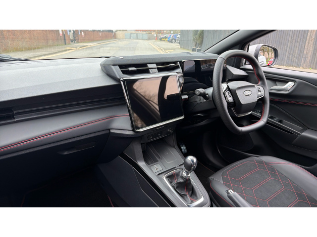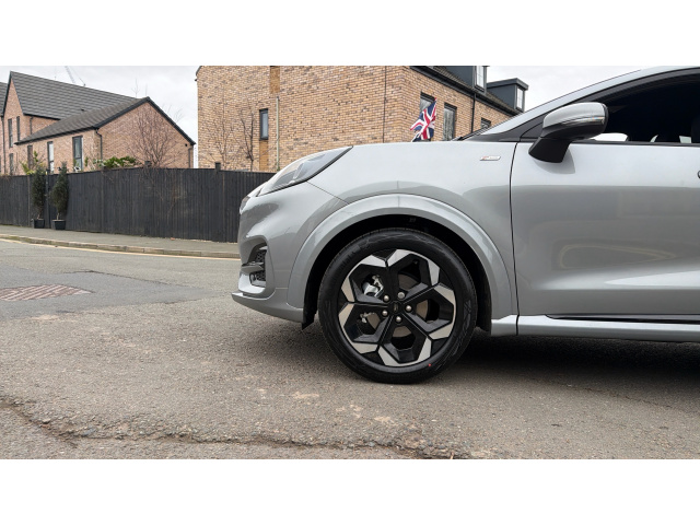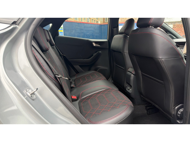 "features": "Driver impairment monitor, Emergency call service, Ford easy fuel, Full digital 12.3\" instrument cluster, Lane keeping aid with lane departure warning, Power assist steering, Selectable drive modes(Normal, sport, Eco, trail, slippery), Speed sign recognition, Sport suspension, 12\" landscape touchscreen display with wireless apple car play and android auto 6 speaker audio system, Ford pass connect and emergency assistance, Ford SYNC4 with connected navigation, Automatic headlights with rain sensing wipers and auto high beam, Front fog lamps, LED daytime running lights, LED rear lamps, Power foldable heated door mirrors with puddle lamps and puma logo protection, Quickclear heated windscreen, Rear privacy glass, Rear side wing doors, Rear wiper, ST-Line body styling kit with unique grille, Third brake light, 3 seat bench in 2nd row, Centre console with armrest and stowage, Electronic automatic temperature control (EATC), Ford megabox extended bootspace, Front and rear head restraints, Front floor mats, Manual 4 way driver seat adjust with lumbar adjustment, Single front passenger seat, ST- Line cloth trim with red stitching, 3 rear seatbelts, Child safety lock, Electronic stability control (ESC) and hill start assist, Pre-collision assist with autonomous emergency braking, pedestrian/cyclist detection & post-collision braking, Tyre pressure monitoring system (TPMS), Thatcham alarm, ",