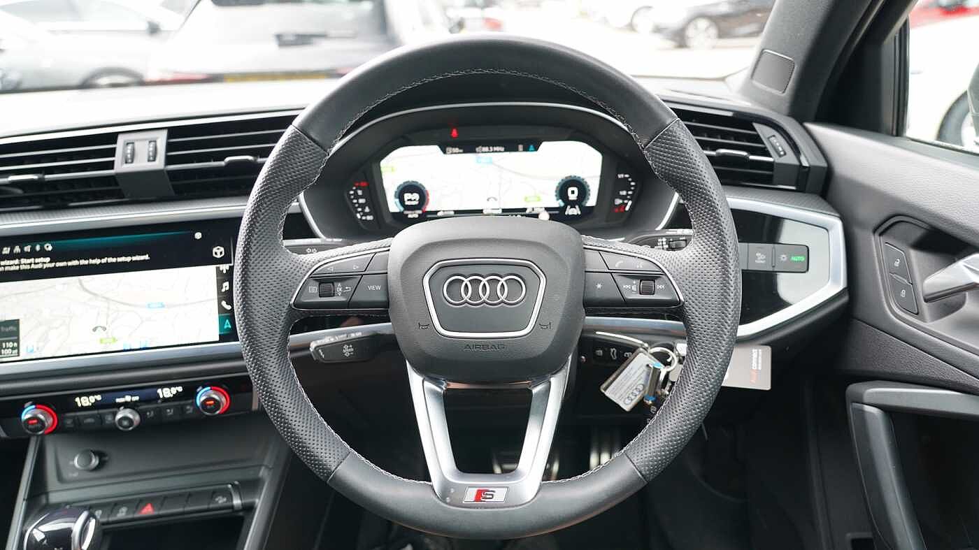 "features": "Adaptive cruise control, Advanced driver attention and fatigue montior, Audi application store, Audi assistant, Audi connect emergency call and service, Audi drive select, Audi smartphone interface, Audi virtual cockpit plus with 11.9\" OLED colour display, Automatic start/stop system with coasting functionality, Camera based traffic sign recognition, Intersection assist, Lane change assistant with exit warning system, rear cross traffic alert and rear turn assist, Lane departure warning with emergency assist, MMI 10.9\" front passenger touch display, MMI navigation plus with high resolution 14.5\" OLED touchscreen colour display, Park assist plus, Parking system plus with 360 display, Progressive steering with servotronic, Swerve assist and turn assist, Top view camera, Traffic sign based speed limiter, Sports suspension lowered by 20mm, 2 USB-C ports in both the front and rear, Audi sound system impressive sound with 10 loudspeakers including centre speaker and subwoofer, 6-channel amplifier with a total output of 180 watts, DAB digital radio reception, Smartphone compartment with wireless charging, Aluminium window trims, Auto dimming rear view mirror, Black door handles, Black roof rails, Dark chrome-plated tailpipe trims, Door mirrors - electrically adjustable, heated, folding and auto dimming on both sides, Front and rear electric windows, Front door sill trims with aluminium inlays, illuminated with 'S' logo, Headlight cleaning system, High beam assist, LED daytime running lights, LED rear lights pro incl. dynamic rear indicators and illuminated light strip with animated coming and leaving home function, LED third brake light, Matrix LED headlights with eight light signatures selectable via the MMI or the myAudi app, Privacy glass, Rear and side windows with heat insulating glass, Rear side wing doors, Rear wash/wipe, S Line badges on the front wings, S line bumpers, radiator grille and diffuser in phantom black and diffuser insert in matt anthracite, White rhombus logo projection light in exterior mirrors, Windscreen with acoustic glazing, 3 rear headrests, 3 seat rear bench, 3 spoke leather steering wheel with multi-function buttons with touch control, flattened on top and bottom, with S badging and contrast stitching, 3-zone automatic climate control, 40:20:40 split folding rear seat bench with centre armrest and cup holders, Comfort front centre armrest, Electrically adjustable front seats, Front and rear floor mats, Front sport seats with integrated headrest and S embossed logo, Headlining in black cloth, Heated front seats, i-Size child seat mounting on the front passenger side and outer rear seats, i-Size and top tether on the outer rear seats, Luggage compartment lid, electrically opening and closing, Manual steering column height and depth adjustment, Memory function for driver seat, Single front passenger seat, Stainless steel pedals and footrest, Steering wheel grips in perforated leather and shift paddles, Ambient lighting package plus - A5, Black styling package plus - A5, 3x3 point rear seat belts, Acoustic vehicle alerting system, Convenience key with safelock, Driver airbag, Electric child safety locks, First aid kit with warning triangle and vests, Front emergency brake assist, Front passenger airbag, Front passenger airbag deactivation, Hill hold assist, Occupant detection in rear seat area, Proactive passenger protection system for front, sides and rear, Red brake calipers, Seat belt monitoring with rear seat occupant reminder, Side airbags in front and rear with head airbag system and front interaction airbag, Tyre pressure loss indicator, Anti theft alarm, Anti-theft wheel bolts, Keyless Go, Accent surfaces and control buttons in gloss black, Black dashboard with contrast stitching, Softwrap in Dinamica with contrast stitching, Upper and lower interior elements in dinamica microfiber, 20\" 5 arm fold design Audi sport alloy wheels in silk matt grey and gloss turned finish, Tyre repair kit, ",