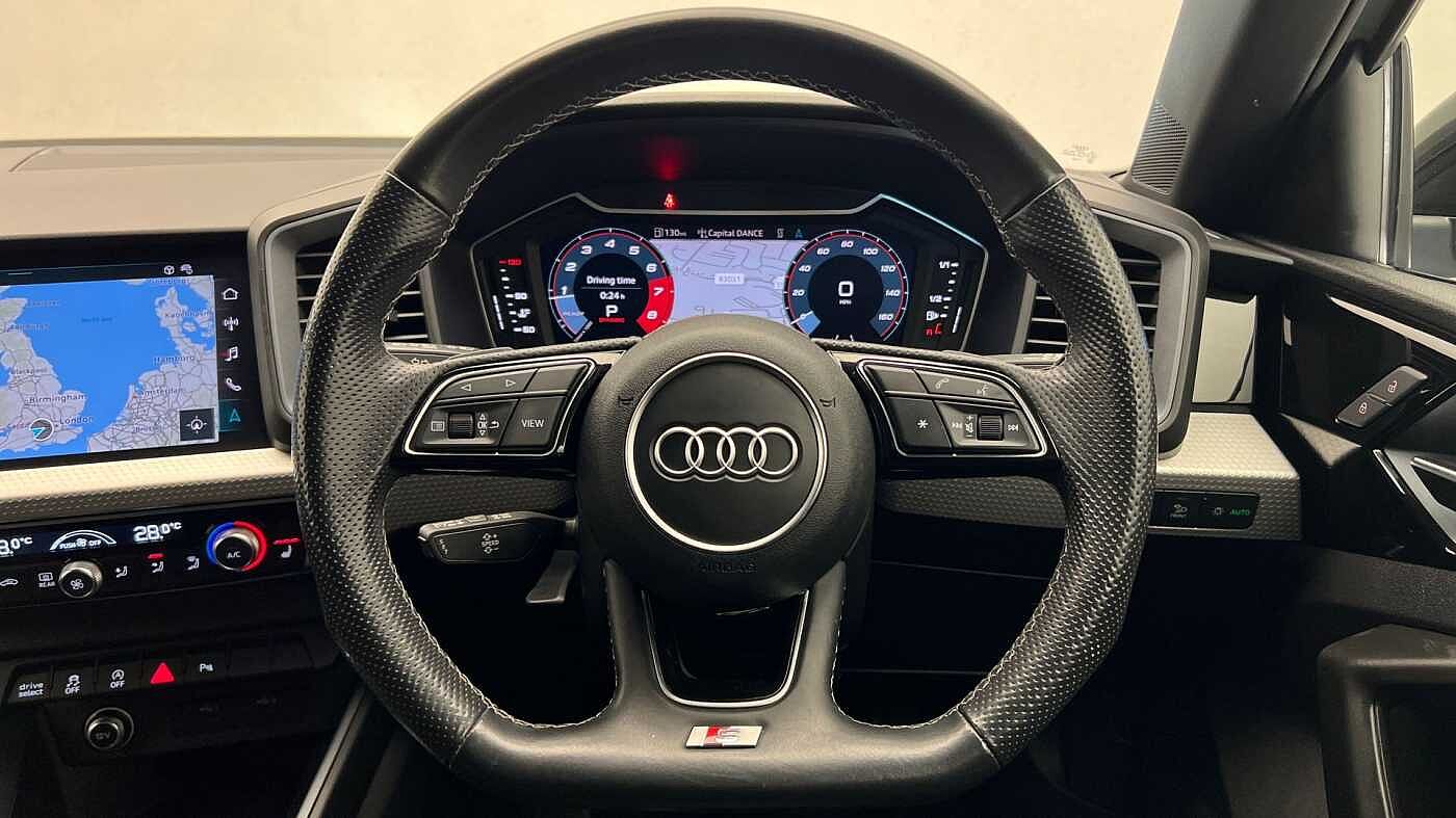 "features": "10.25\" Digital instrument cluster display classis style instrument dials + speed,odometer,time,outside temperature,telephone menu + fuel level warning, Audi drive select - power steering assistance + engine + gear shift 3 preset modes (auto, dynamic, efficiency and an Individual mode), Audi smartphone interface with connect compatible smartphone via USB directly MMI display + Nav,music, third party apps controlled via MMI controller, Automatic start/stop system, Bluetooth interface, Cruise control, Driver's information system, Electromechanical power steering, Emergency e-call, Lane departure warning system, Rear parking sensor, Service interval indicator, Speed limiter, Voice control system, Washer fluid level indicator, Sports suspension, 2 x USB type C connection points, 6 passive loudspeakers, DAB Digital radio, MMI radio plus with 10.1\" colour MMI display screen and MMI touch, Auto dimming rear view mirror, Black side skirts, Body coloured bumpers, Door sill trims with aluminium inlays and logo, Electric front and rear windows, Electrically adjustable, heated, folding door mirrors with integrated LED side indicator, Front side air inlets in grained matt black and C frame in anthracite black, Front wing badges, Heat insulating glass windscreen and side windows, Heated rear windscreen, High level LED brake light, LED headlights with LED rear lights + dynamic rear indicators + headlight adjustment and high beam, turning light + LED daytime running lights, Privacy glass, Rain and light sensors, Rear fog lights, Rear side wing doors, Rear wiper, Side front spoiler lips in grained matt black, 12V socket in centre console with two cup holders, 3 rear seats with headrests, 3 seat bench in 2nd row, 3 spoke flat bottomed multi-function plus leather steering wheel with S badging, grips in preforated leather, contrast stitching and paddle shift, 40:60 Split folding rear seat or folded fully, Black cloth headlining, Driver and passenger seat with manual height adjust with forward and backwards adjustment, Front and rear black floor mats with contrast stitching in fine silver, Front head restraints, Front passenger seat, Height and reach adjustable steering wheel, ISOFIX child seat mounting for front passenger and outer rear seats including top tether attachment point of outer rear seats, Leather gear knob with aluminium trim, Leather handbrake grip, Luggage compartment light with front and rear reading lights, Manual air conditioning, Manually adjustable lumbar support in front seats, Stainless steel pedals, Black styling pack - A1 Sportback Black Edition, LED interior lighting pack - A1, Luggage compartment pack - A1, 3x3 point rear seatbelts, Audi pre-sense front with pedestrain and cyclist recognition, Brake assist function, Driver and front passenger airbag with front side and head airbags, Electronic Stability Control including ABS, EBD, ASR and EDL, Front passenger airbag deactivation switch, Hill hold assist, Manual rear child locks, Seatbelt height adjustment for front seats, Seatbelt monitoring, Tyre pressure warning light, Warning triangle and first aid kit, Anti theft alarm, Anti theft wheel bolts and loose wheel warning, Immobiliser, Remote central locking with 2 foldaway keys, Aluminium trim for control switches, air vents and digital instrument cluster, Black dashboard, Silver grey inlays polygon structure in diamond paint finish, Structured grey accent areas including air vents, door handle recesses and centre console in quartz paint finish, ",