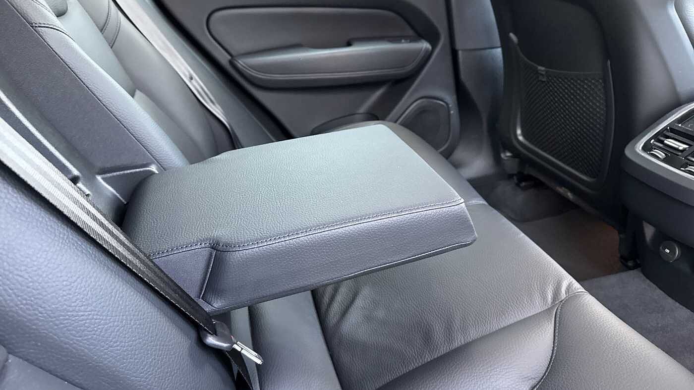 "Load-through provision with cup holder when folded down ('Unsplit rear seat bench, split folding backrest, with centre armrest)",