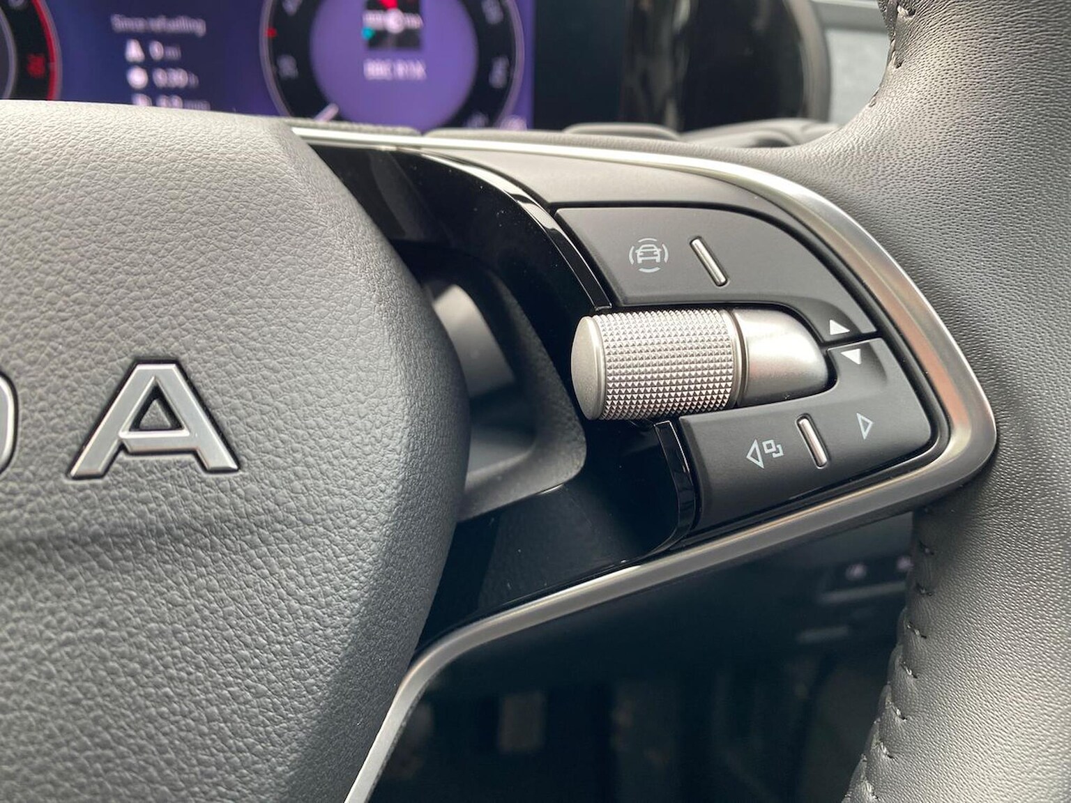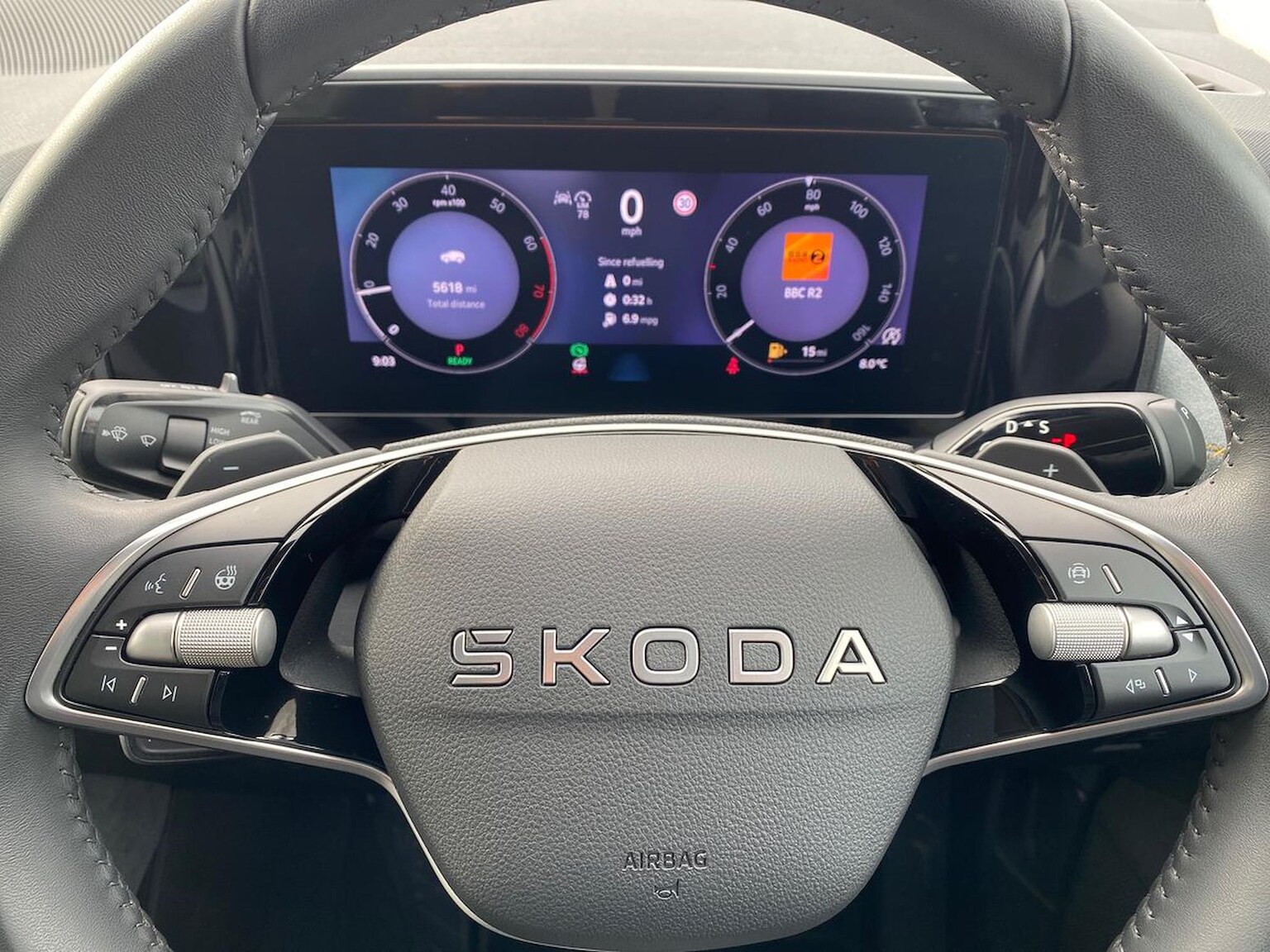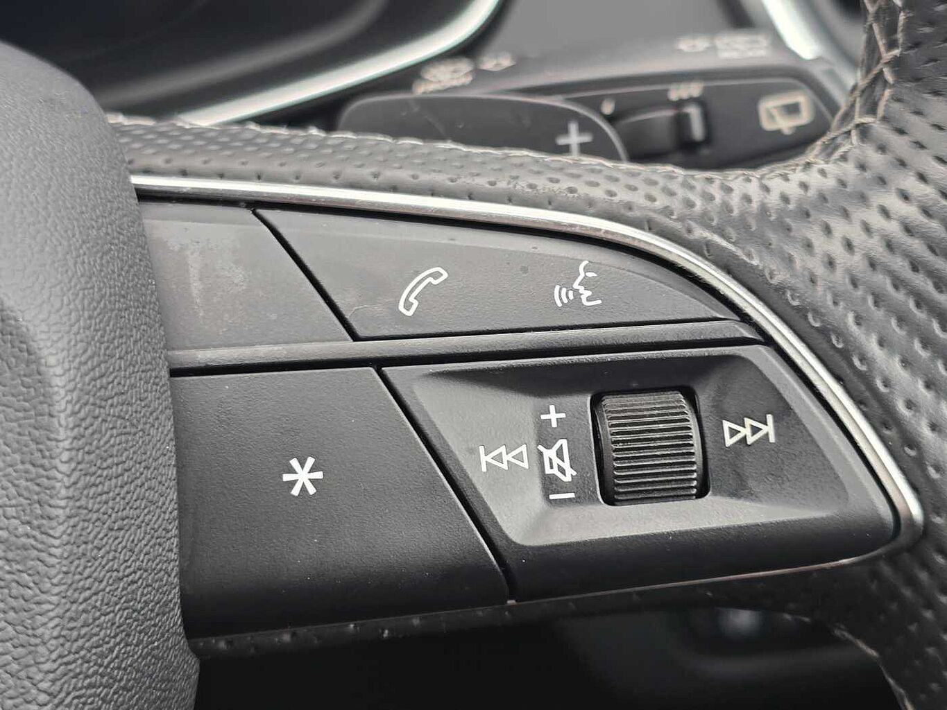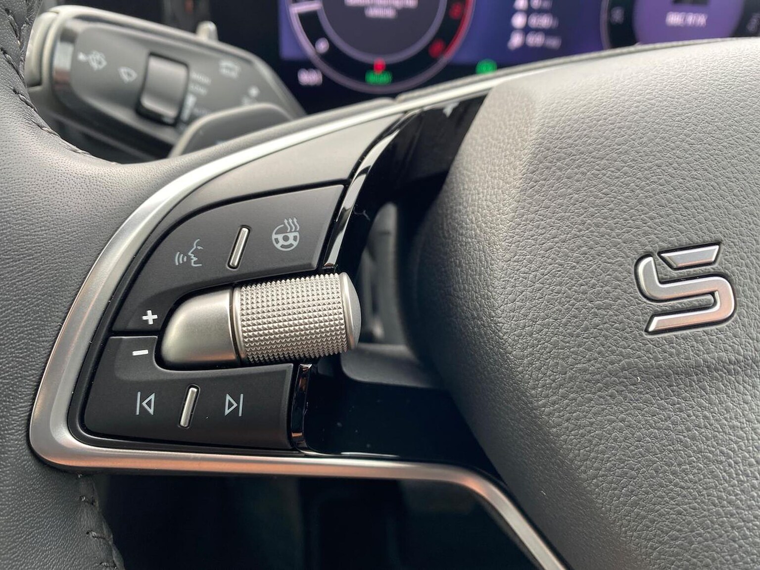 "Four spoke multifunction leather steering wheel with shift paddles for recuperation",