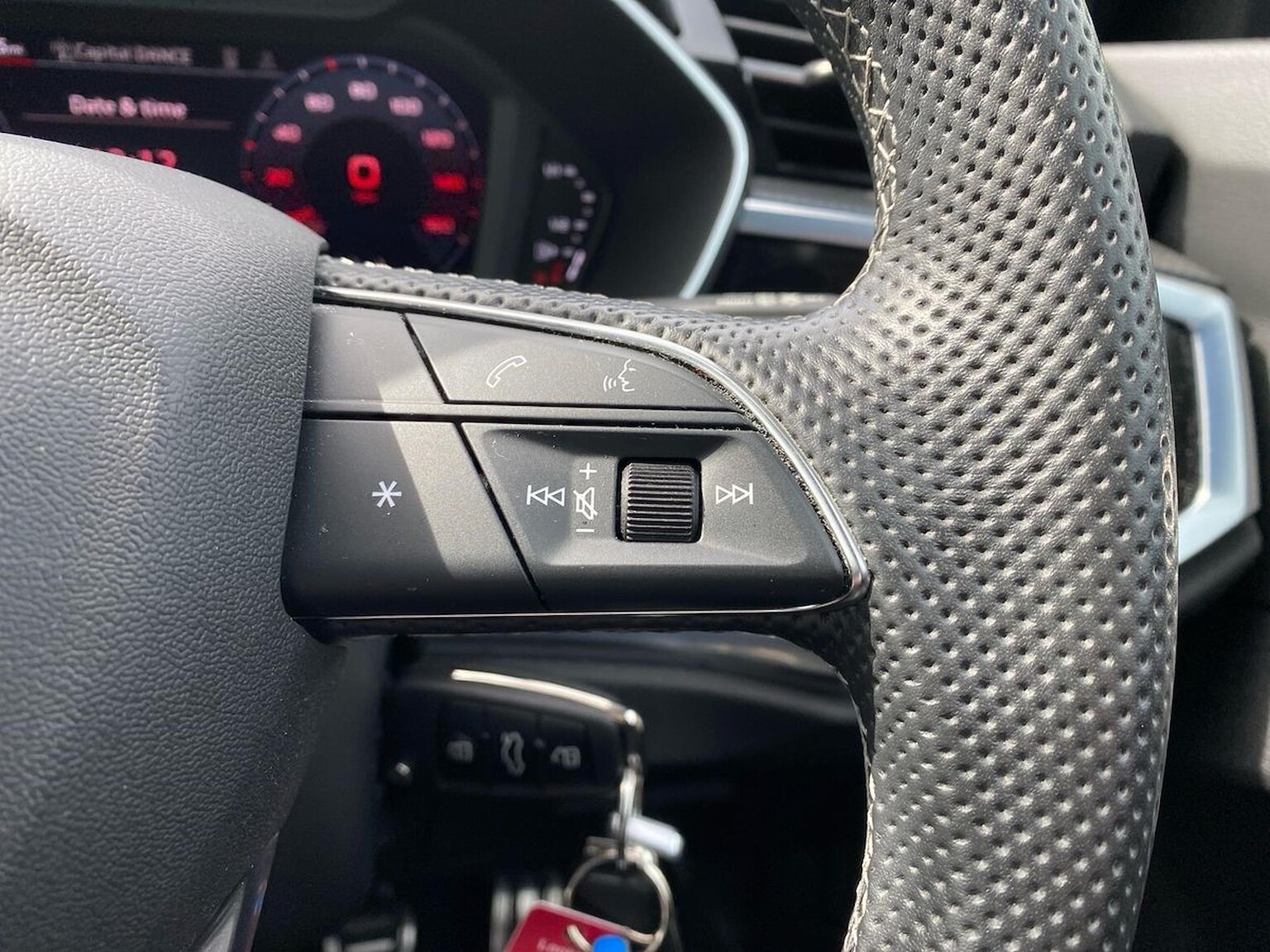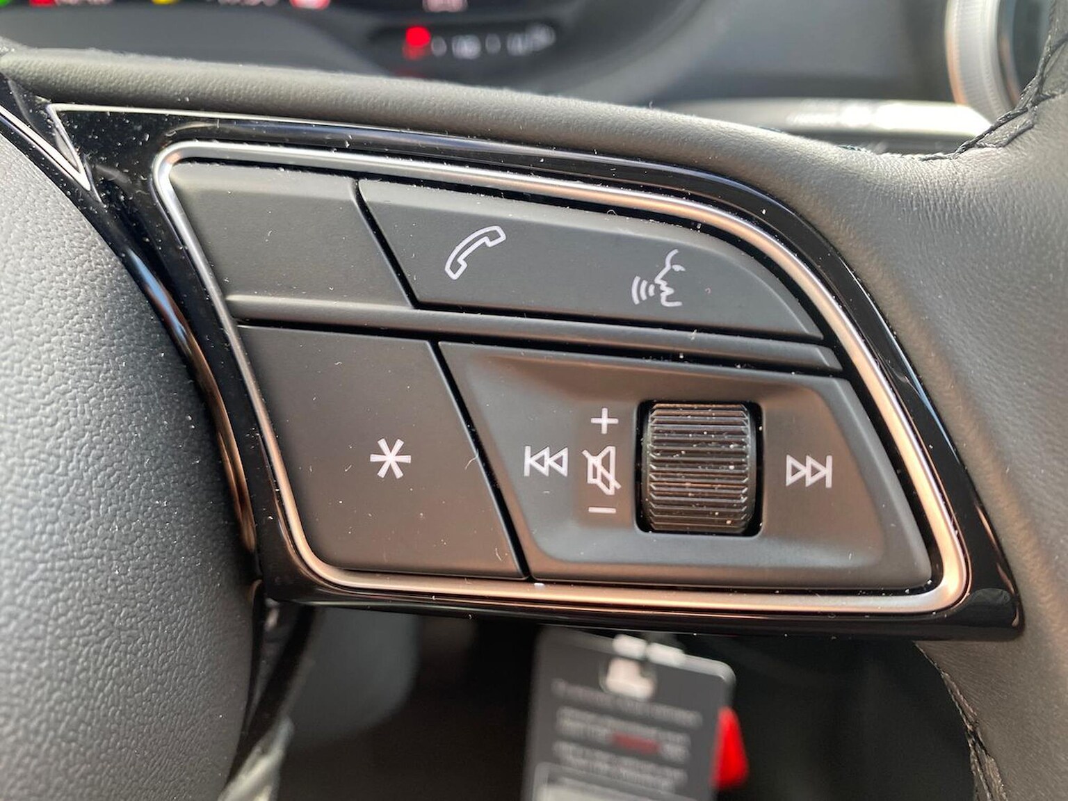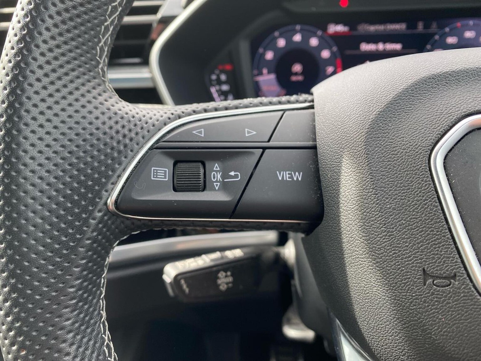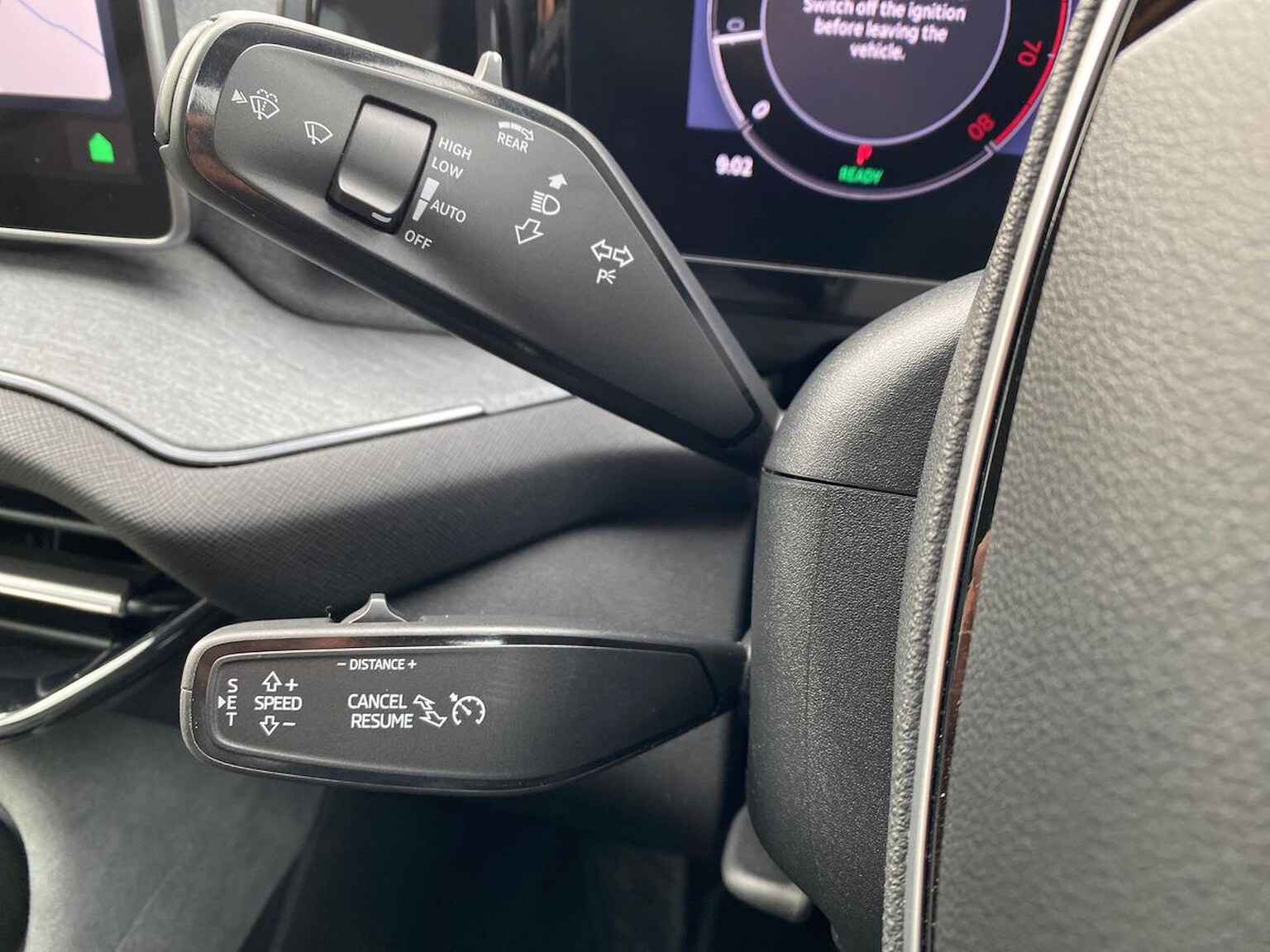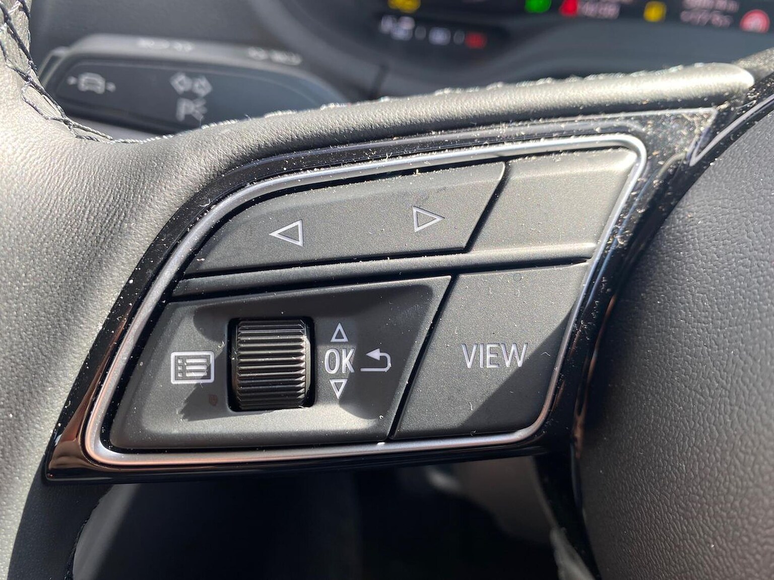 "Four spoke multifunction leather steering wheel with shift paddles for recuperation",