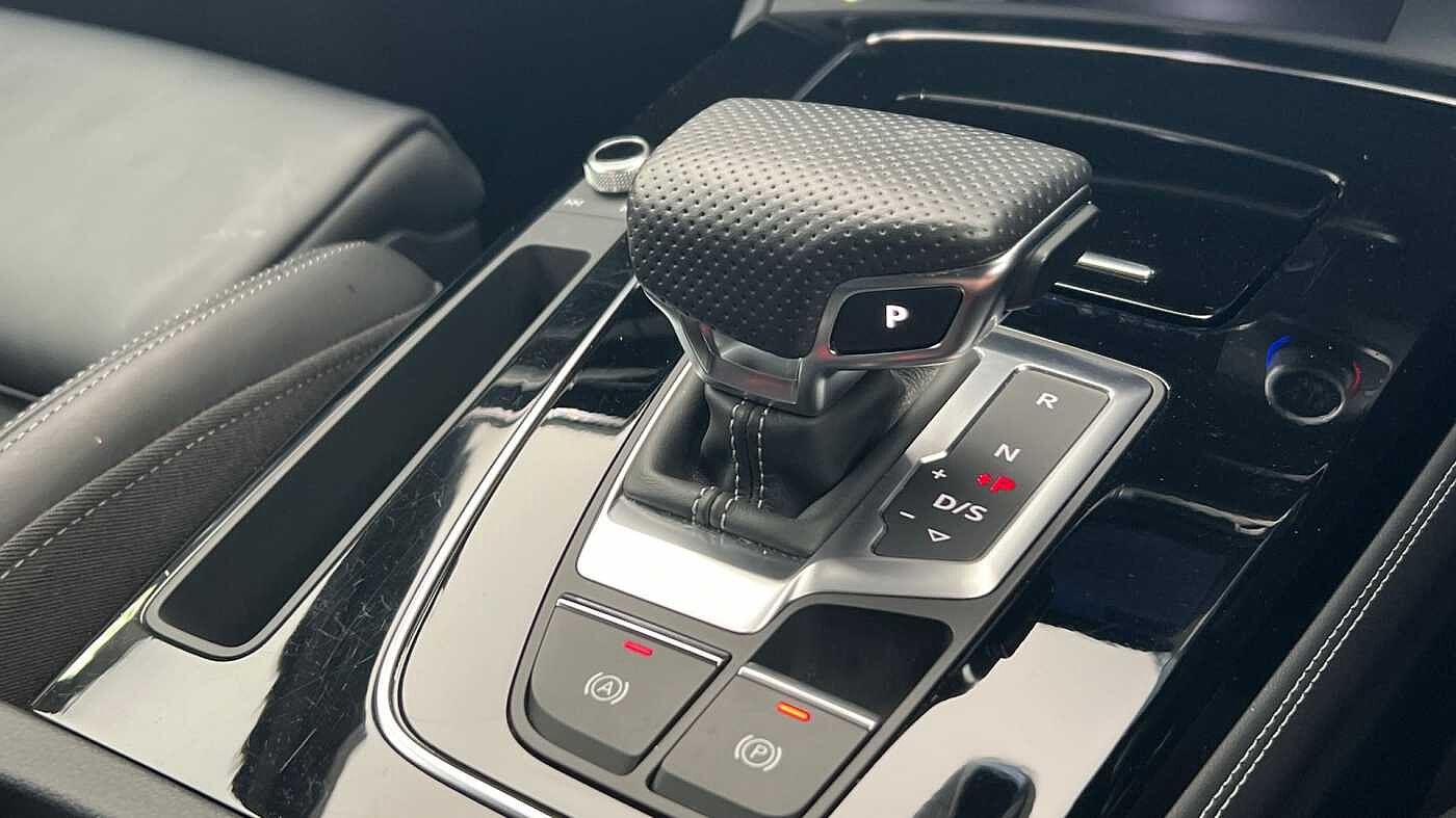"Gear shift lever with chrome frame and black gloss insert",