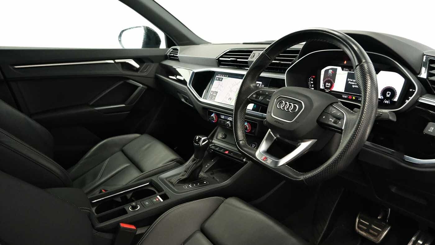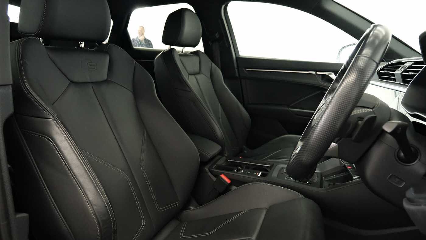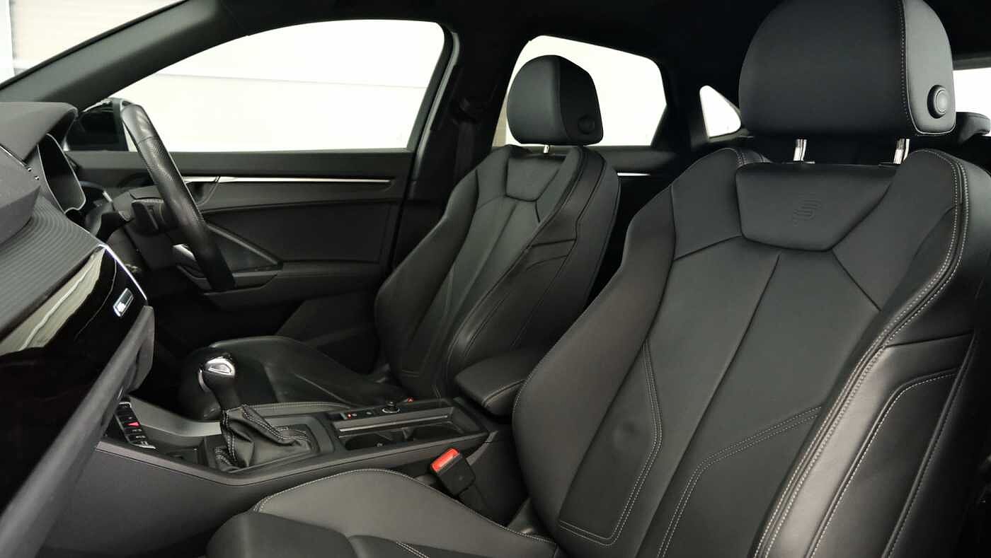 "features": "Audi drive select, Audi lane departure warning, Audi Virtual Cockpit - 10.25\" display, Bluetooth interface, Camera based traffic sign recognition, Legal emergency call, MMI Navigation Plus with high resolution 10.1 inch touchscreen colour display, Power operated tailgate, Progressive steering, Service interval indicator, Smartphone interface includes wireless Apple carplay/Android Auto, Start stop system with recuperation, Voice control system with natural language interaction, Sports suspension, 2 USB-C ports with charge and data functions, 6 passive loudspeakers, DAB digital radio module, Acoustic windscreen, Auto dimming frameless rear view mirror, Diffuser grille in grained matt black, Diffuser trim in selenite silver, Electrically folding, adjustable and heated door mirrors with integrated LED side indicators and kerb view function for passenger side, Front and rear electric windows, Front fog lights, Front underbody protection in manhattan grey paint finish, High gloss black finish B and C pillars, LED Dynamic rear indicators, LED headlights with LED daytime running lights, LED rear lights, LED third brake light, Privacy glass dark tinted rear and rear-side windows (from B-pillar backwards), Rain and light sensors, Rear side wing doors, Rear underbody protection in matt black, Rear wiper, Variable front intermittent wipers, 12V socket in rear centre console, 3 seat bench in 2nd row, 40:20:40 folding with manual adjustment for 60:40 forwards/backwards position and backrest angle, Adjustable rear seat bench/backrest with centre armrest and cupholder, Black cloth headlining, Dual zone electronic climate control, Front and rear black floor mats with contrast stitching, Front and rear headrests, Front and rear roof module including reading lights, Front centre armrest, Glove compartment lighting, Height and reach adjustable steering wheel, Illuminated door sill trims with S logo, ISOFIX child seat mounting for front passenger with airbag deactivation and outer rear seat including top tether attachment point for outer rear seats, Luggage compartment light right in white, Luggage compartment sill protection in stainless steel, Manual front seats with height adjustment, Perforated leather gearknob, Single front passenger seat, Stainless steel pedals, Ambient lighting pack - Q3, Black styling pack - Q3, Non smoking pack - Q3, 3x3 point rear seatbelts, 6 airbags - Driver, front passenger, curtain and side windows, Audi pre-sense front with pedestrain and cyclist recognition, Electrically operated child locks on rear doors, Electromechanical parking brake, Electronic stabilisation control including ABS, ASR and EDL, Front seatbelt reminder, Hill descent control, Hill hold assist, Pre sense basic, Seatbelt monitoring, Tyre pressure warning, Warning triangle and first aid kit, Anti theft alarm, Anti theft wheel bolts, Immobiliser, Remote central locking, Aluminium look interior elements, Black dashboard, Detail dashboard around MMI touch colour display in glass look, black with surround in aluminium look, Leatherette door armrest, Piano black inlay, 19\" 5 twin arm design diamond cut audi sport alloy wheels in matt grey look, ",