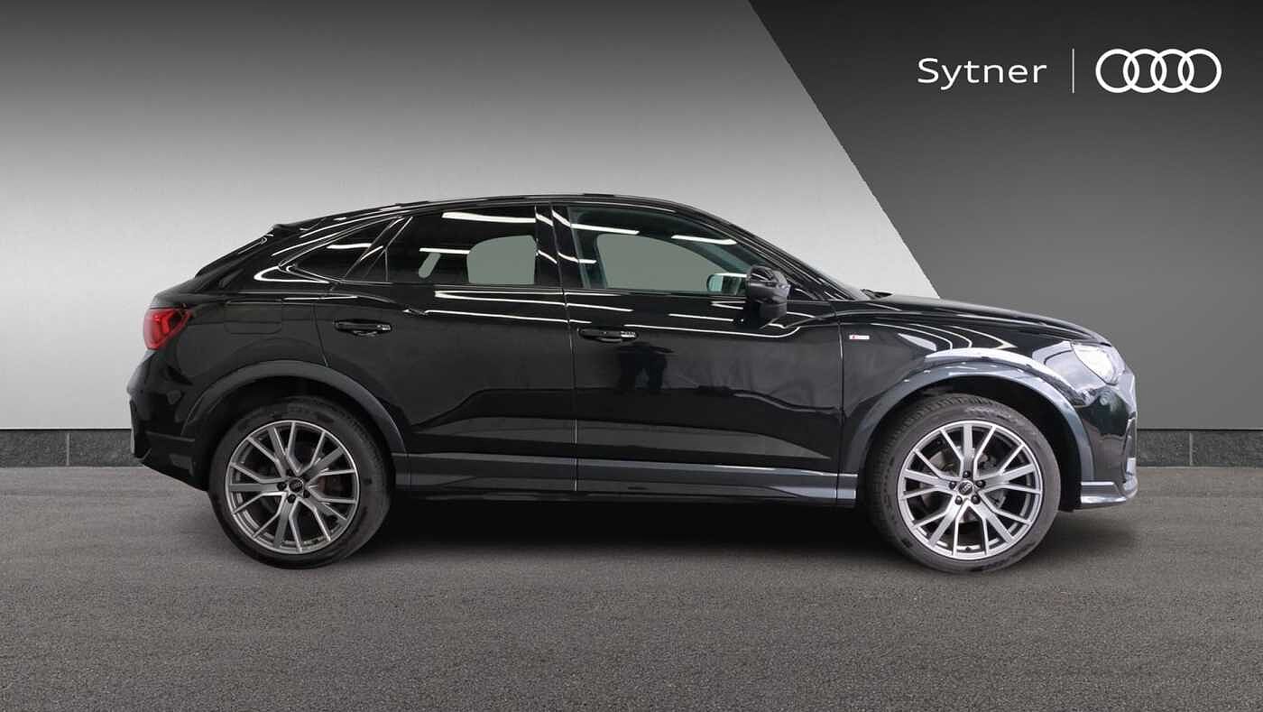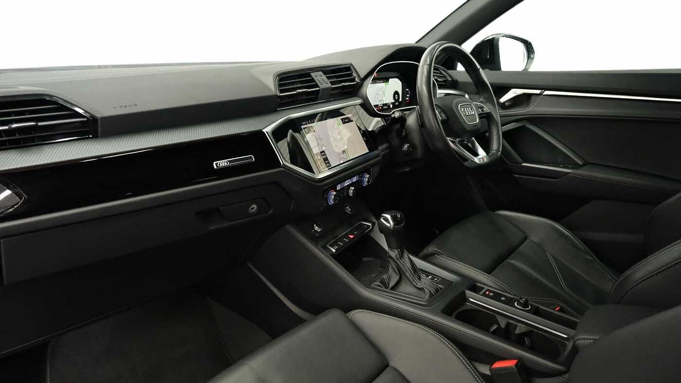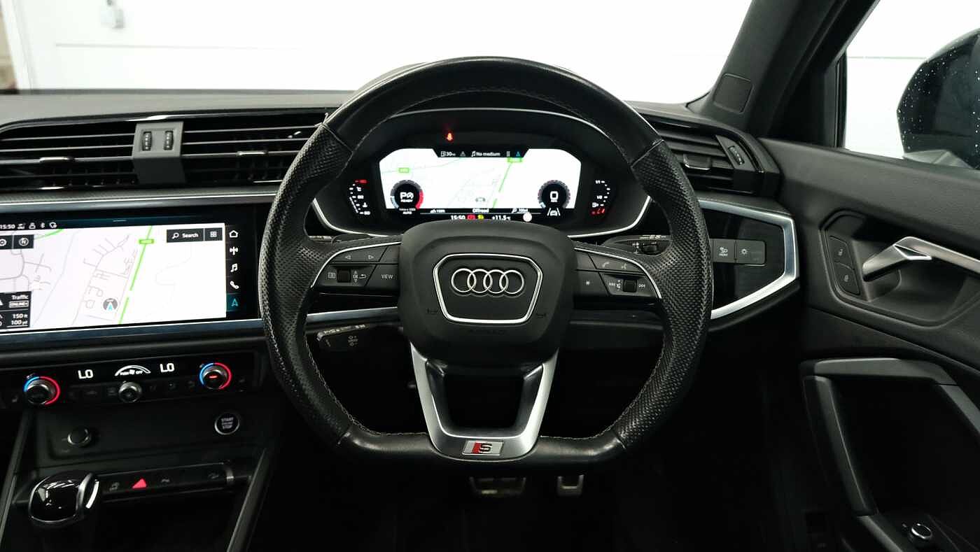 "features": "Audi drive select, Audi lane departure warning, Audi Virtual Cockpit - 10.25\" display, Bluetooth interface, Camera based traffic sign recognition, Legal emergency call, MMI Navigation Plus with high resolution 10.1 inch touchscreen colour display, Power operated tailgate, Progressive steering, Service interval indicator, Smartphone interface includes wireless Apple carplay/Android Auto, Start stop system with recuperation, Voice control system with natural language interaction, Sports suspension, 2 USB-C ports with charge and data functions, 6 passive loudspeakers, DAB digital radio module, Acoustic windscreen, Auto dimming frameless rear view mirror, Diffuser grille in grained matt black, Diffuser trim in selenite silver, Electrically folding, adjustable and heated door mirrors with integrated LED side indicators and kerb view function for passenger side, Front and rear electric windows, Front fog lights, Front underbody protection in manhattan grey paint finish, High gloss black finish B and C pillars, LED Dynamic rear indicators, LED headlights with LED daytime running lights, LED rear lights, LED third brake light, Privacy glass dark tinted rear and rear-side windows (from B-pillar backwards), Rain and light sensors, Rear side wing doors, Rear underbody protection in matt black, Rear wiper, Variable front intermittent wipers, 12V socket in rear centre console, 3 seat bench in 2nd row, 40:20:40 folding with manual adjustment for 60:40 forwards/backwards position and backrest angle, Adjustable rear seat bench/backrest with centre armrest and cupholder, Black cloth headlining, Dual zone electronic climate control, Front and rear black floor mats with contrast stitching, Front and rear headrests, Front and rear roof module including reading lights, Front centre armrest, Glove compartment lighting, Height and reach adjustable steering wheel, Illuminated door sill trims with S logo, ISOFIX child seat mounting for front passenger with airbag deactivation and outer rear seat including top tether attachment point for outer rear seats, Luggage compartment light right in white, Luggage compartment sill protection in stainless steel, Manual front seats with height adjustment, Perforated leather gearknob, Single front passenger seat, Stainless steel pedals, Ambient lighting pack - Q3, Black styling pack - Q3, Non smoking pack - Q3, 3x3 point rear seatbelts, 6 airbags - Driver, front passenger, curtain and side windows, Audi pre-sense front with pedestrain and cyclist recognition, Electrically operated child locks on rear doors, Electromechanical parking brake, Electronic stabilisation control including ABS, ASR and EDL, Front seatbelt reminder, Hill descent control, Hill hold assist, Pre sense basic, Seatbelt monitoring, Tyre pressure warning, Warning triangle and first aid kit, Anti theft alarm, Anti theft wheel bolts, Immobiliser, Remote central locking, Aluminium look interior elements, Black dashboard, Detail dashboard around MMI touch colour display in glass look, black with surround in aluminium look, Leatherette door armrest, Piano black inlay, 19\" 5 twin arm design diamond cut audi sport alloy wheels in matt grey look, ",