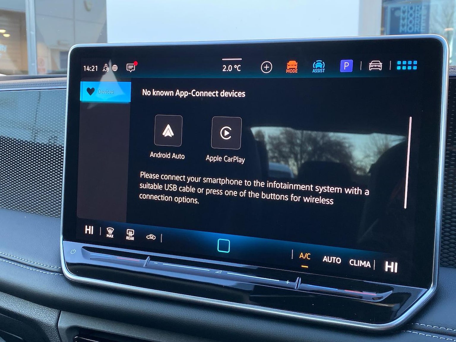 "Smartphone interface includes wireless Apple carplay/Android Auto"