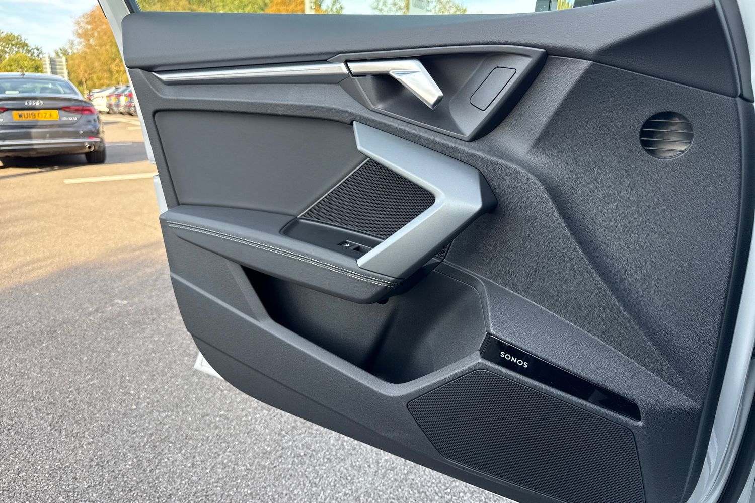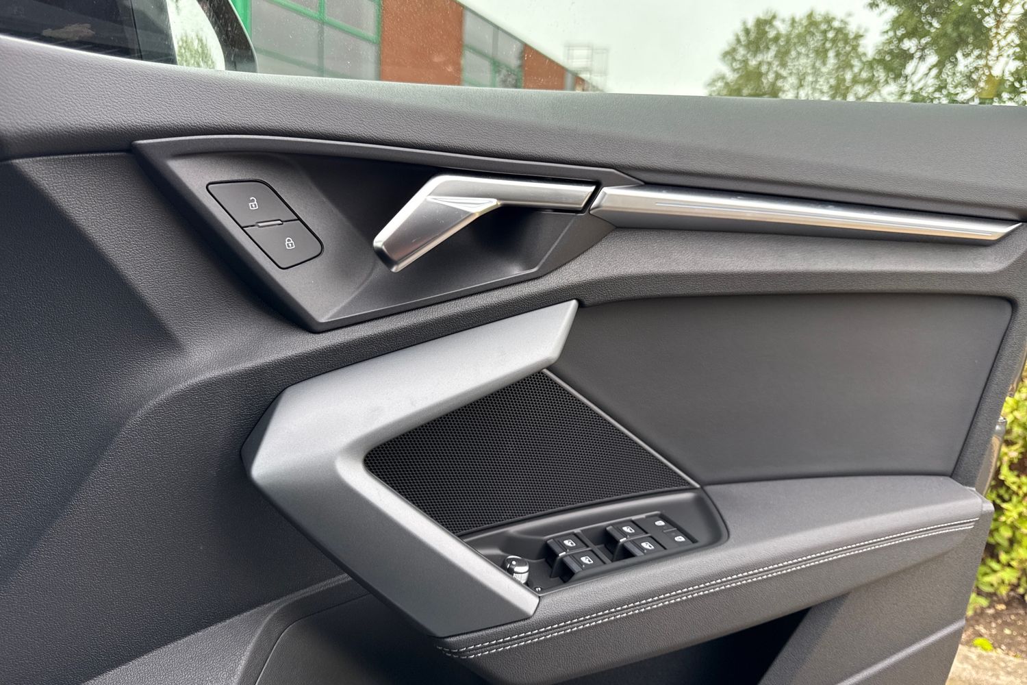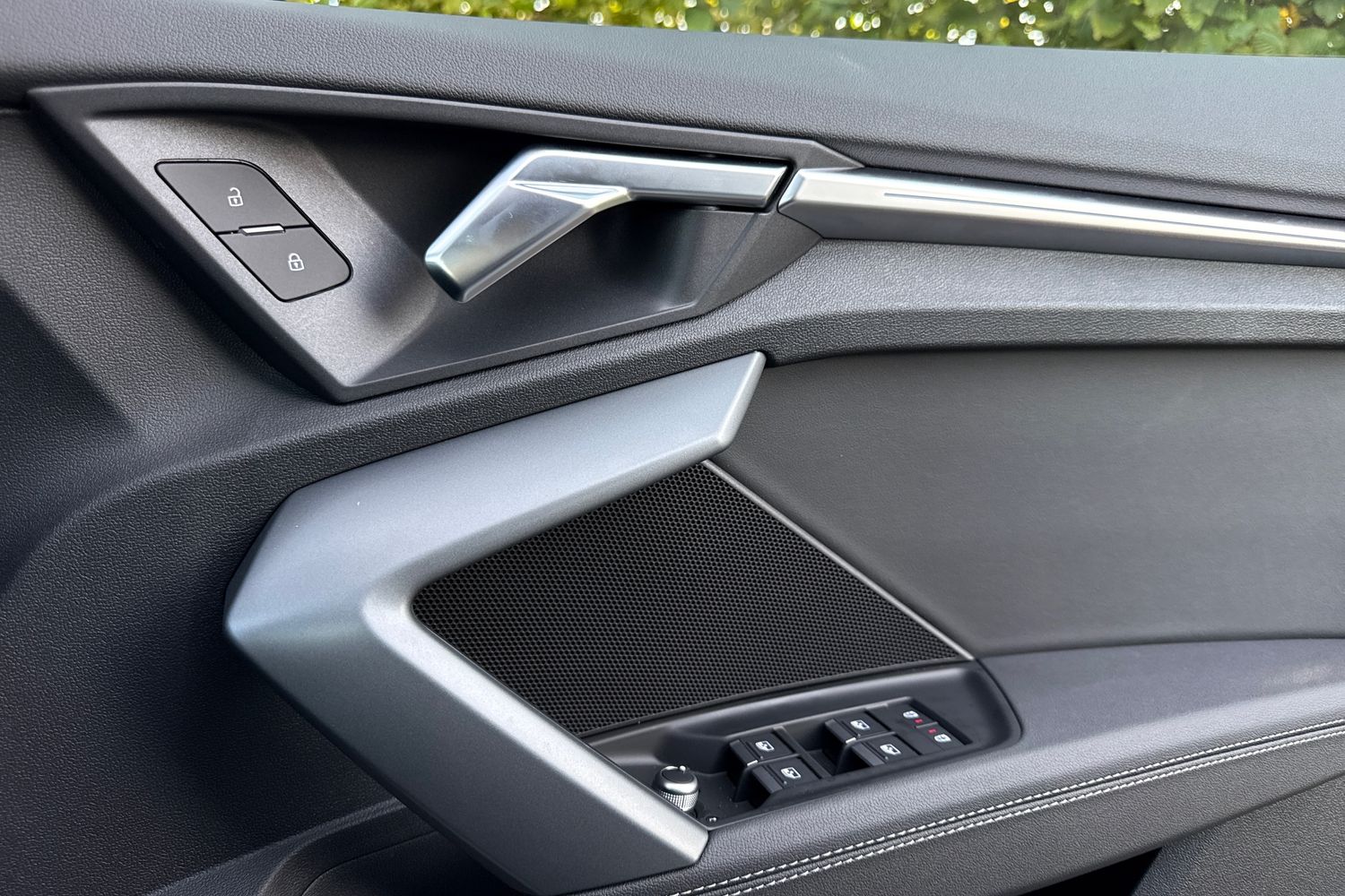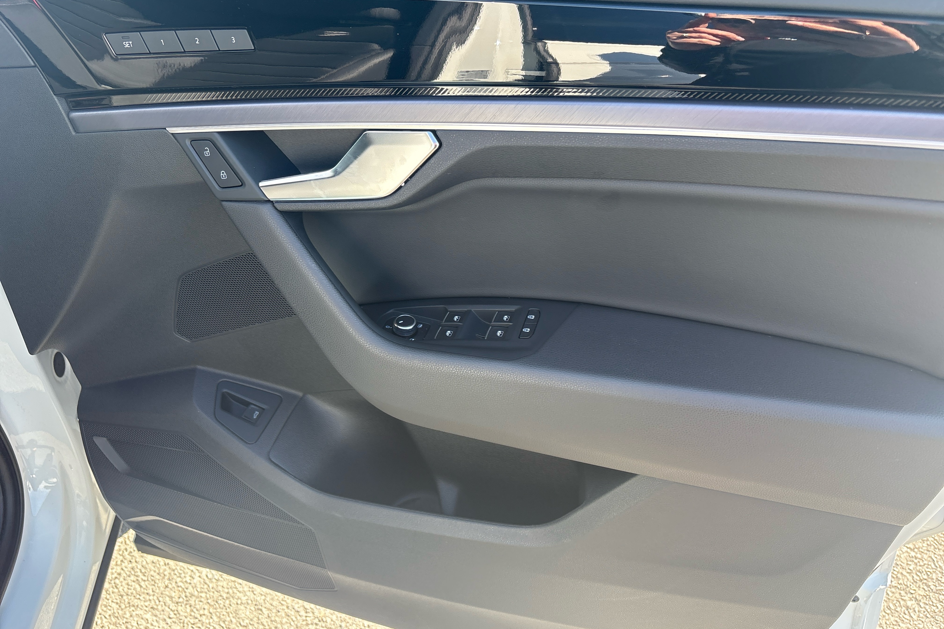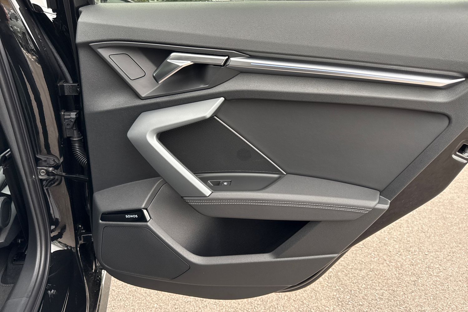 "Black door lower parts with chrome trim",