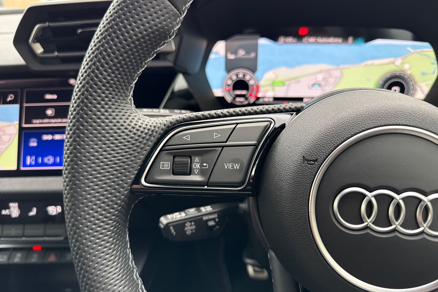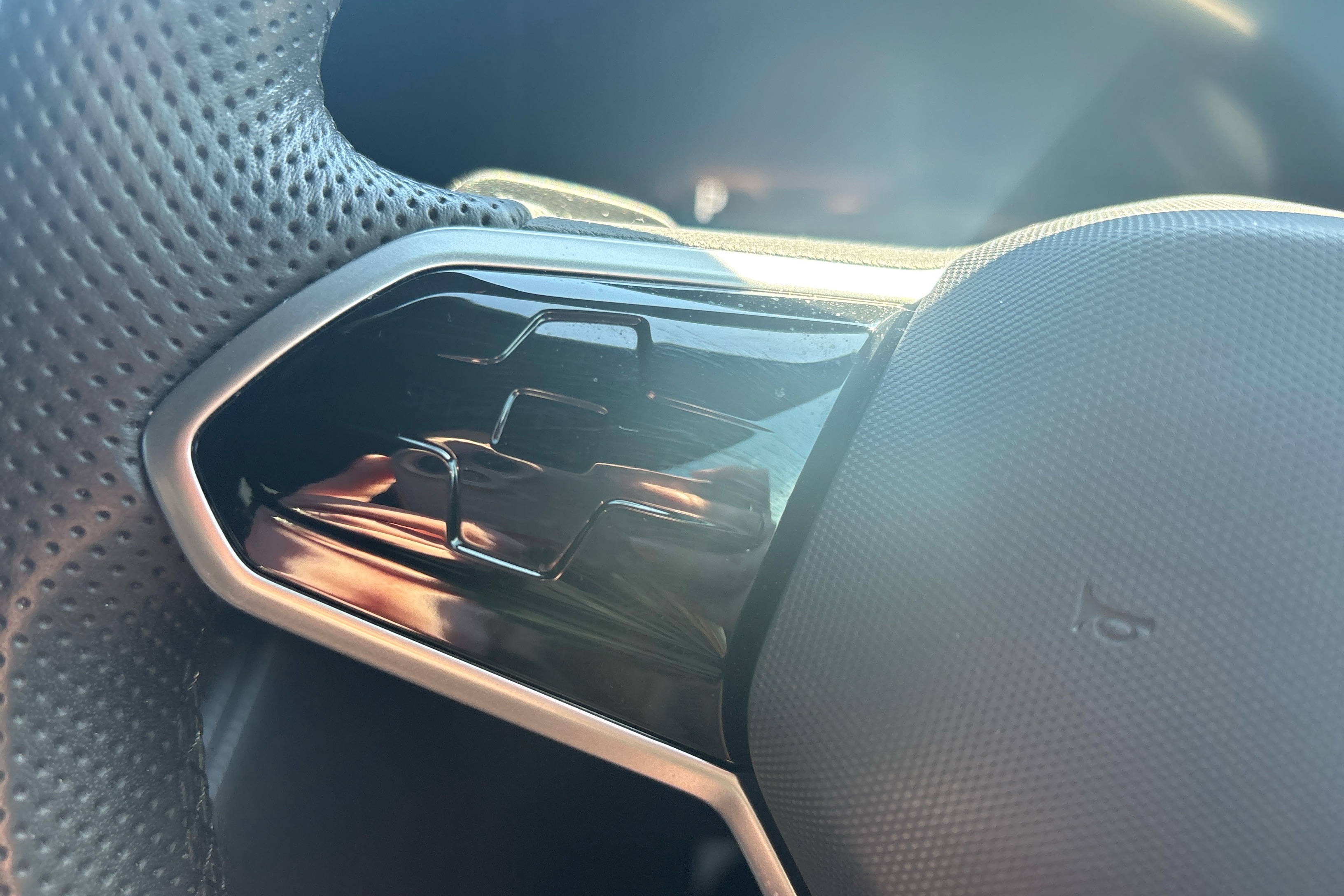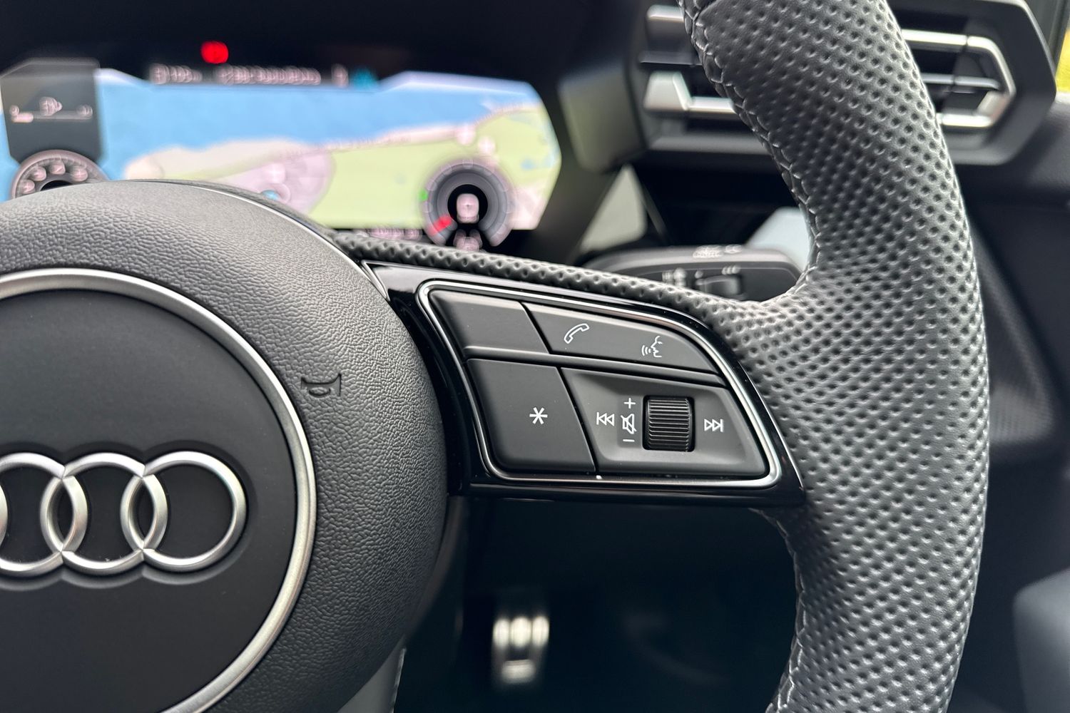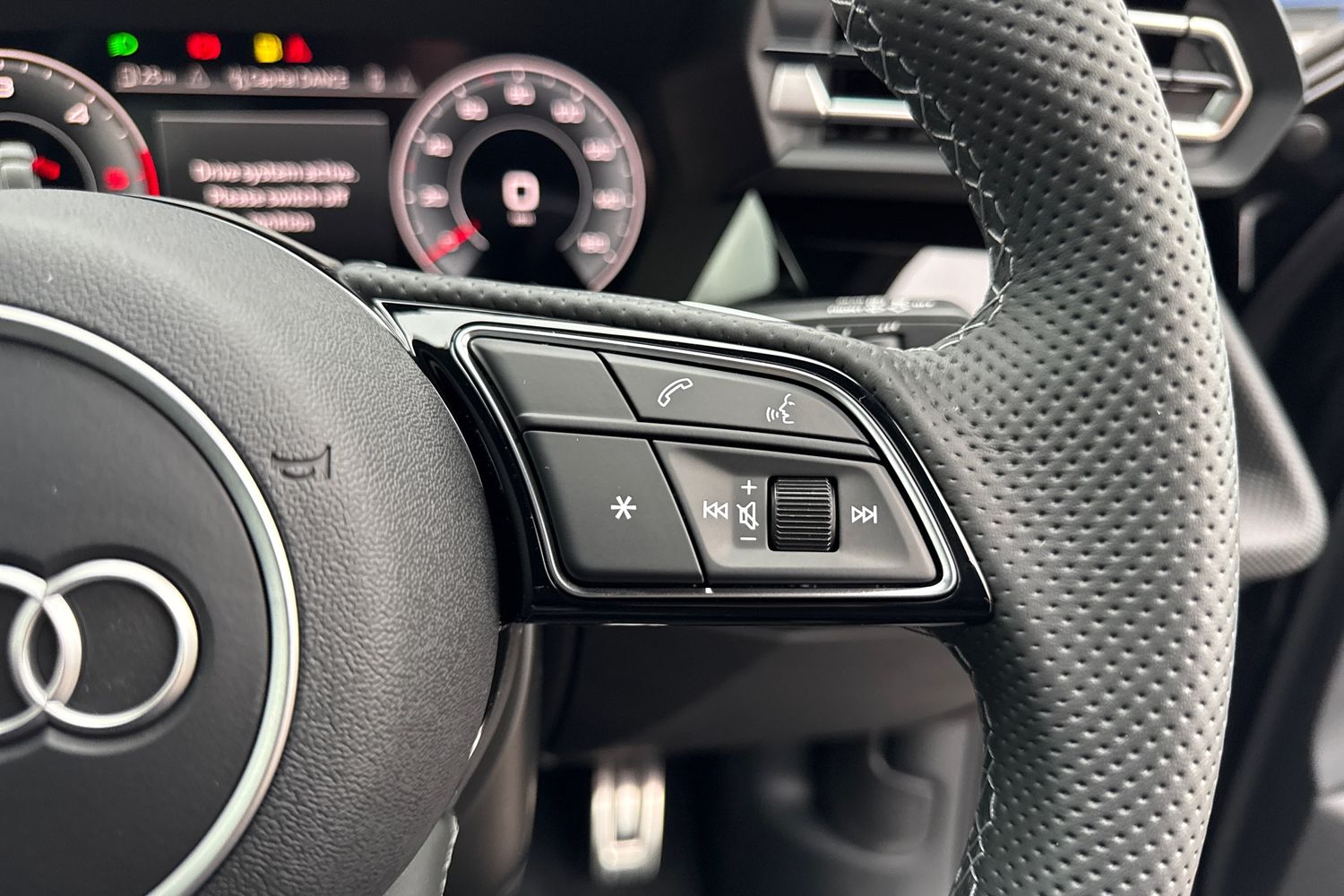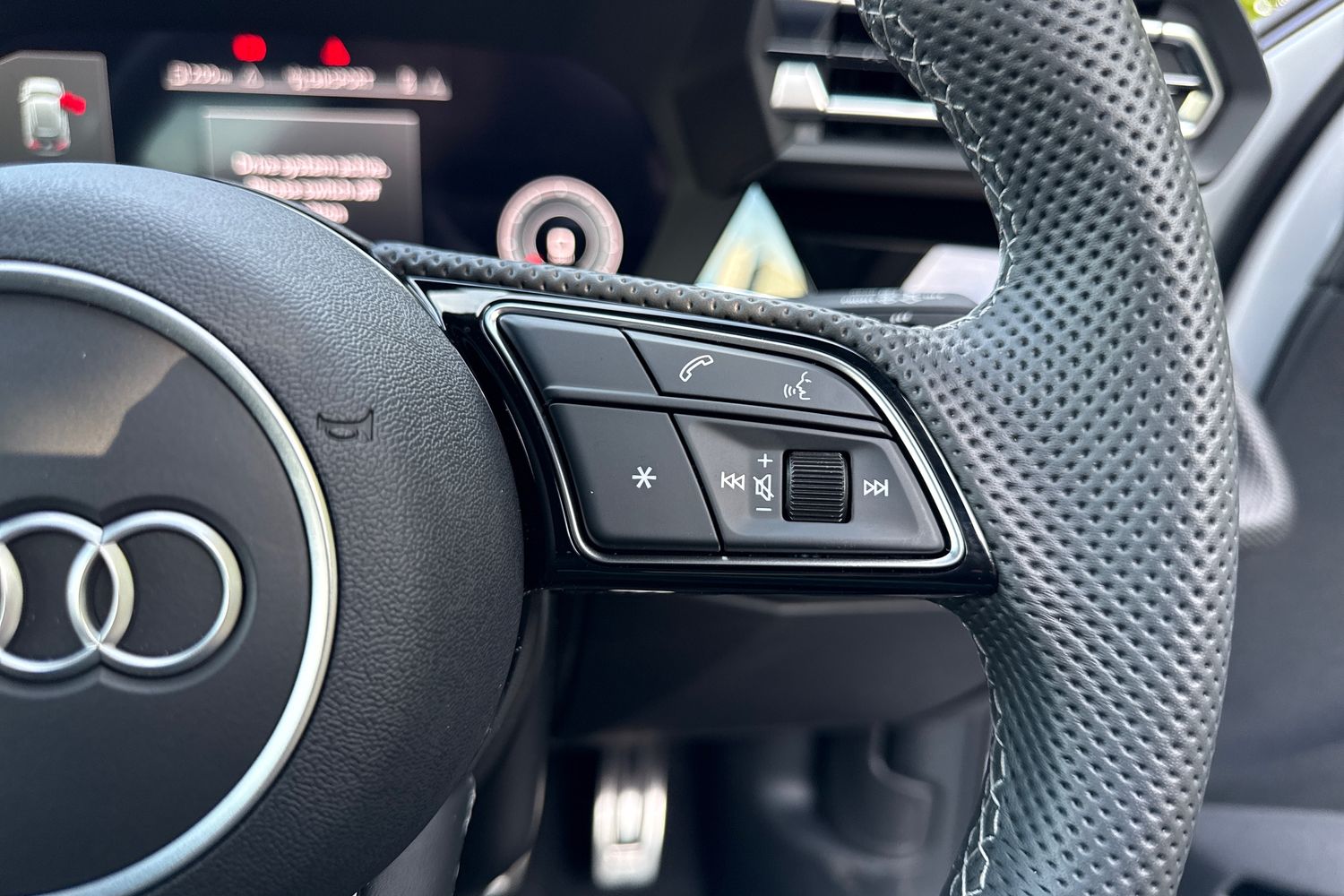 "3 spoke leather wrapped multifunction steering wheel",