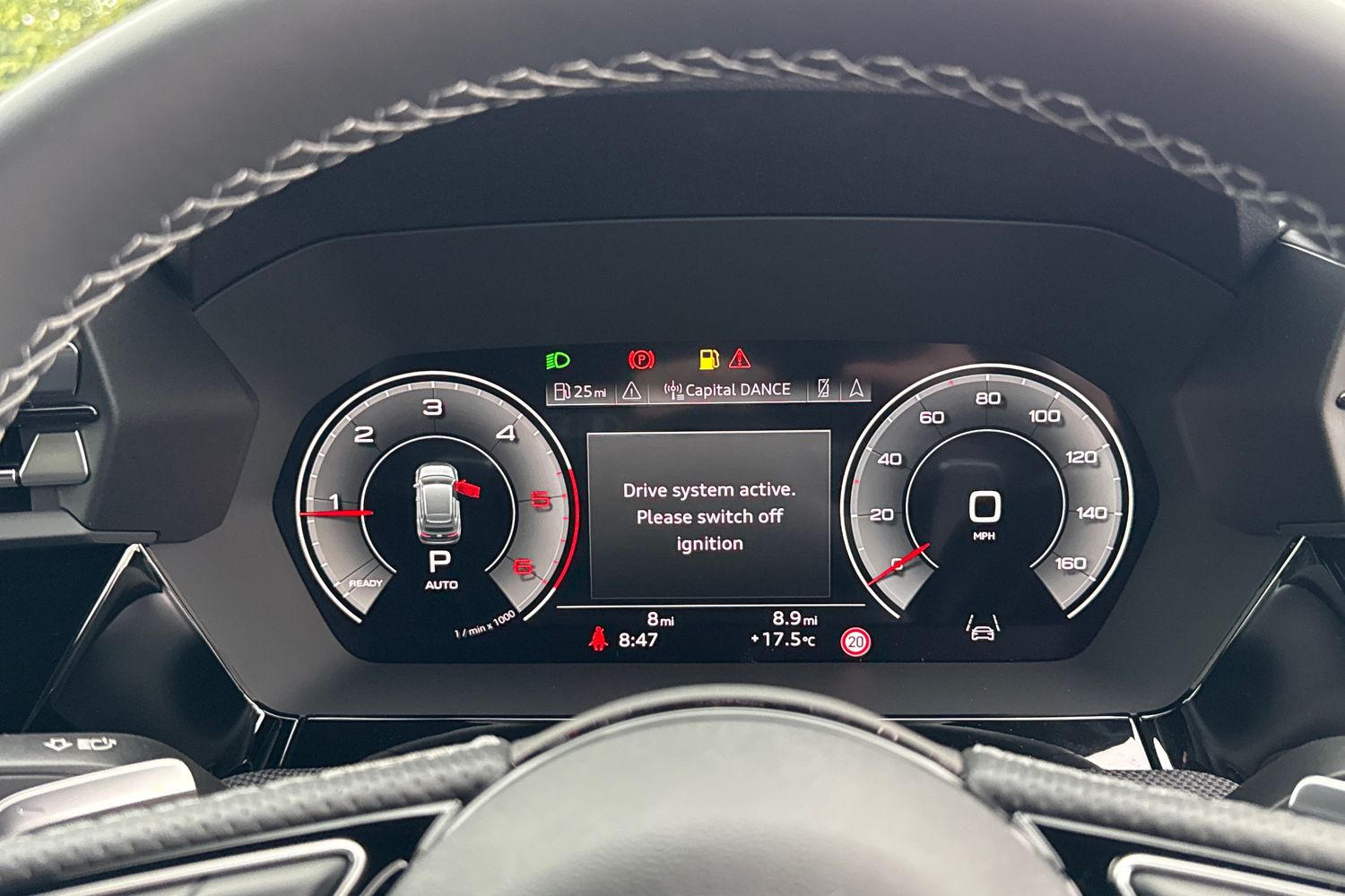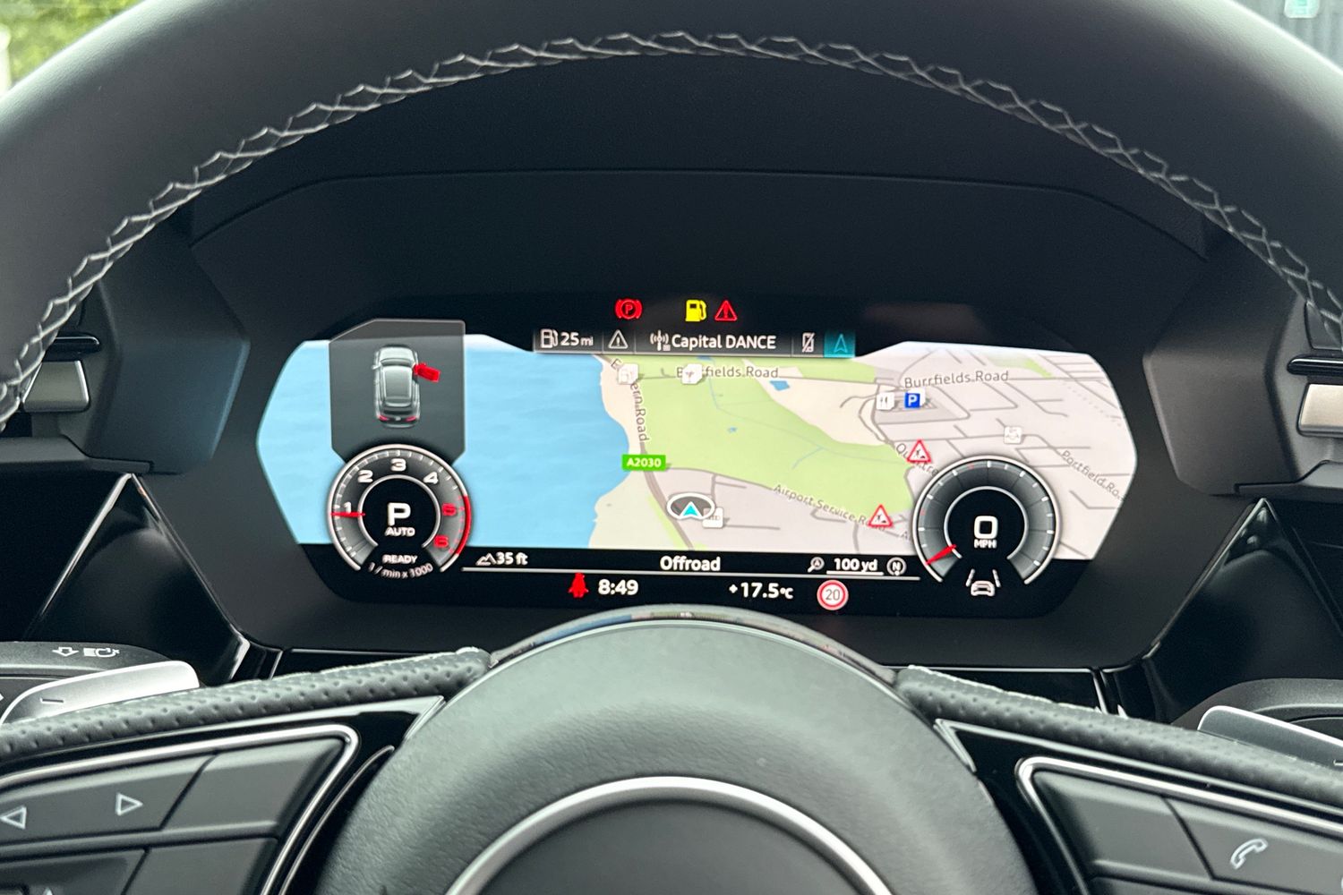"Lane assist with warning text instrument cluster",