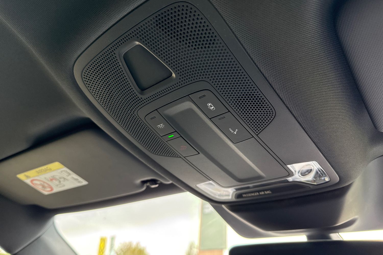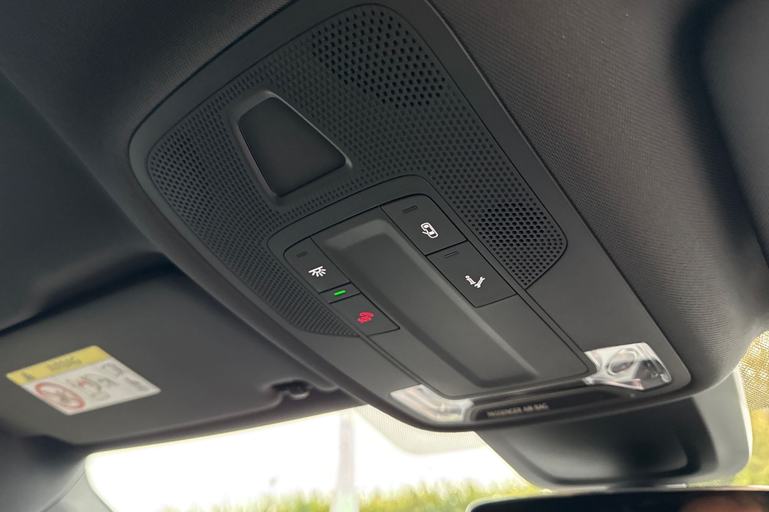 "Illuminated vanity mirrors in sun visors with air bag label on sun visor and b-pillar",