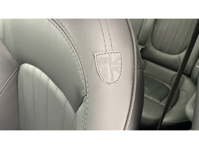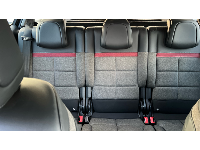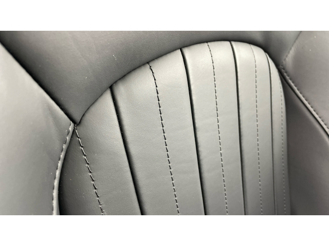 "Cloth upholstery with black and metallic grey syntech leather inserts",