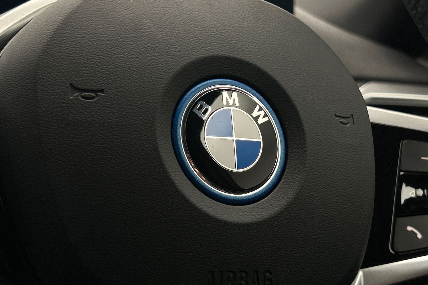 "BMW badge on bonnet and tailgate with blue ring around the badge",