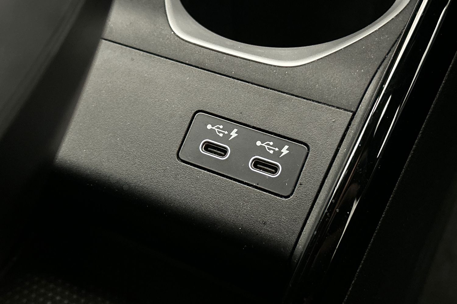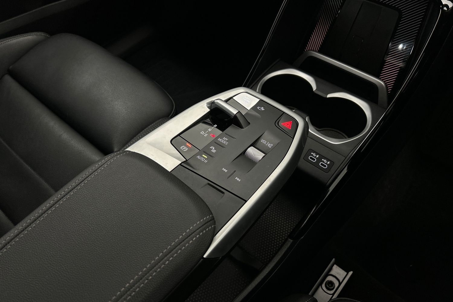 "2 front cupholder in centre console with clamping elements and matt black inlay",