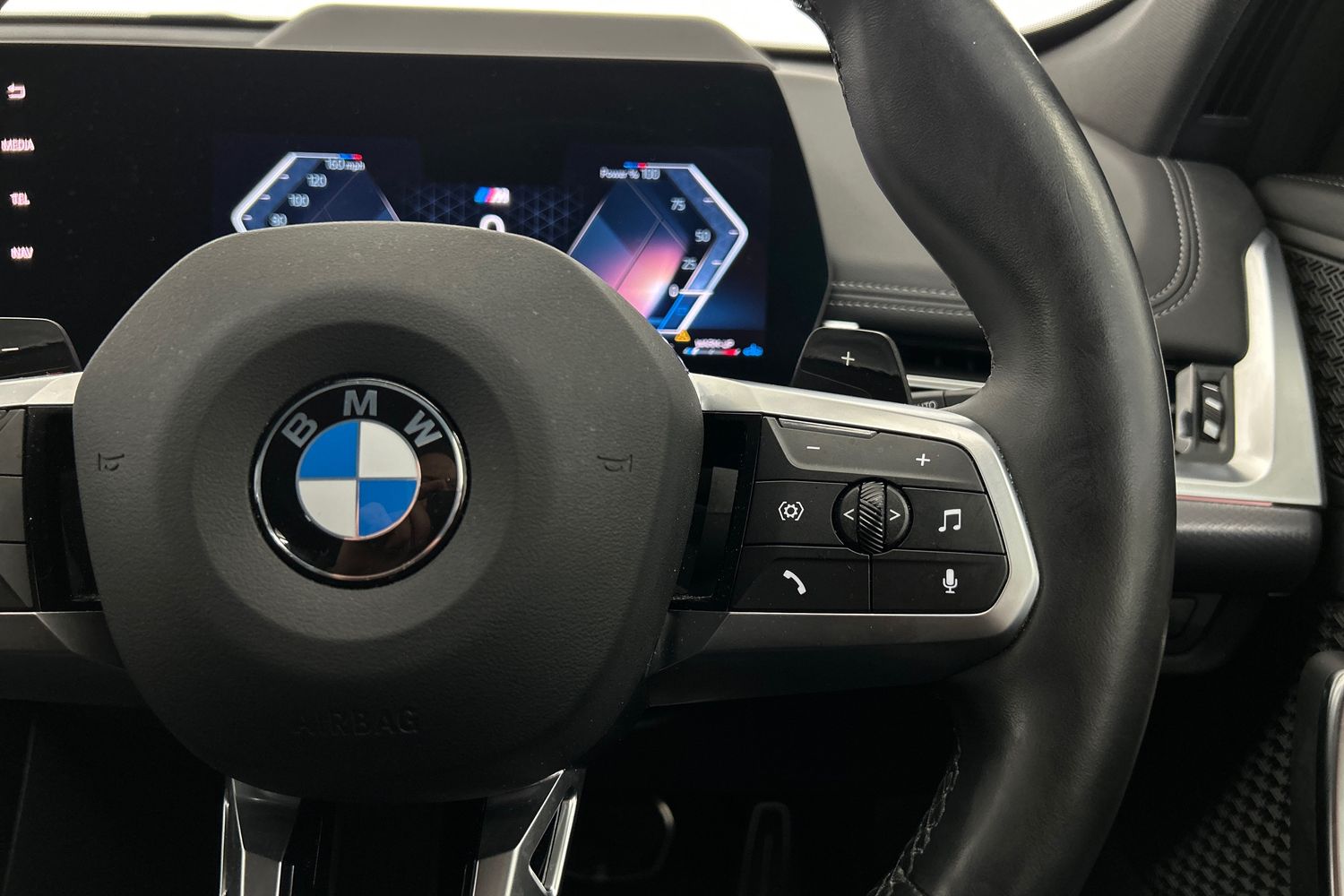 "3 spoke flat bottom M sport leather steering wheel",
