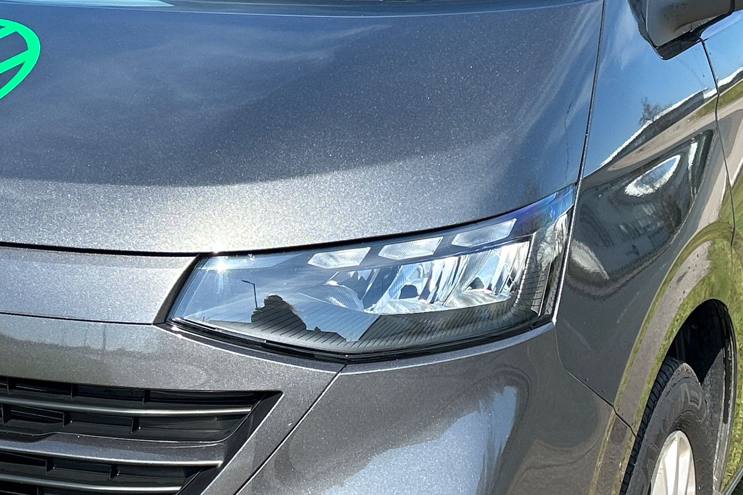 "I badge with blue highlight on front ornamental grille",
