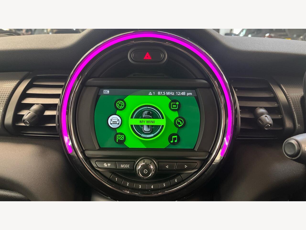 "Mini logo projection on floor from drivers exterior mirror",