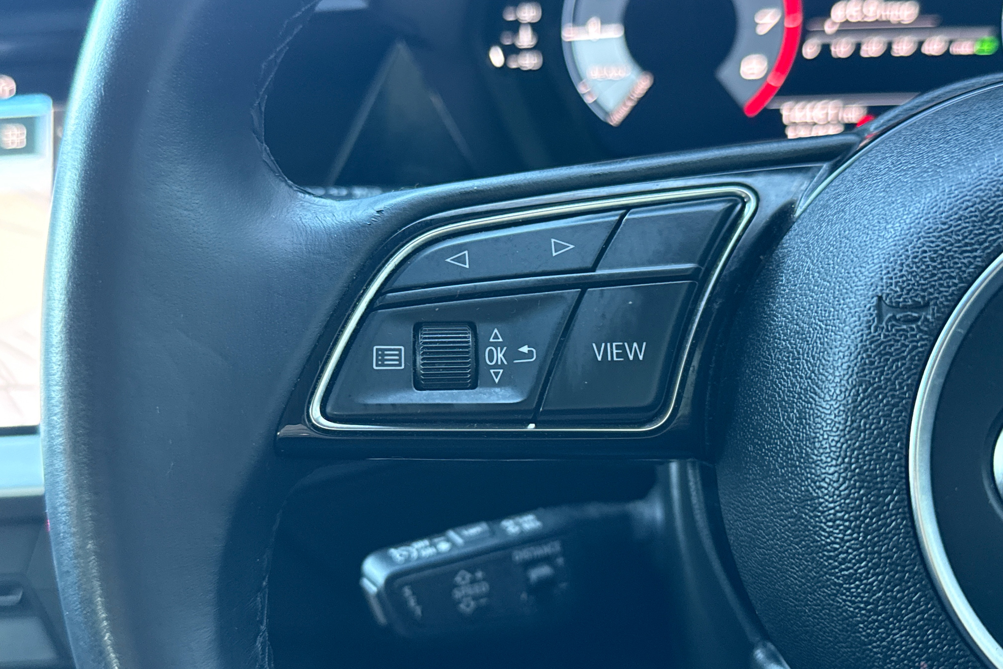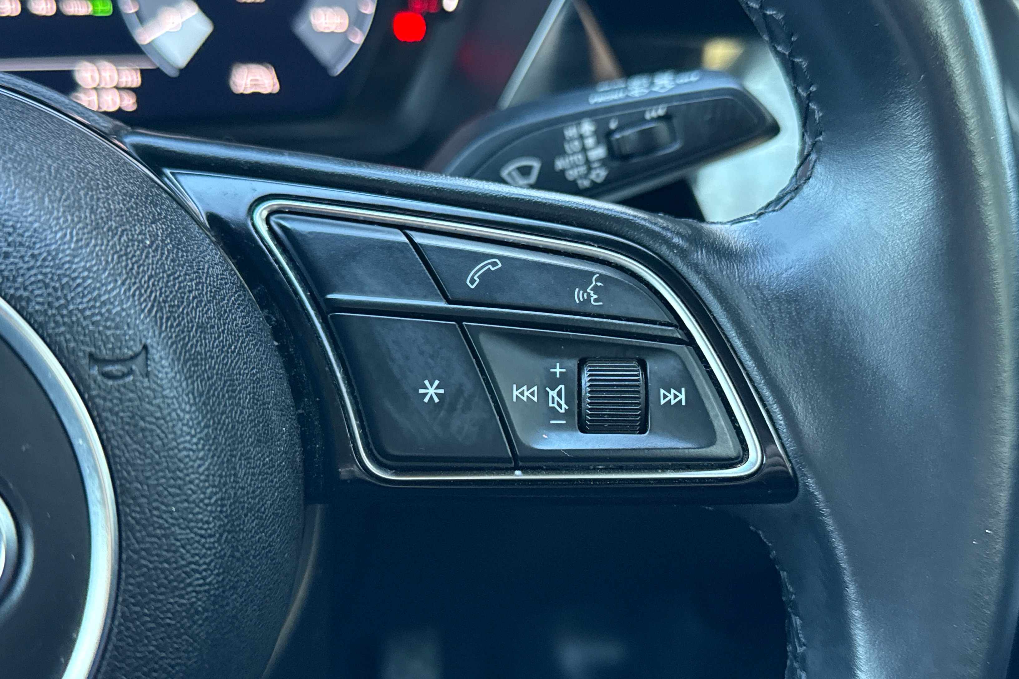 "Leather multifunction flat bottomed sports steering wheel",