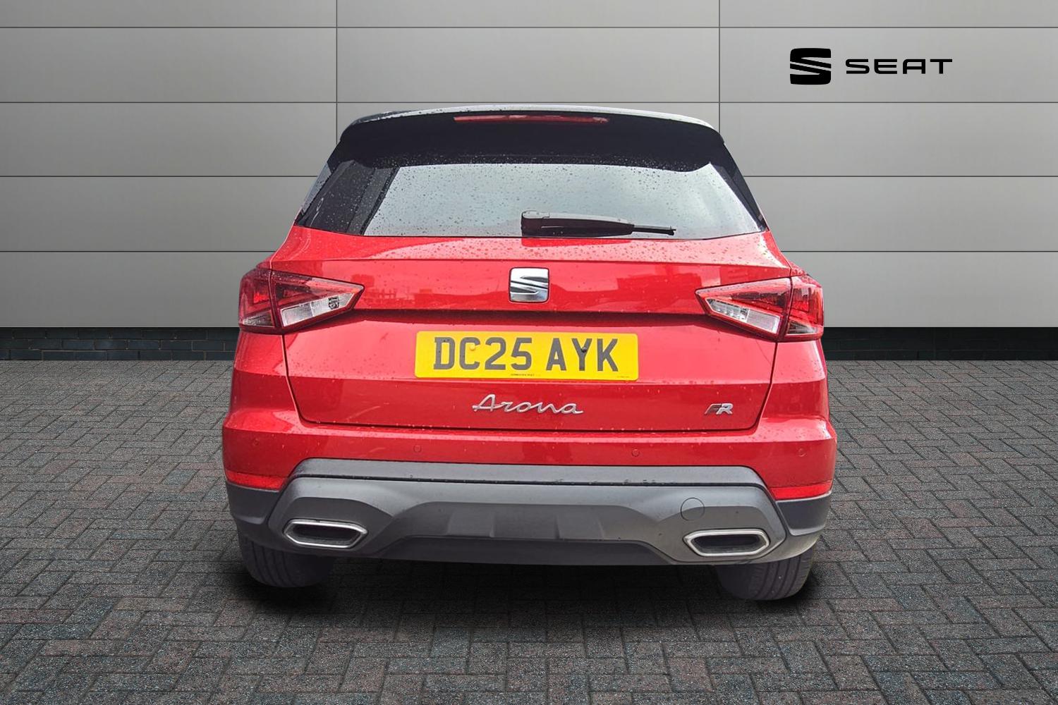 "Rear roof spoiler with FR twin exhausts",