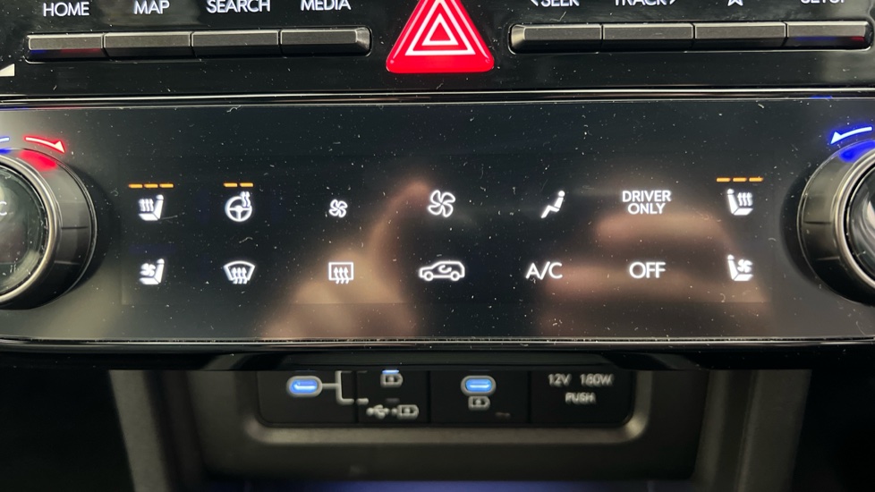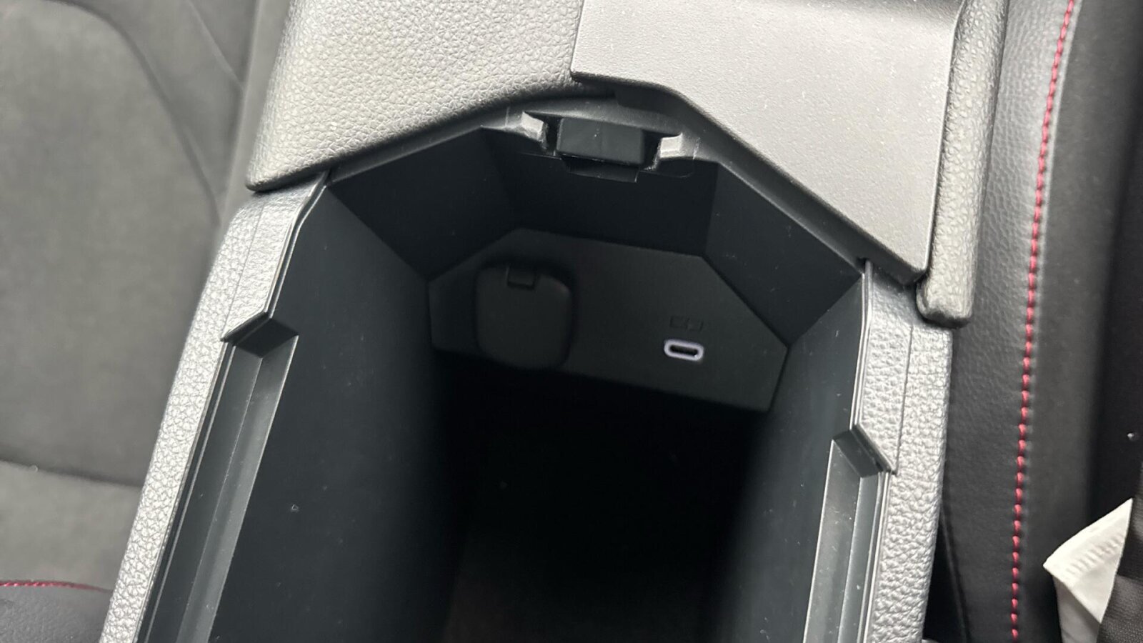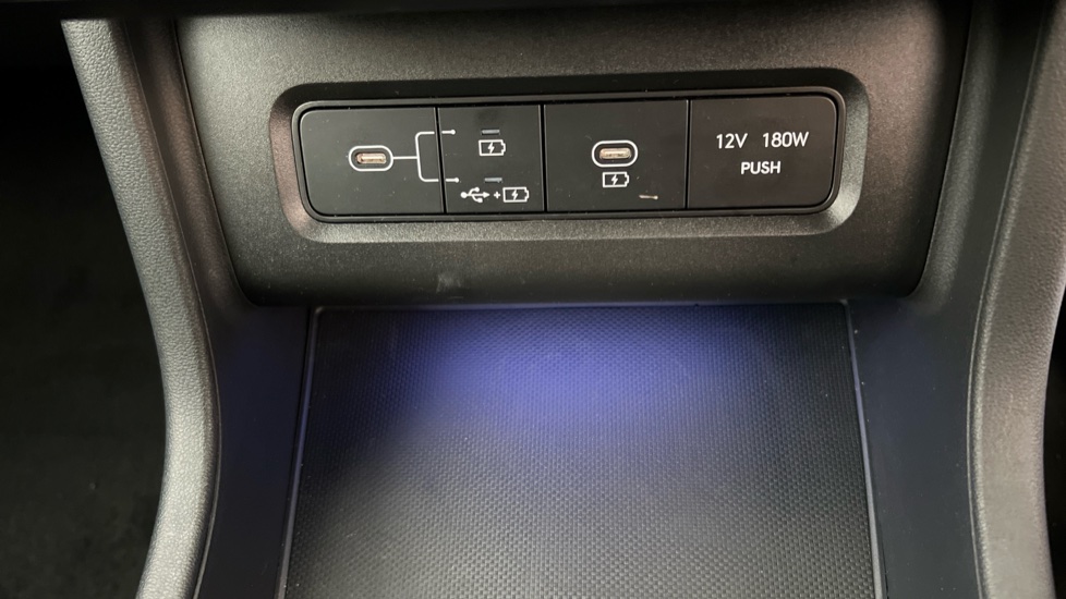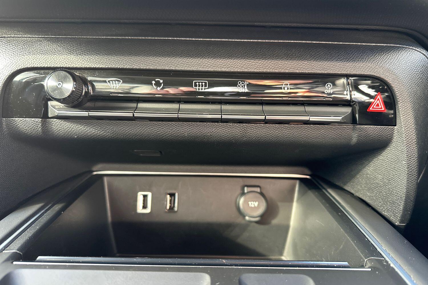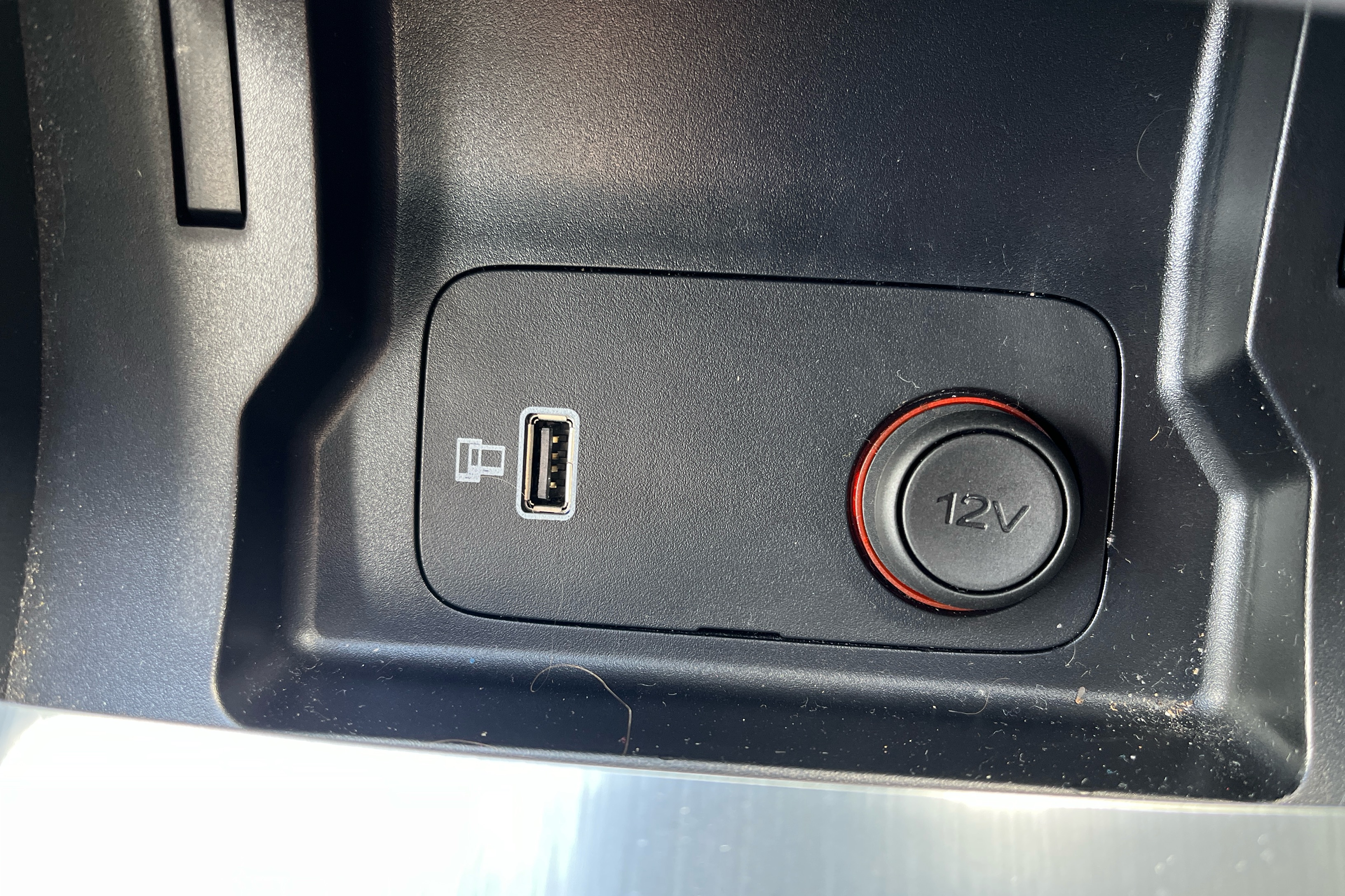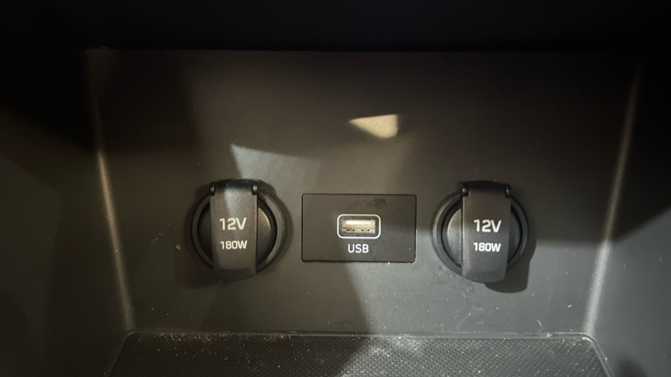 "12V power outlet and 2x USB-A sockets (1x charge+data, 1x charge only) on front part of central console",
