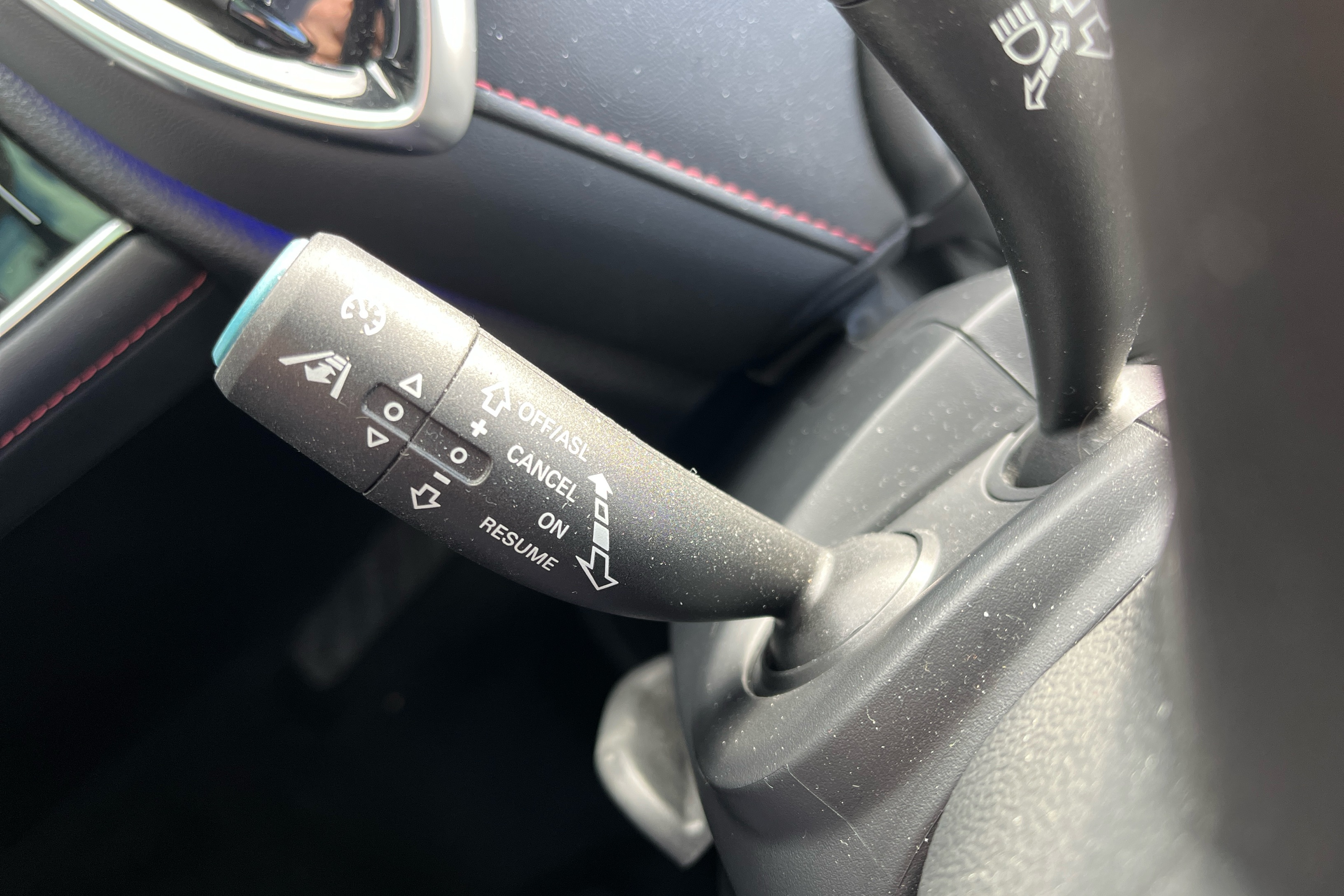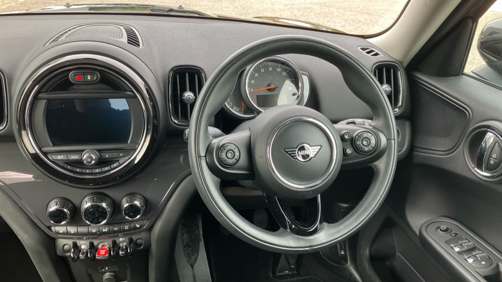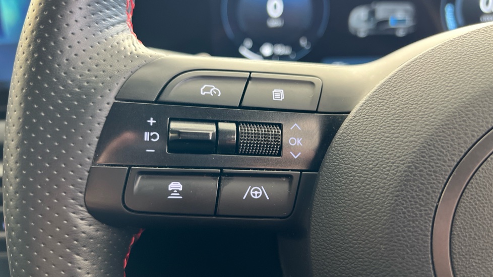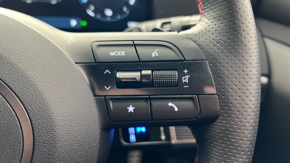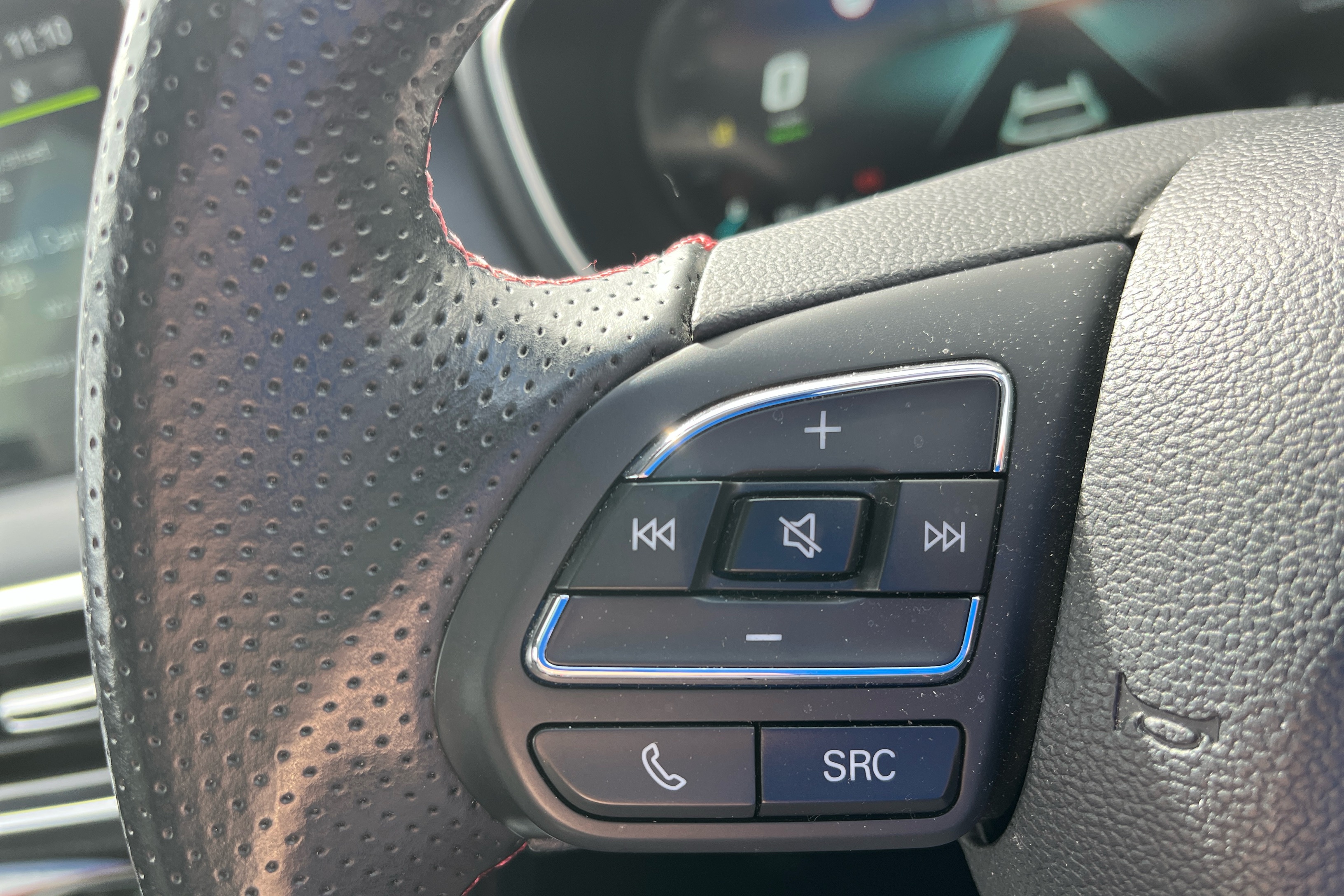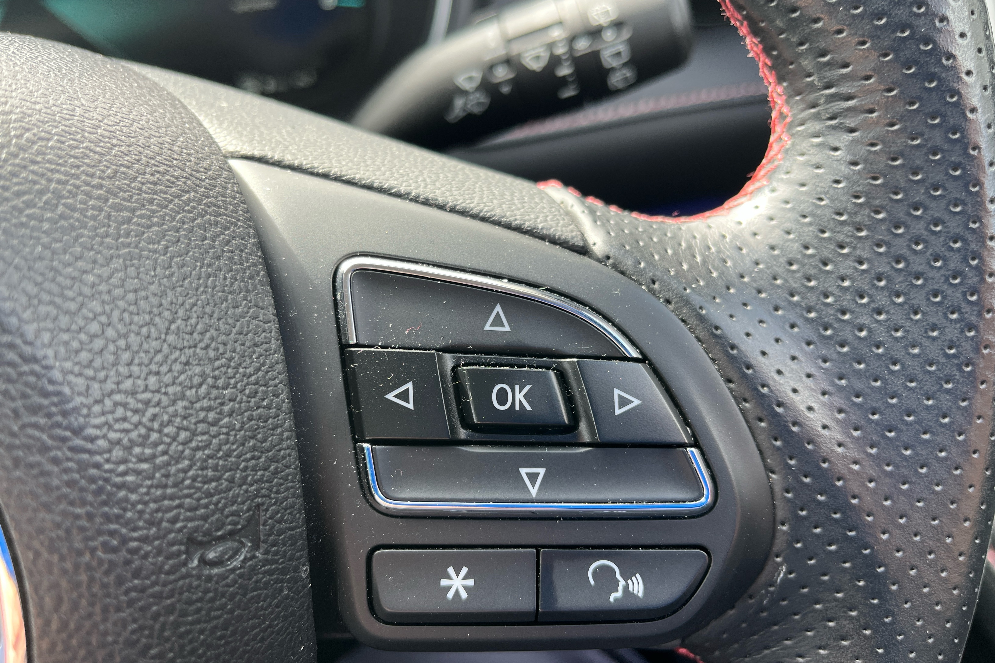 "Multi function leather steering wheel with two command blocks",