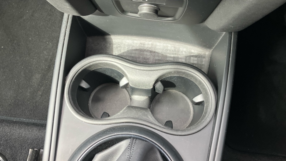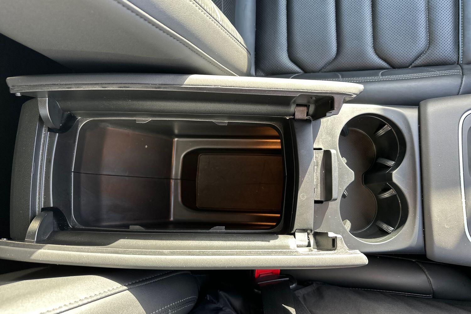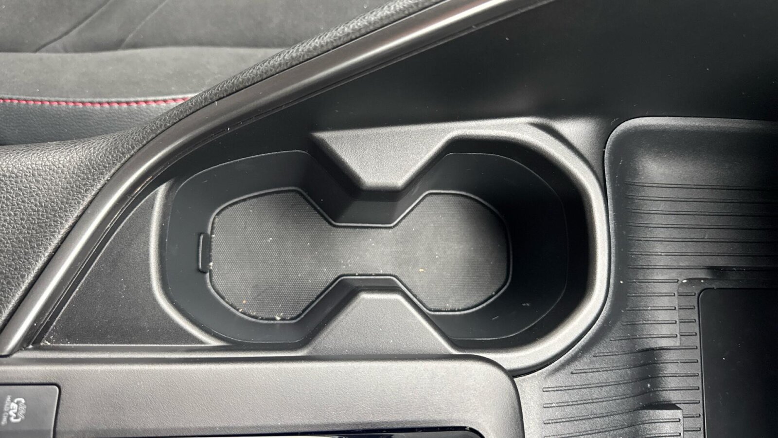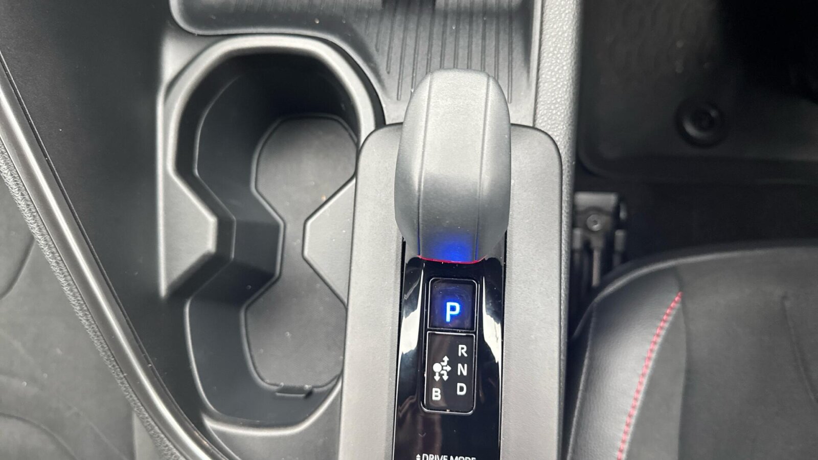 "Two open cupholders with LED lighting in central console"