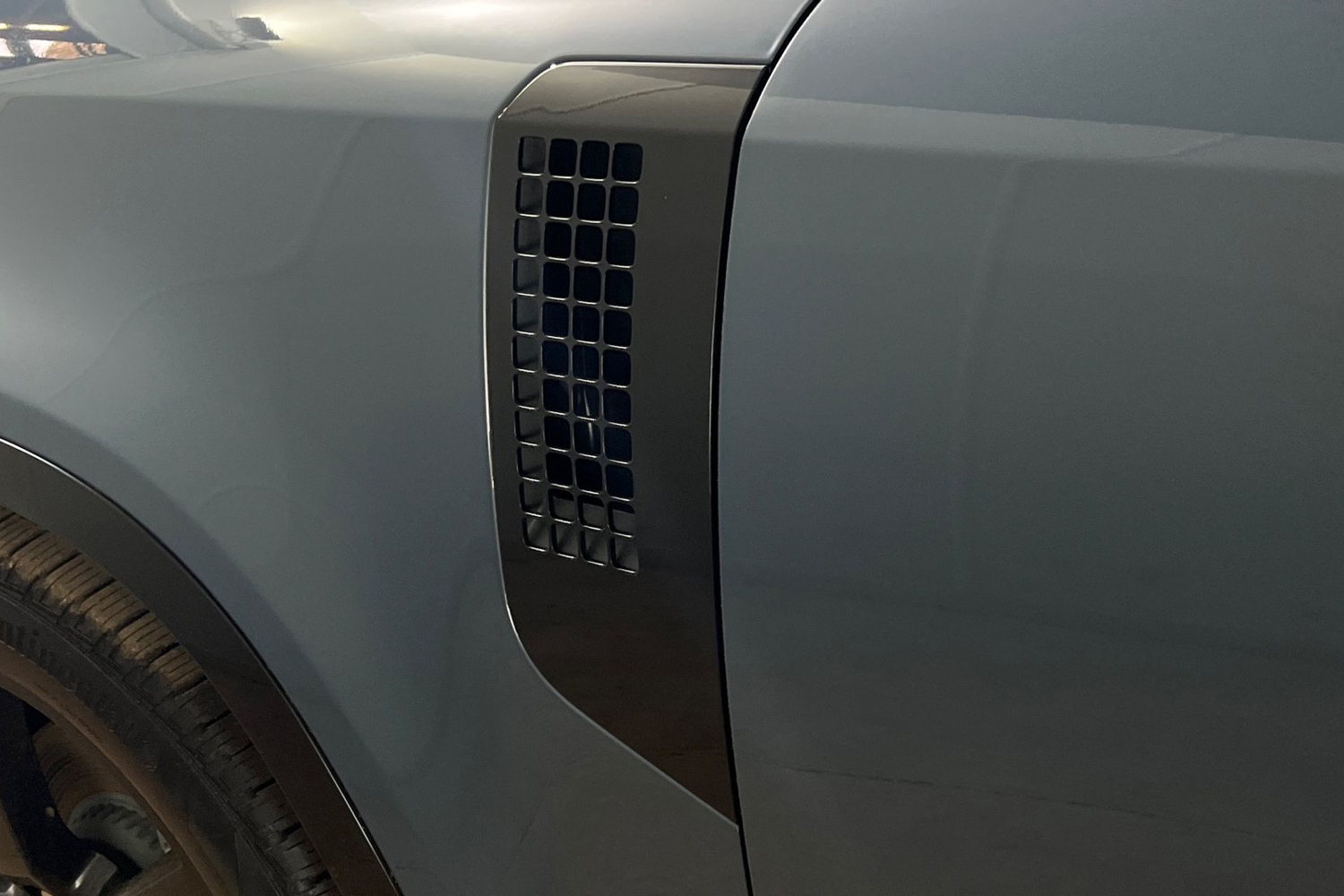 "Glossy black structured grille",