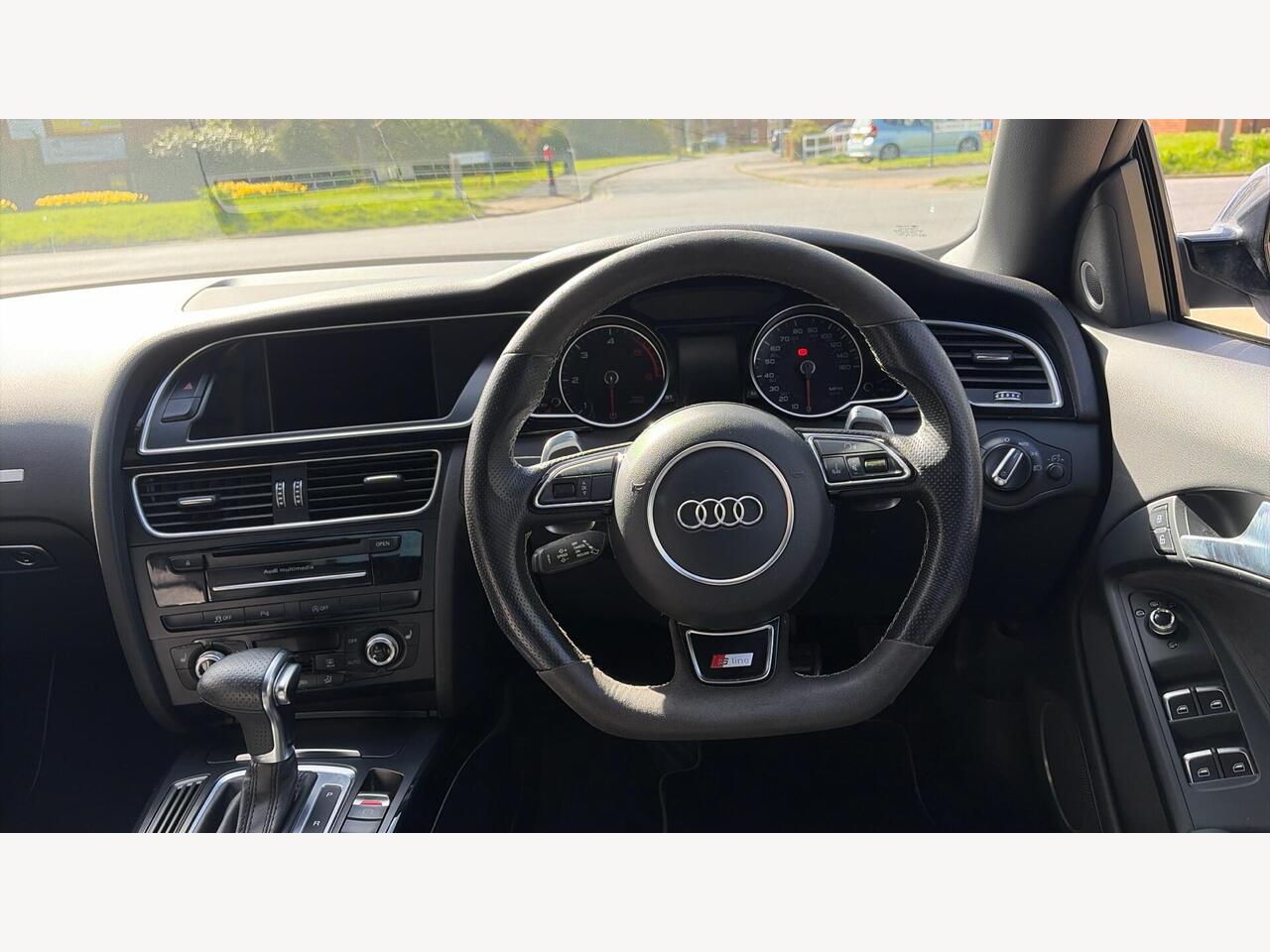 "2 spoke multi-function leather heated steering wheel with paddle shift",
