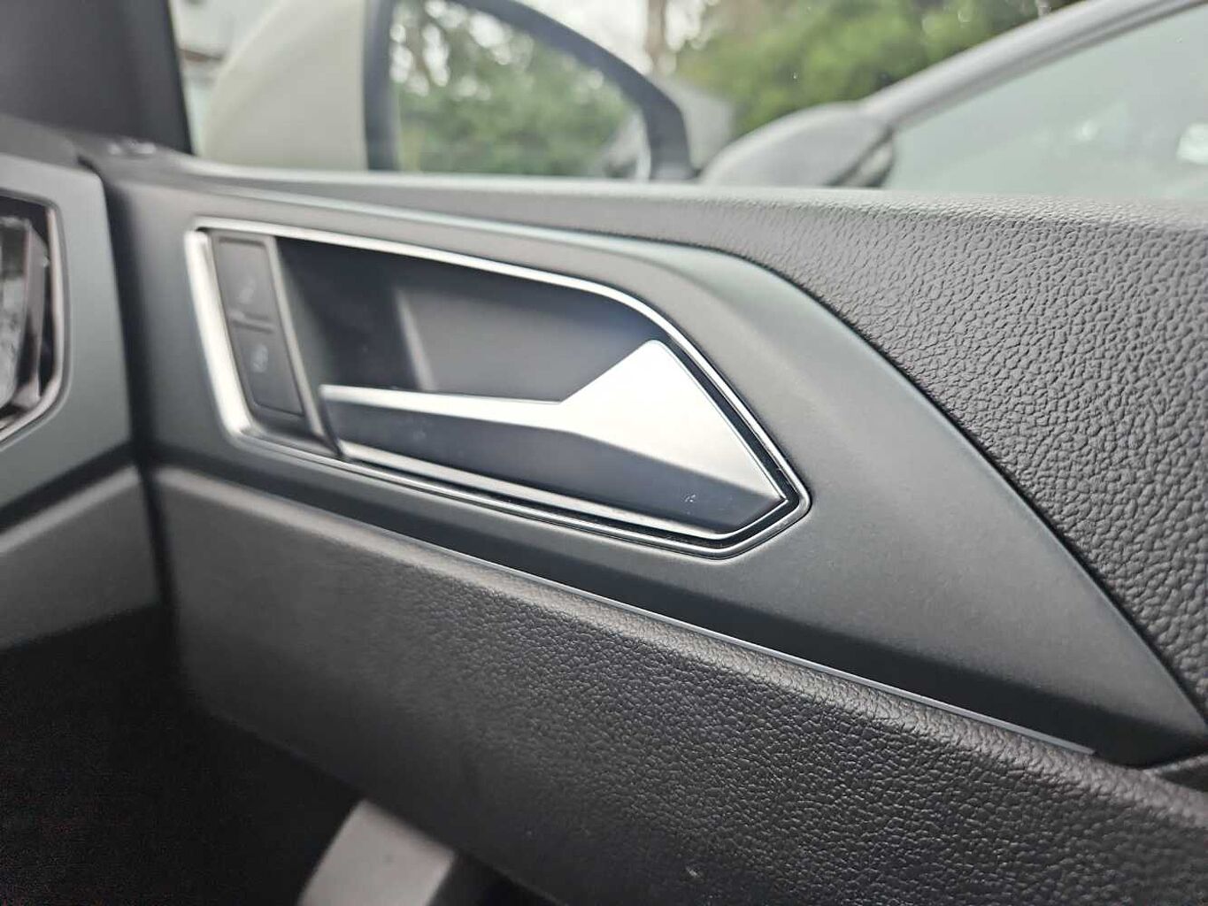 "Inlay in dark matt brushed aluminium, accent surfaces on instrument panel and centre console trim in chrome paint finish, slate grey"
