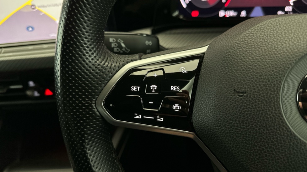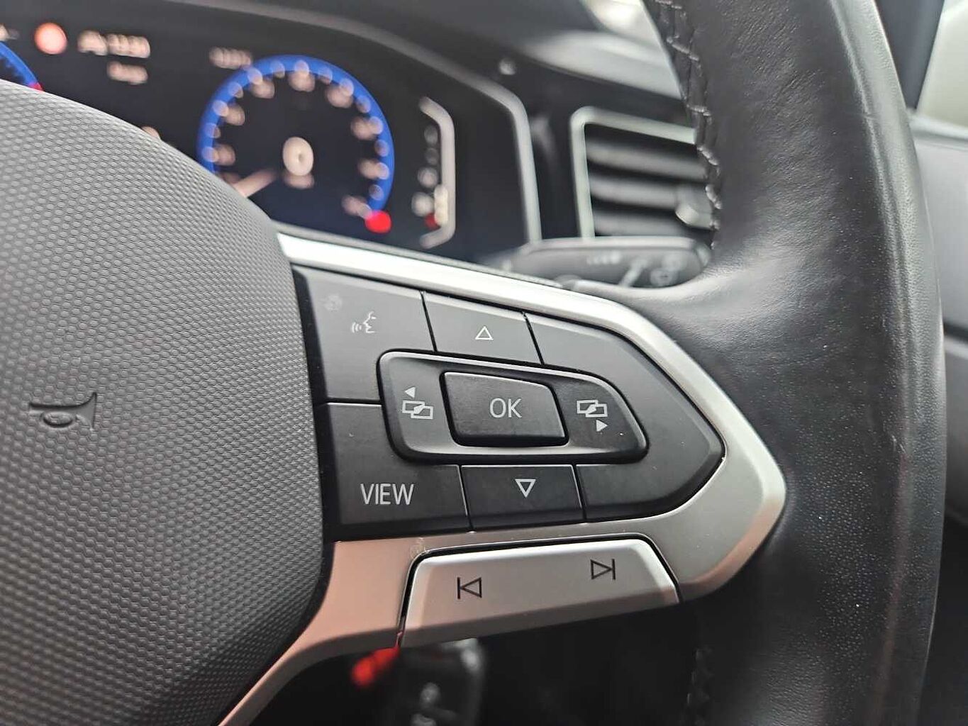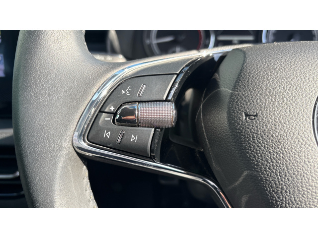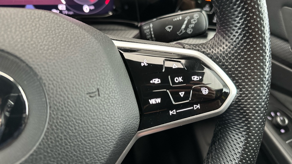 "Flat top and bottom twin spoke leather multifunction sport steering wheel with shift paddles for recuperation",
