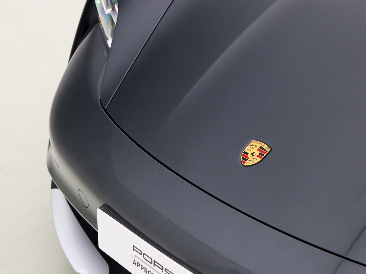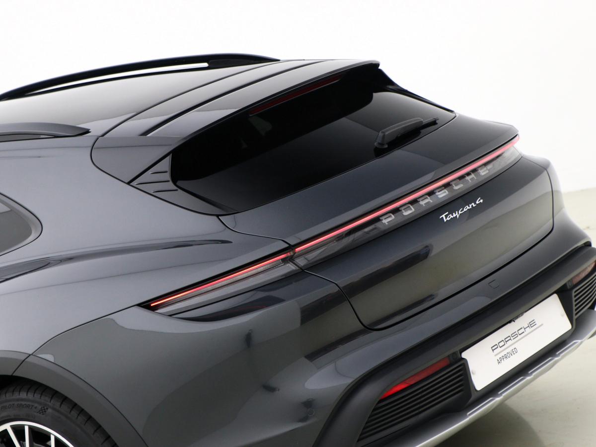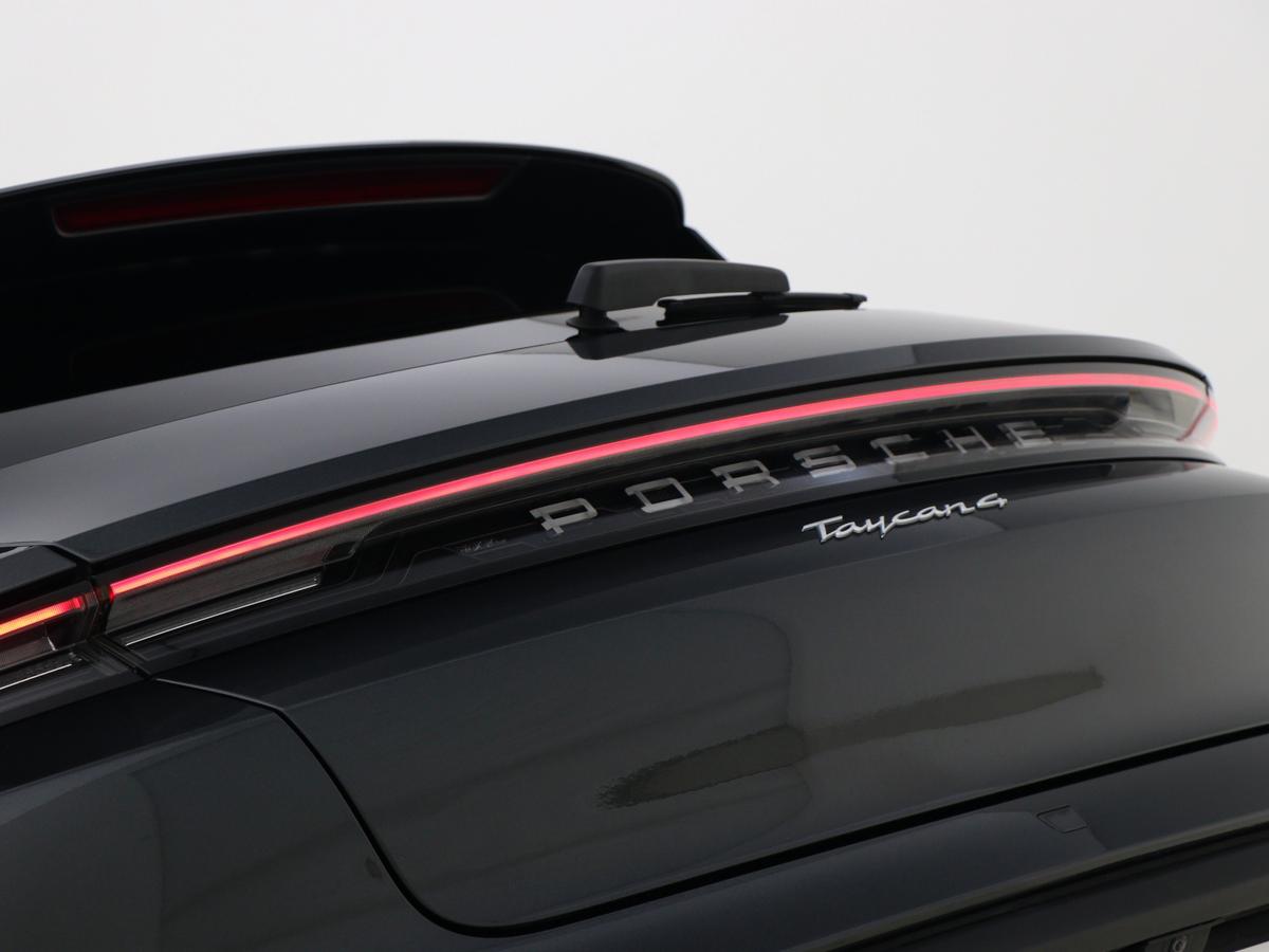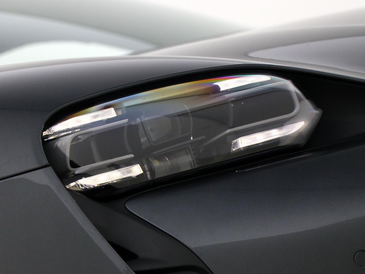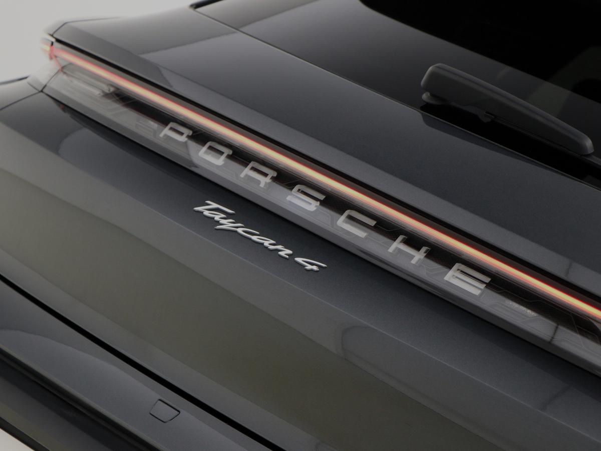 "Porsche lettering integrated into rear taillight strip in satin platinum",