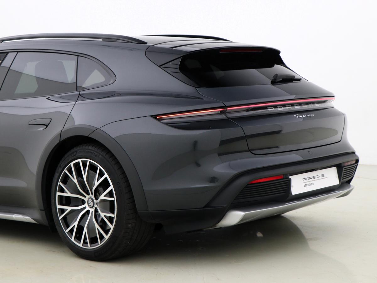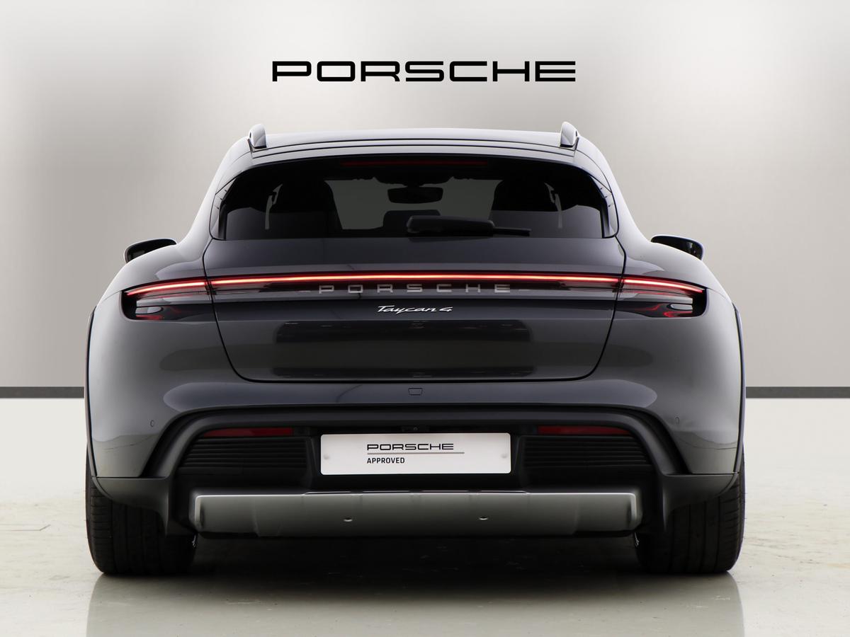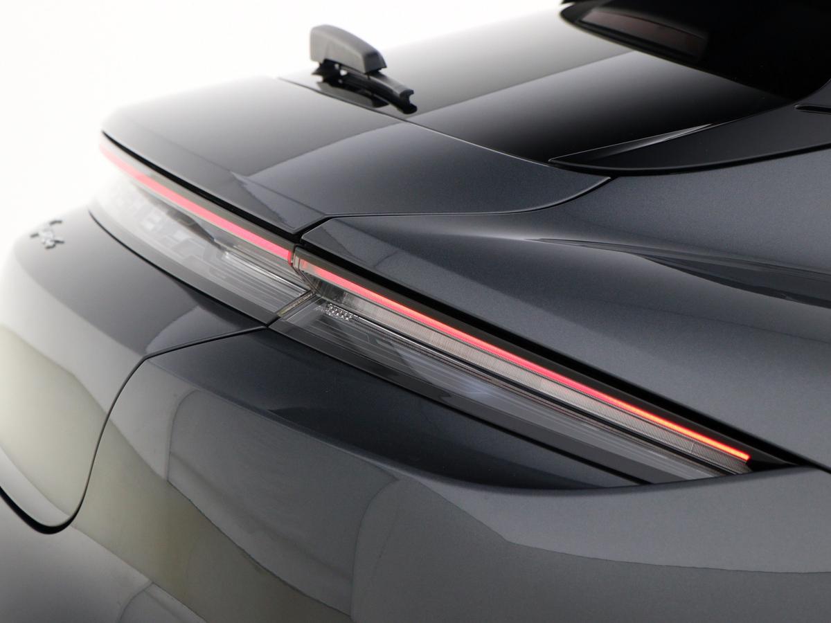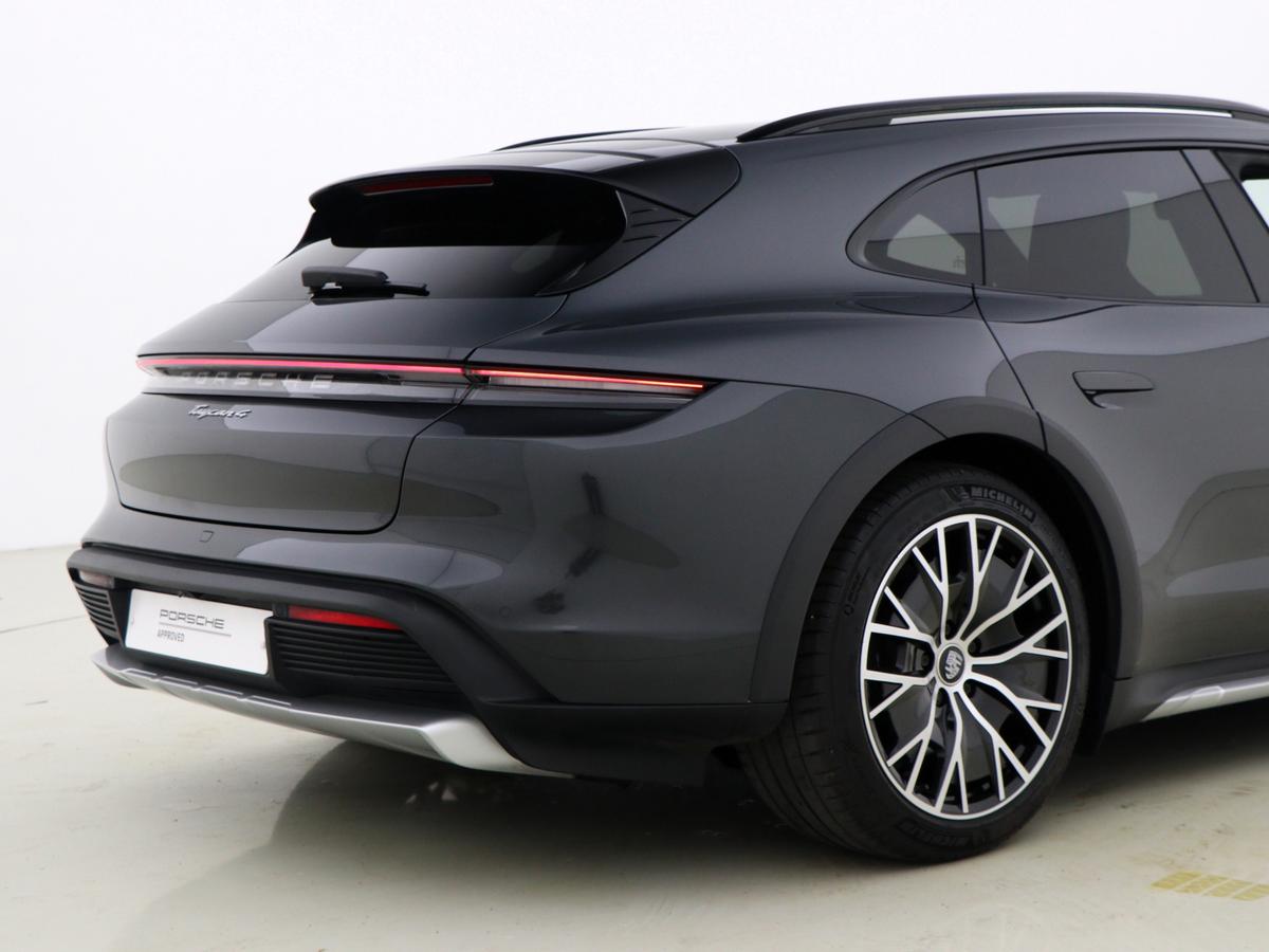 "Porsche lettering integrated into rear taillight strip in satin platinum",