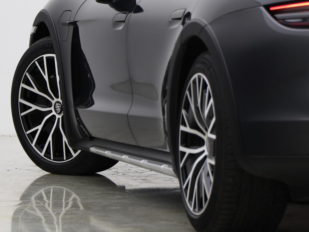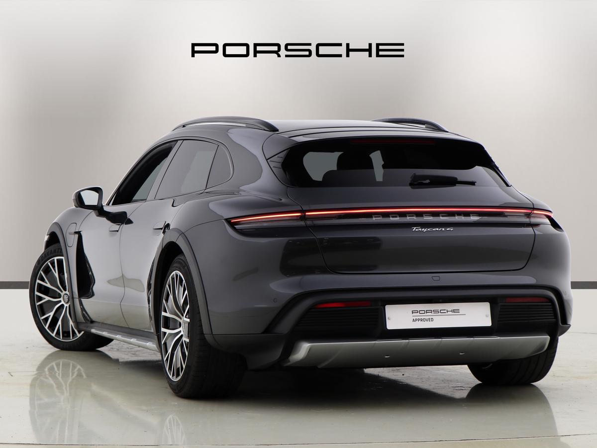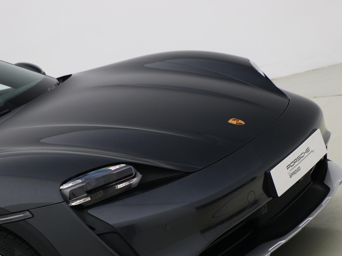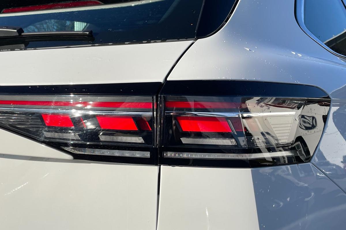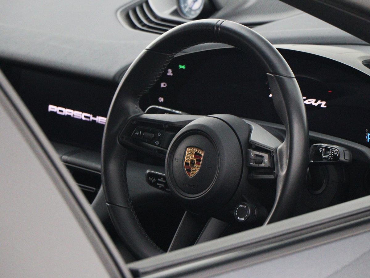 "Porsche lettering integrated into rear taillight strip in satin platinum",