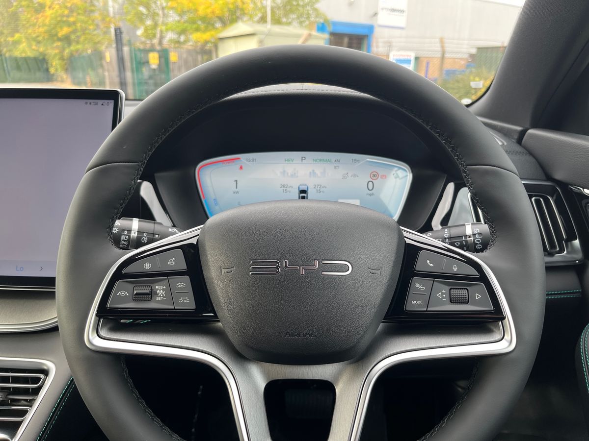 "features": "12.3\" TFT full LCD instrument panel, 360 camera, Adaptive Cruise Control (ACC) and Intelligent Cruise Control (ICC), Automatic vehicle hold, Blind spot detection, BYD voice control assistant \"Hi, BYD\", Child presence detection, Controller Deceleration Parking (CDP), Drive mode select (Eco, normal, sport, snow), e-Call (emergency call), Electric tailgate release, Emergency Lane Keeping Assist (ELKA), Forward collision warning, Front and rear parking sensors, Front cross traffic alert and front cross traffic brake, Head up Display, Indirect driver fatigue management, Intelligent Speed Limit Control (ISLC), Keyless system entry and start, Lane change assist, Lane Departure Assistant (LDA) and Lane Departure Warning (LDW), Lane departure prevention, PAS, Predictive collision warning, Rear collision warning, Rear cross traffic alert and rear cross traffic brake, Rollover Control System (RMI), Smartphone wireless charging, 2 x 15W, Traffic sign recognition (TSR), Vehicle-to-Load (V2L) function, 11kW on board charger, Mode 3 Type 2 charging cable (3 phase), Vtol power strip - Type F, 15.6\" Electrically rotatable touchscreen, FM/DAB+ radio, Front USB ports, 1 x 18W Type C, 1 x 60W Type C, Infinity sound system with 10 speakers, Rear USB ports, 2 x 18W Type C, Aluminium roof rails, Auto dimming interior rear view mirror, Auto headlamps (on/off), Dynamic welcome light, Electric folding and heated door mirrors, Emergency tow hook, Exterior mirror footlights, Follow me home (The headlights turned on in advance and delayed off function), Front windscreen, UV protection, thermal insulation and sound proofing, High beam assist, LED 3rd brake light, LED daytime running lights, LED Headlights, LED taillights, Metallic paint, One touch electric front/rear windows with pinch protection, Panoramic sunroof with anti-pinch sensor and electrically adjustable sunshade, Rain sensor windscreen wipers, Rear fog lights, Rear side wing doors, Rear window and rear windscreen with tinted glass, Rear wiper, 12V power outlet, 3 seat bench in 2nd row, 8 way electrically adjustable drivers seat, Adjustable rear headrests, Boot parcel shelf, Driver and passenger sunvisors with illuminated vanity mirrors, Driver seat memory function, Front centre armrest with 2 cupholders, Front LED reading lights, Front passenger seat with 4-way electric adjustment, Front seat footlights, Heat pump, Heated front seats, Heated steering wheel, Integrated headrest in front seats, ISOFIX and i-Size for front passenger and outer rear seats, LED front door lights, Nylon floor mats, PM2.5 air filter, PM2.5 air purification system, Rear air vents, Rear armrest with 2 cupholders, Rear side LED reading lights, Rhythm-reactive multi-colour ambient lighting, Single front passenger seat, Split folding rear seats - 40/60, Vegan leather multifunction steering wheel, Vegan leather upholstery, Ventilated front seats, 3x3 point rear seatbelts, ABS/EBD, Automatic emergency braking system, Brake override system (BOS), Comfort stop, Door open warning, Driver airbag, Electric parking brake, Force limiting pretensioned front seat belts, Front centre airbag, Front passenger airbag, Front passenger airbag deactivation, Front side airbags, Hill descent control, Hill hold control, Hydraulic Brake Assist (HBA), Hydraulic brake boost, Mechanical child safety lock, Rear middle seat force limiting seat belt, Rear seat belt pretensioners, Reflective vest, Side curtain airbags, Traction control system (TCS), Tyre pressure monitoring system (TPMS), Vehicle Dynamics Control System (VDC), Warning triangle, 2 x Smart key, Anti theft alarm system, Automatic door locking, 19\" Bi-colour alloy wheels, Tyre nut covers remover, Tyre repair kit, ",