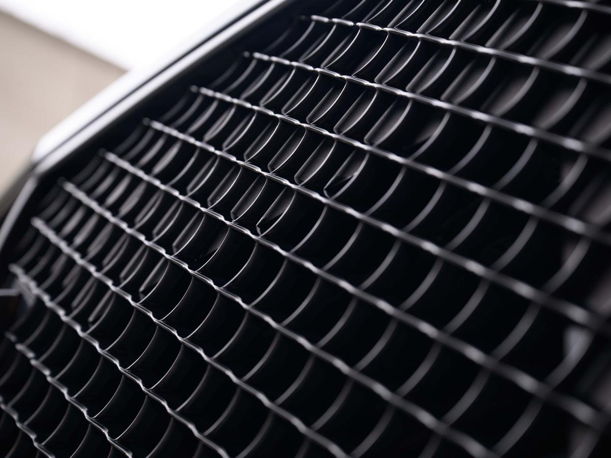 "Air intake slats with inlays in satin platinum",