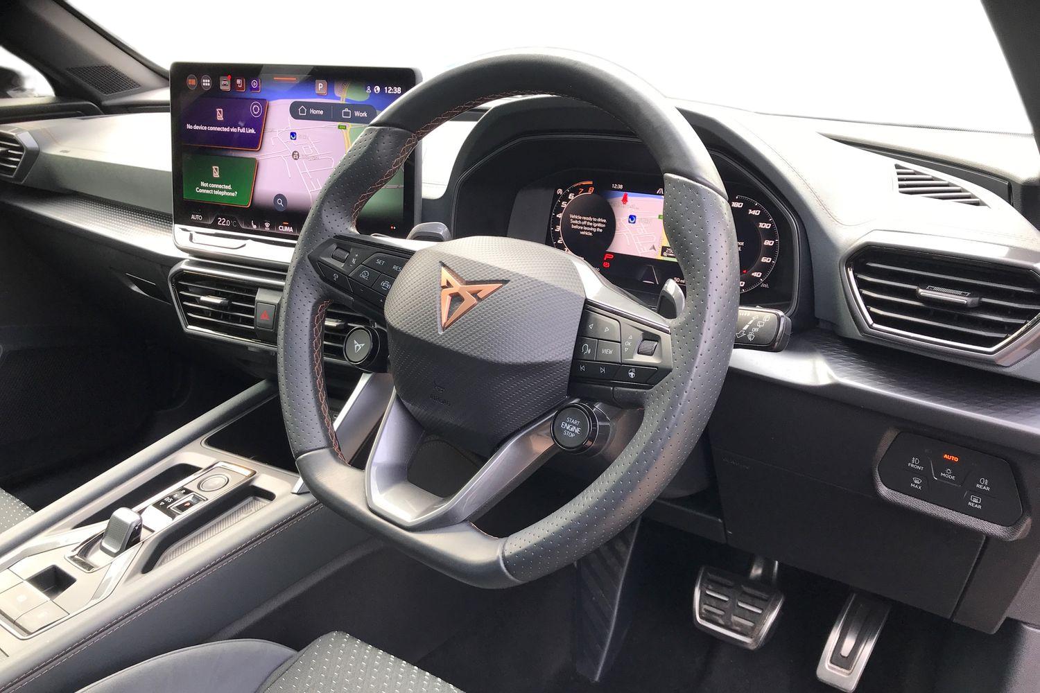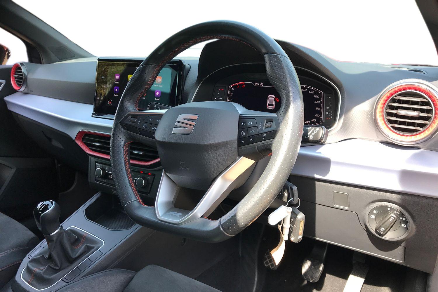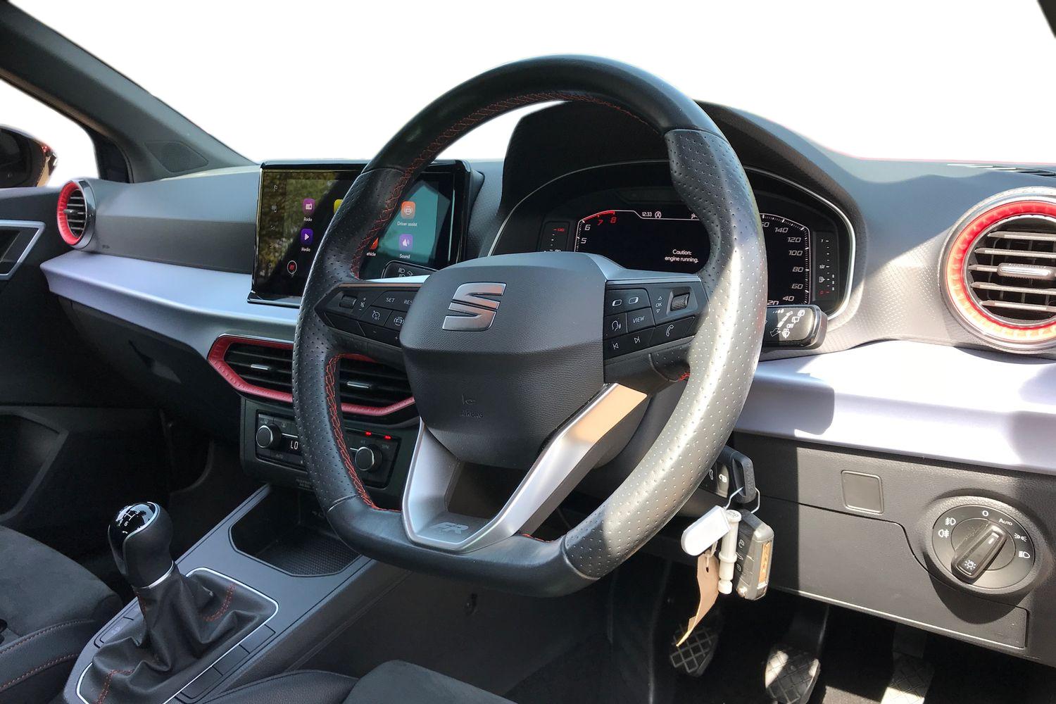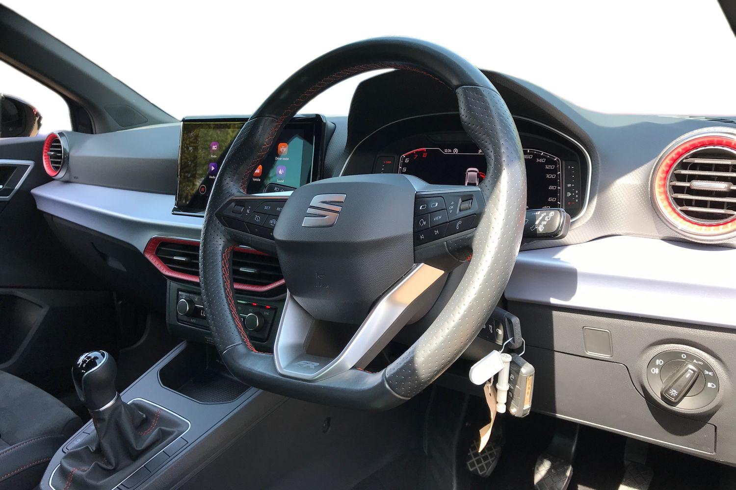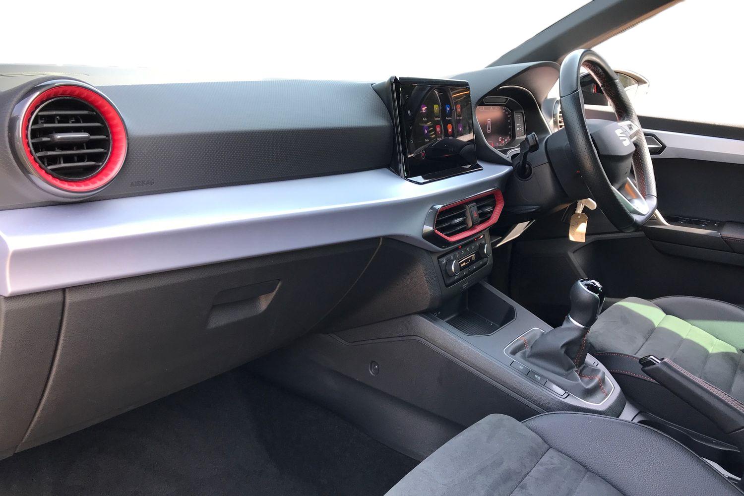 "features": "'Lights On' Reminder warning buzzer, 8\" Digital cockpit, Digital clock, E-call, Electric speed sensitive power steering, Full link smartphone integration with mirror link, wireless apple carplay, Google android auto + USB Type C cable for apple and android devices, Lane keeping system, Low fuel warning light, Outside temperature display, RPM counter, SEAT Drive profile - Four different models normal-sport-eco-individual, steering response, throttle response and gear shifts mode, Trip computer, Wireless phone charger, 9.2\" colour touchscreen with navigation system, voice control and USB port (type c), Bluetooth interface for hands free and audio streaming, DAB digital radio and AM/FM radio, Steering wheel mounted audio controls, Anti theft roof antenna, Auto dimming interior rear view mirror, Automatic activation of hazard warning lights, Body coloured bumpers, Body coloured door handle inserts, Chrome roof rails and window surrounds, Dark tinted rear windows, Electric front/rear windows, Electrically adjustable, heated and folding door mirrors, Front fog lights with cornering function and rear fog light, FULL LED automatic headlights with dynamic headlight range control, coming and leaving home, LED daytime running lights, LED rear tail lights and licence plate lights, Protective side mouldings, Rain sensing wipers, Rear side wing doors, Rear spoiler, Rear window wash/wipe, Roof colour door mirrors, Third brake light, Twin exhaust pipe styling hidden exhaust pipe, Visible VIN plate, 2 cupholders, 3 seat bench in 2nd row, 60/40 split folding rear seat, Aircare filter, Black interior roof, Cloth upholstery, Double boot floor, Driver sunvisor with covered mirror + card holder, Dual zone climate control, Front courtesy light with front reading lights, Gear shift indicator, Height adjustable front seats, Height/reach adjustable steering column, Illuminated air vent surrounds, Illuminated boot, Instrument lighting with brightness control, Interior ambient lighting, Interior light in footwell, central console and door panel, ISOFIX points in outer rear seats with top tether anchorage points, Passenger sunvisor with vanity mirror, Perforated flat bottomed leather steering wheel/gear knob/handbrake with red stitching and FR logo, Potentiometer, Single front passenger seat, Steering wheel mounted gearshift paddles, Two front and three rear height adjustable headrests, Interior chrome pack - Arona, Safe and driving pack (S) - Arona, 3 point seatbelts on all rear seats, ABS, Active front headrests, Child locks on rear doors, Driver and front passenger airbags with front passenger airbag de activation, front side and curtain airbags, Emergency Brake Assist (EBA) and front assist, Front and rear seatbelt reminder, Hill hold control, Multi-Collision braking, Tiredness recognition system, Traction control, Tyre pressure monitoring system, Alarm with back up horn with tow away protection, Deadlock, Electronic engine immobiliser, Locking wheel bolts, Remote central locking, Titan black dashboard, 17\" Dynamic alloy wheels, ",