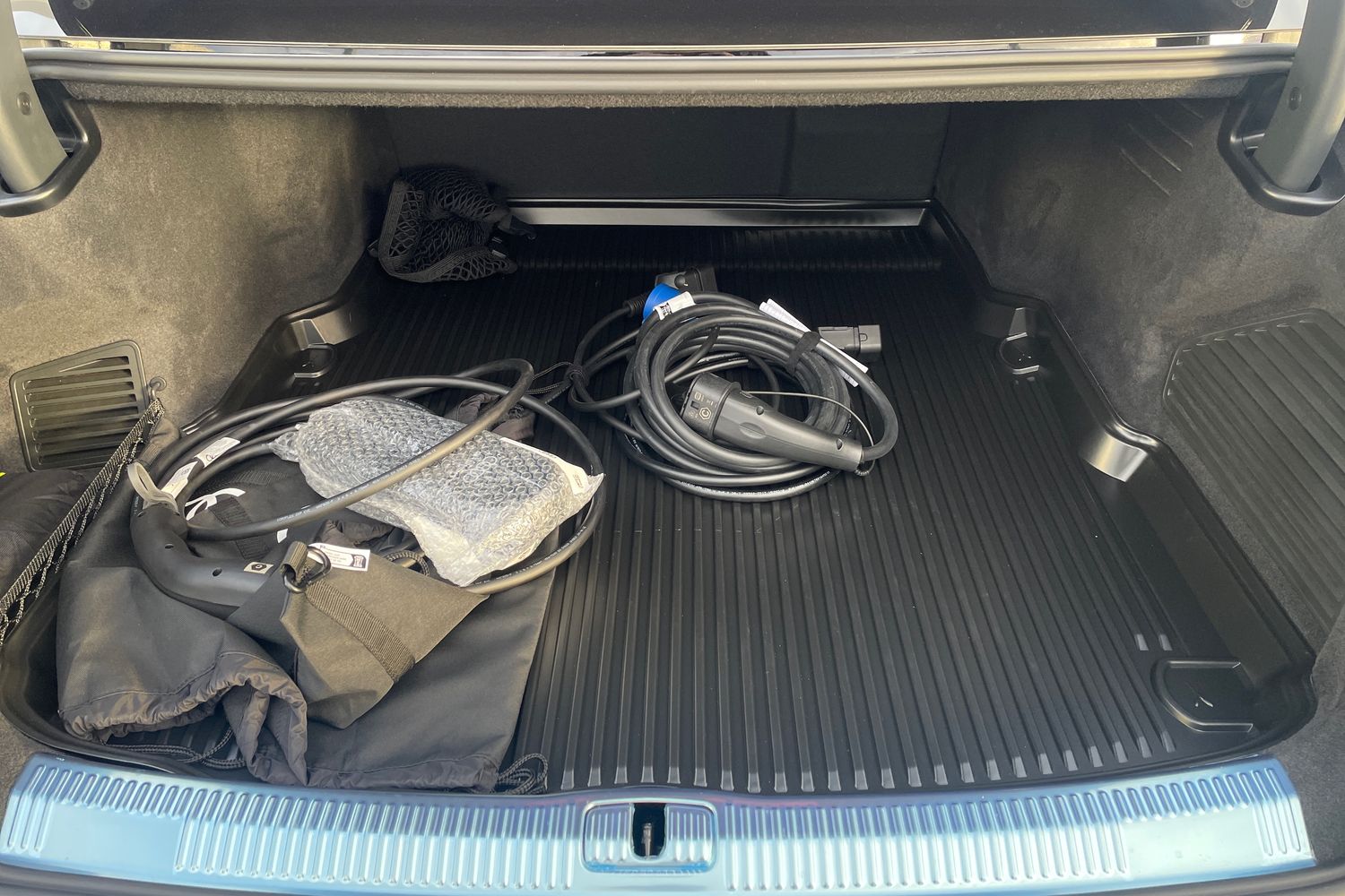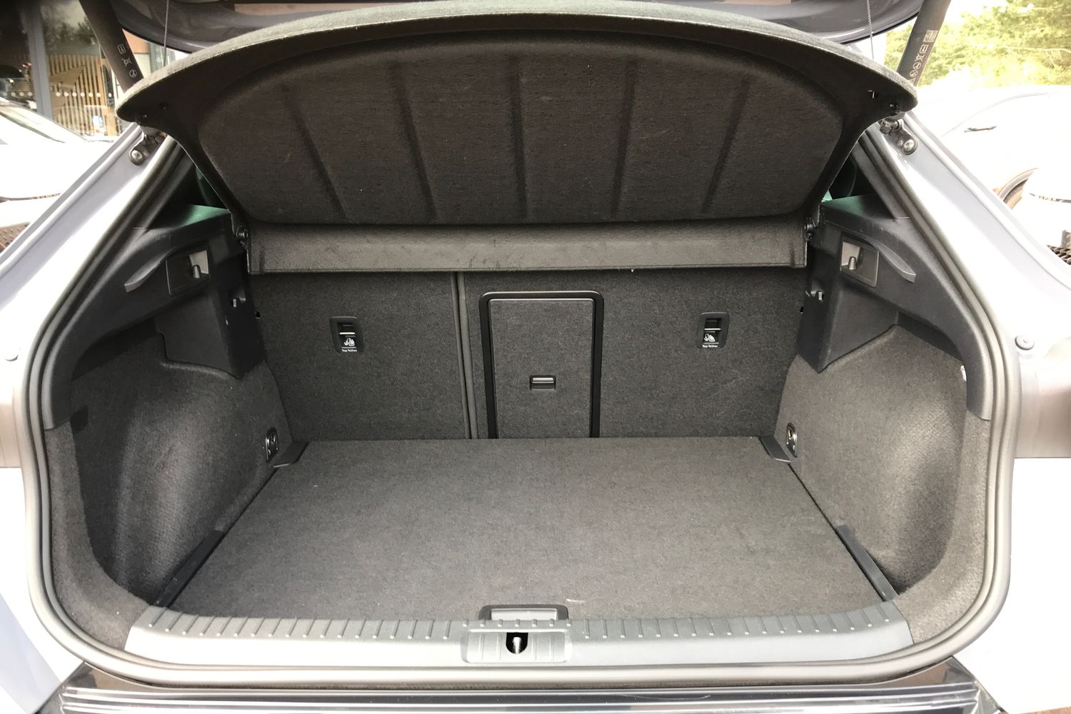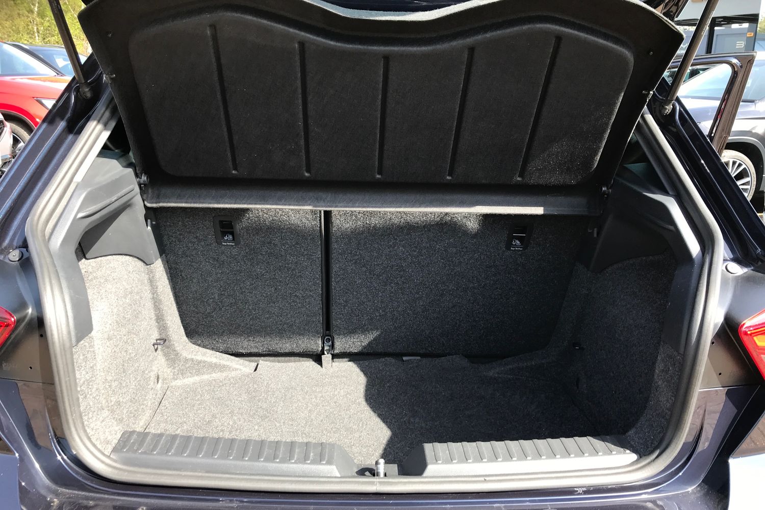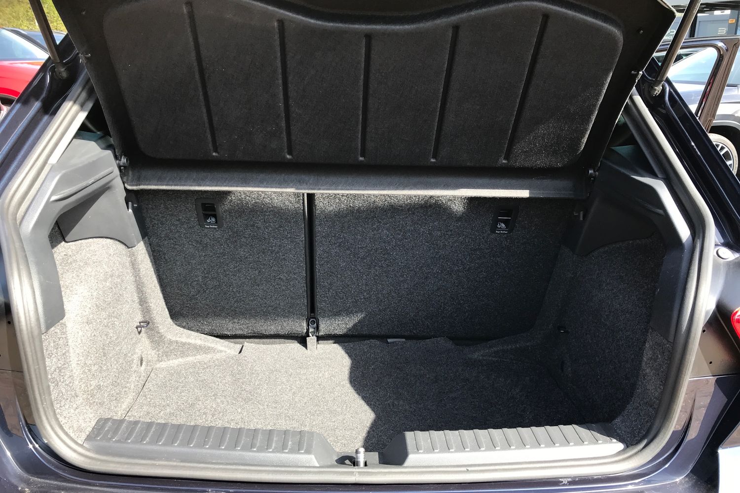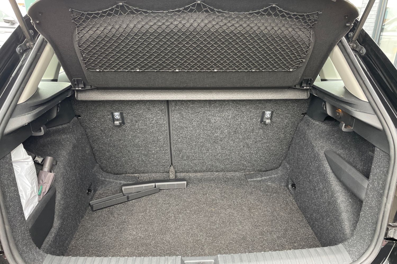 "Net package and top tether hooks in boot space",
