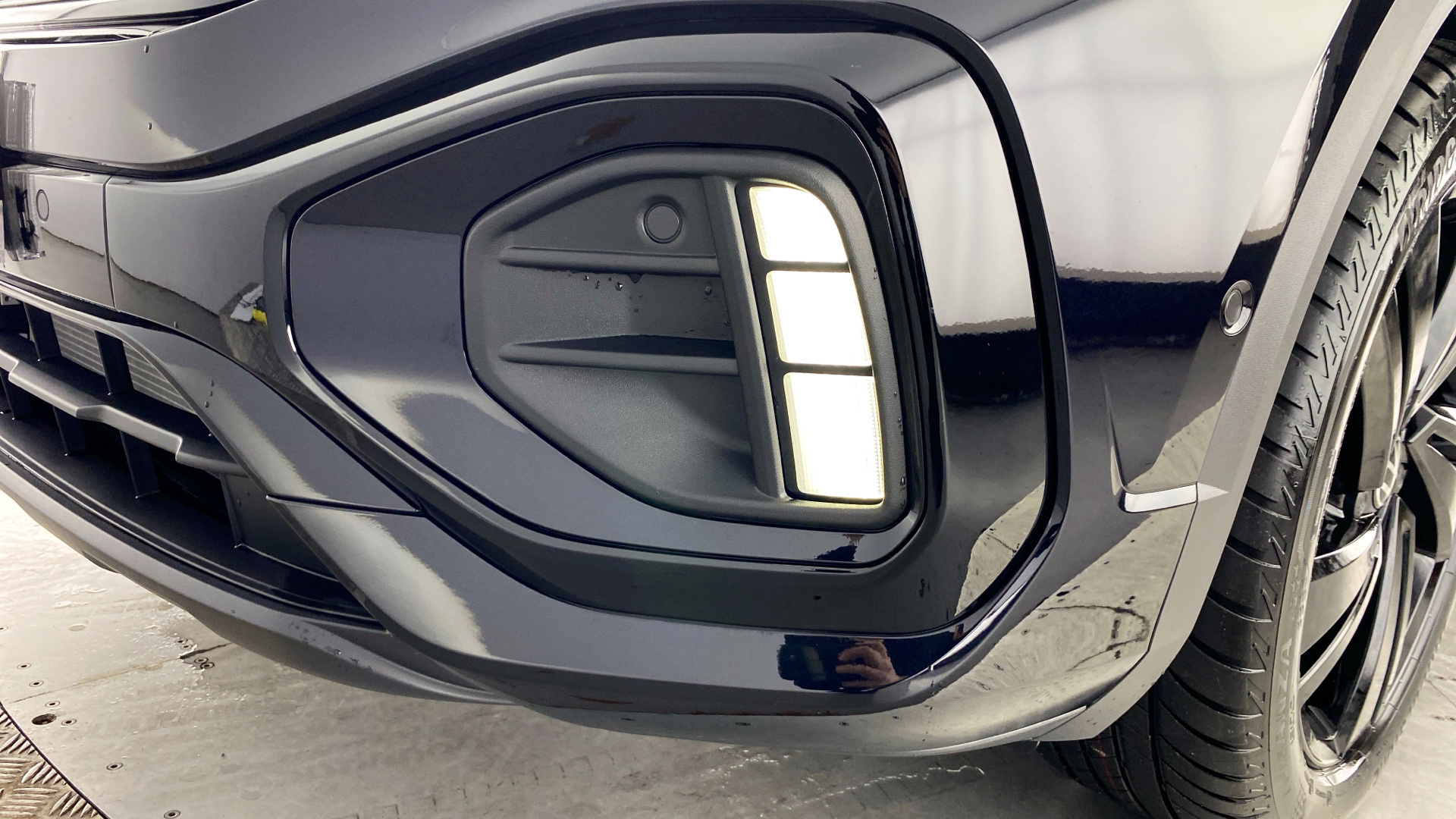 "Glossy black painted radiator grille with 2 illuminated chrome trims",
