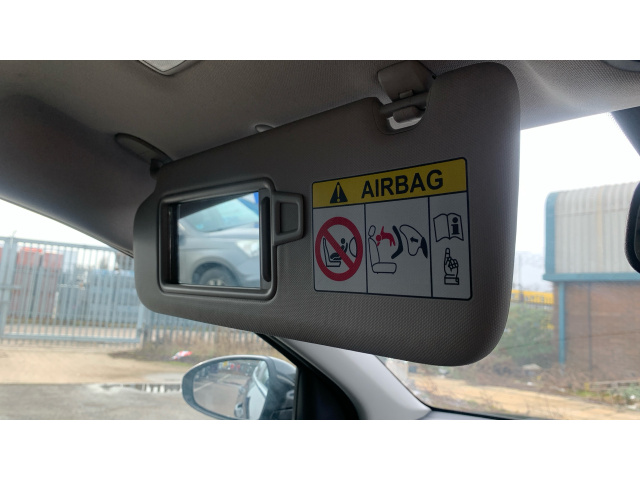 "Sun visors with illuminated vanity mirrors and airbag warning label on front passenger sun visors"