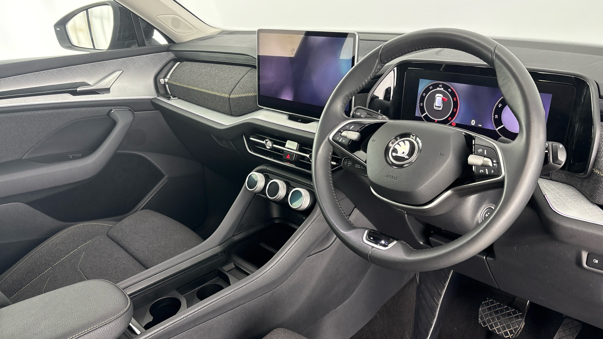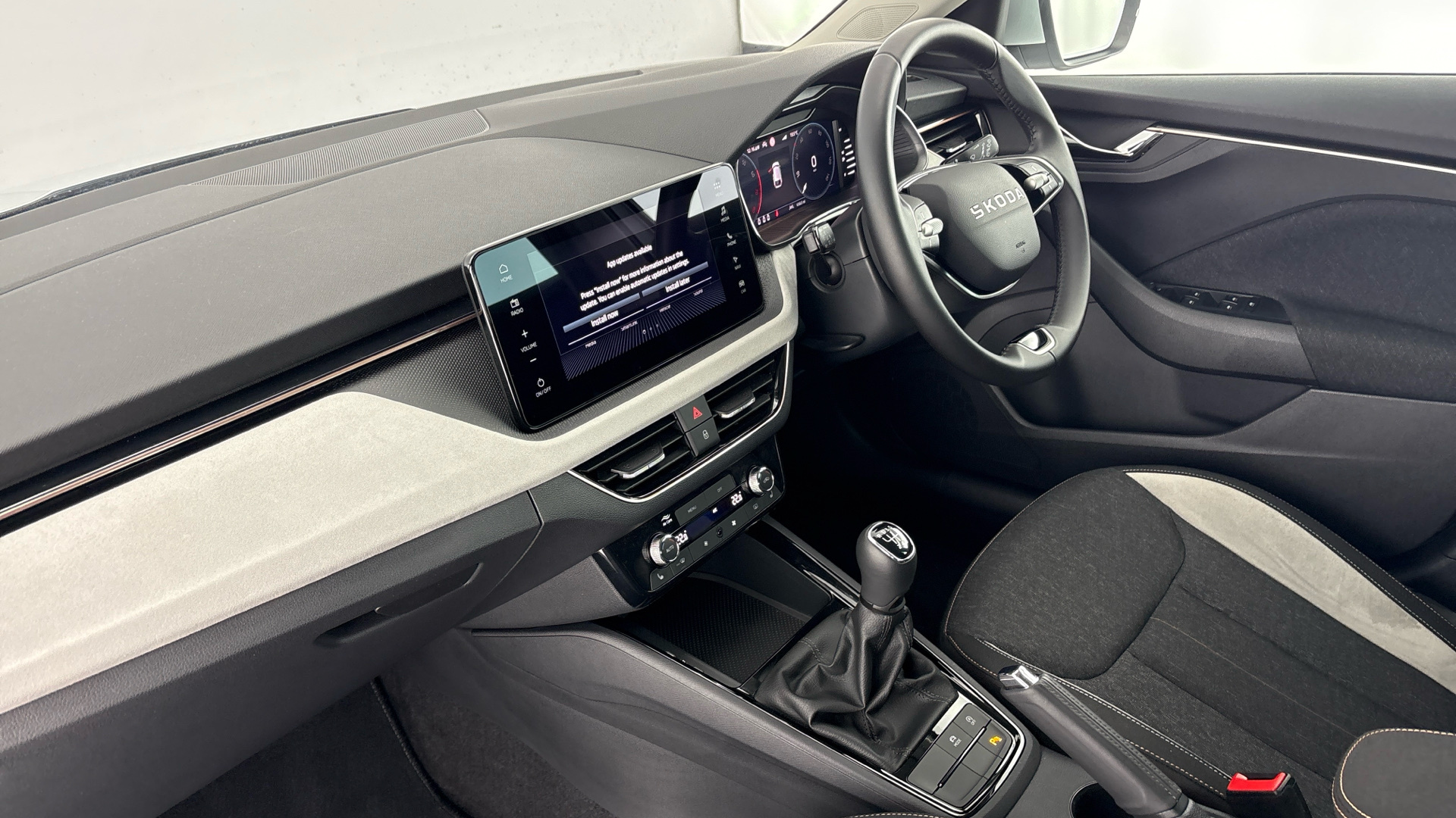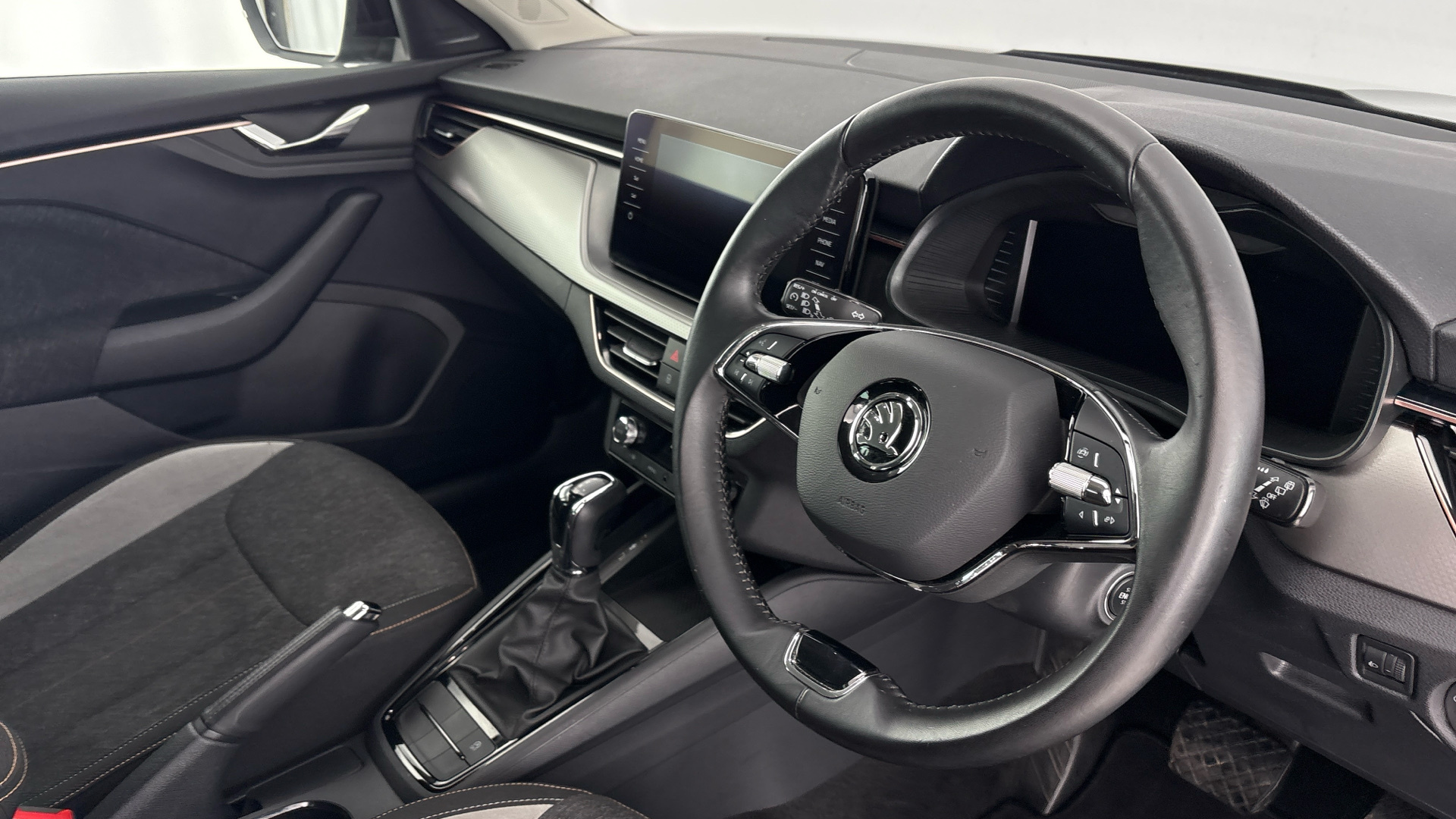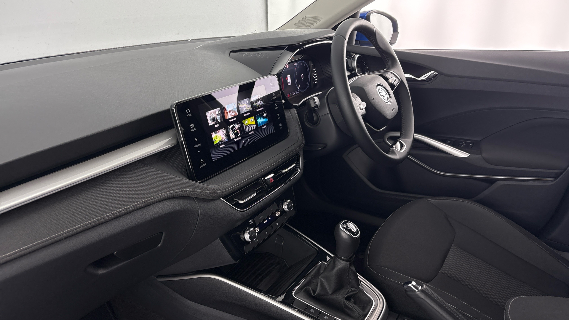 "features": "Advanced driver attention and drowsiness monitor, Bluetooth connection, Electromechanical power steering, Exterior temperature gauge, Service interval indicator, Traffic sign recognition, Virtual cockpit with 10.25\" colour display, Wireless SmartLink for Apple CarPlay and Android Auto, 6 Speakers (4 in front and 2 in rear), 9.2\" colour display skoda navigation system with voice control and web radio, Auxiliary socket for external MP3 player, DAB digital radio reception, Auto dimming rear view mirror, Body colour door mirrors, Body coloured bumpers, Chrome window surround, Door mirror integrated indicators, Front and rear electric windows, Front window wiper intermittent control, Headlight range control - Automatic, Ice scraper in fuel cap, LED daytime running lights with coming and leaving home feature, LED rear lights, Privacy glass, Rear LED fog light, Rear side wing doors, Rear window wiper with washing nozzles, Roof mounted spoiler, SKODA tailgate lettering in chrome, Third brake light, 3 rear headrests, Backrest split and folding, Central console with removable cup holder and storage box, Chrome handbrake release button, Comfort seats, Door sills with fabia badging, Fabric upholstery, Front centre armrest, Gearshift knob/handle in leather, Hand brake lever handle in leather, Height adjustable driver seat, Height adjustable front headrests, Height adjustable steering wheel, ISOFIX and TopTether anchorage points to the outer rear seats, ISOFIX and TopTether on the front passenger seat, Luggage compartment lighting, Manually adjustable lumbar support in front seats, Metallic grey interior door handles, Pollen filter, Rear seat bench unsplit, Single front passenger seat, Storm grey headlining, Sun visors with mirror and airbag label on passenger side, Textile floor mats, Ticket holder, Umbrella in drivers door, 3-point height adjustable front seats belts with pretensioner and force limiter, Automatic warning lights in case of crash, Driver and passengers airbag with switch off function, e-Call+, ESC including ABS, MSR, ASR, EDS, HBA and XDS, Front and rear seat belt warning, FRONT ASSIST (AEB City and AEB Inter Urban), Front side airbags, Head airbags, Hill hold control, One tone horn, Pedestrian protection, Three rear 3-points safety seat belts with pretensioner and force limiter including stop function for outer rear seat belts, Tyre pressure monitoring system, Anti-theft alarm system including immobiliser, interior monitoring, backup horn, and towing protection, Central locking with radio remote control, interior controls, SAFE function and 2 foldable keys, Chrome edged air vents, Metallic grey central console cover, Metallic grey upper decorative trim, Satin black door and side trim panel in front, Textile microsuede grey lower decorative trim with art grey stitching, Anti-theft wheel bolts protection, Super-low rolling resistance tyres, ",