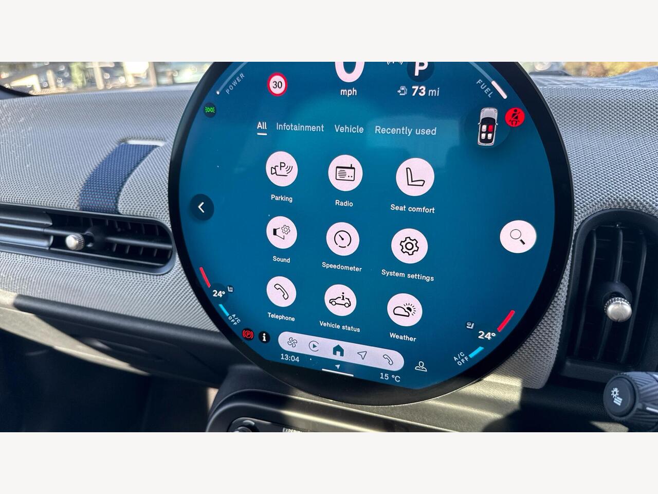 "Alarm with interior protection and deactivation via infotainment system",